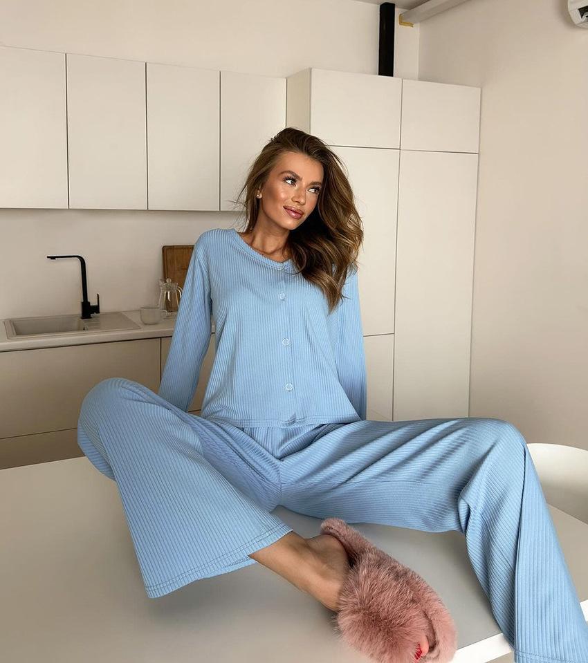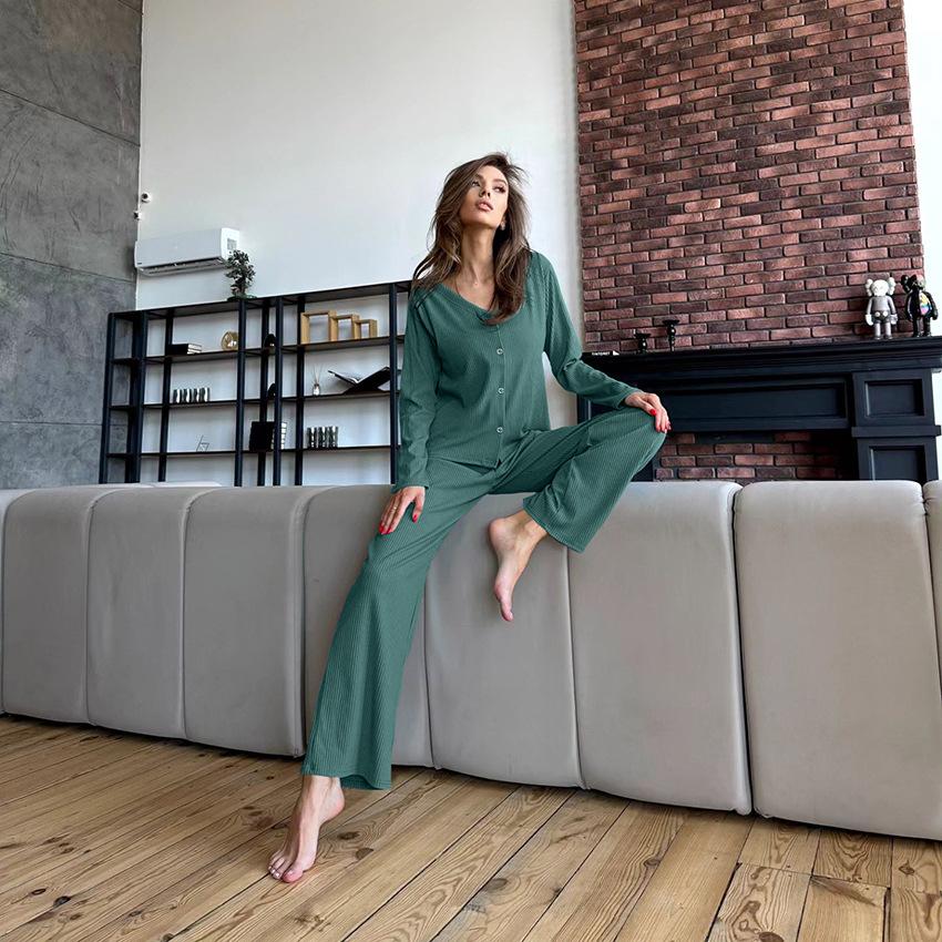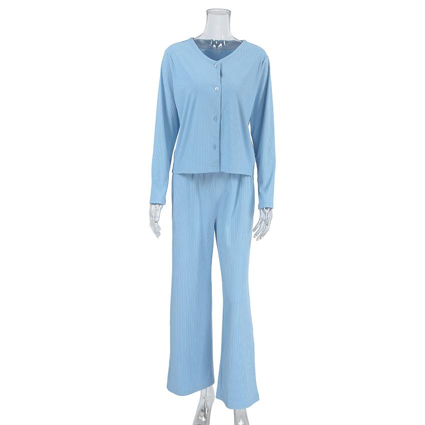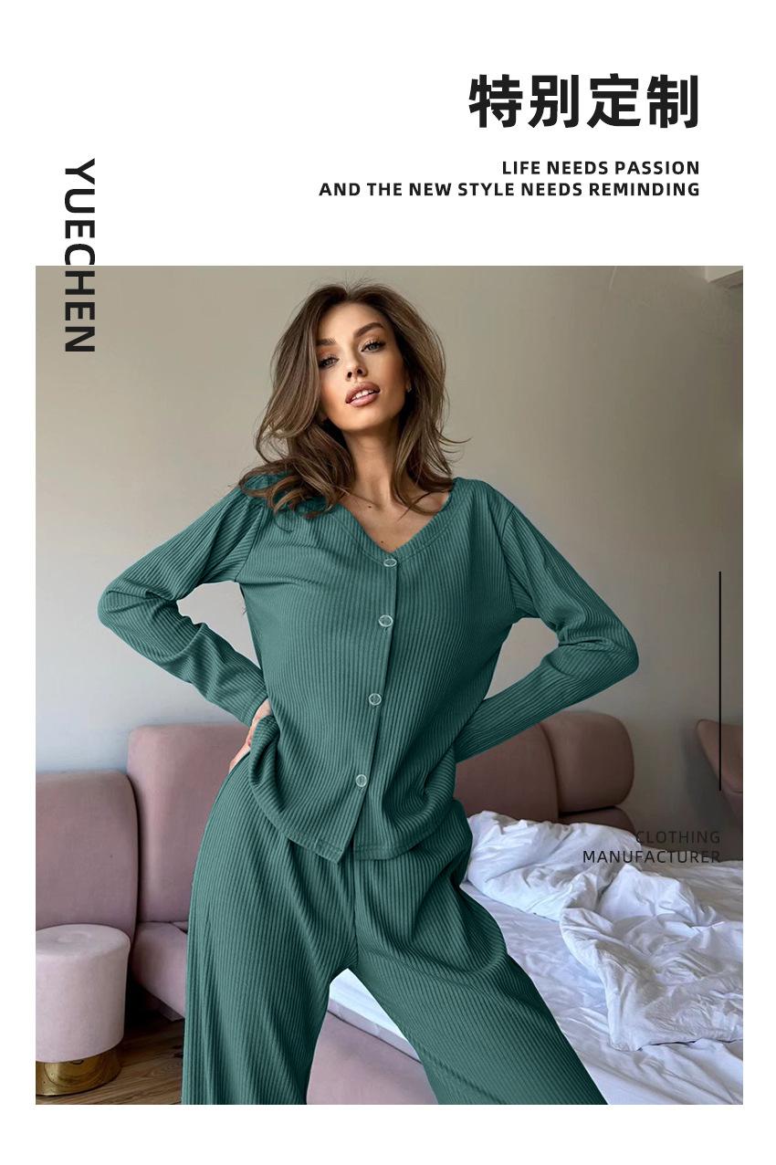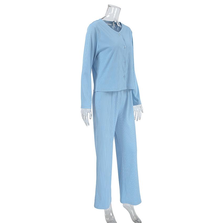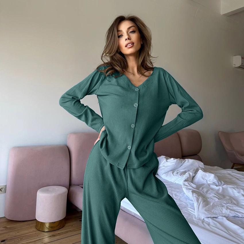 Compra 2024 Europeo y Americano Tejido Suelto Cómodo Canalé Manga Larga Pantalones Pijama de Mujer Transfronterizo para Uso en Casa Al Por Mayor al por mayor en Joom.pro