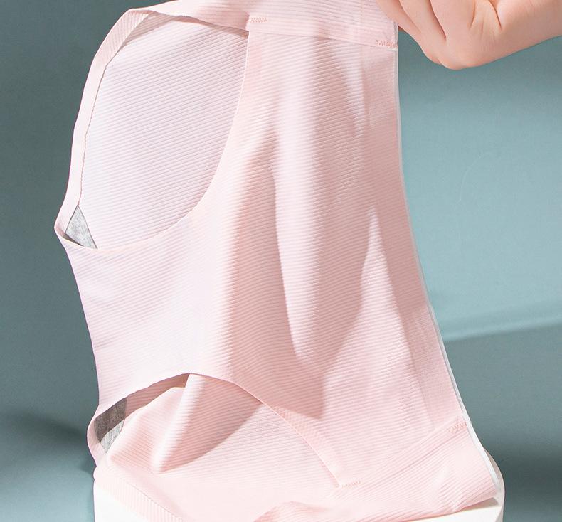 Nueva ropa interior de seda de hielo para mujer, de una pieza, sin costuras, de algodón de cintura media, con entrepierna antibacteriana, cómoda y transpirable.
