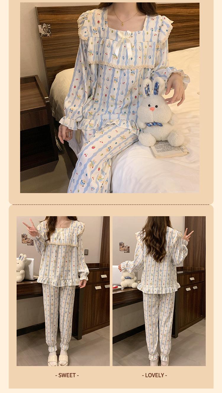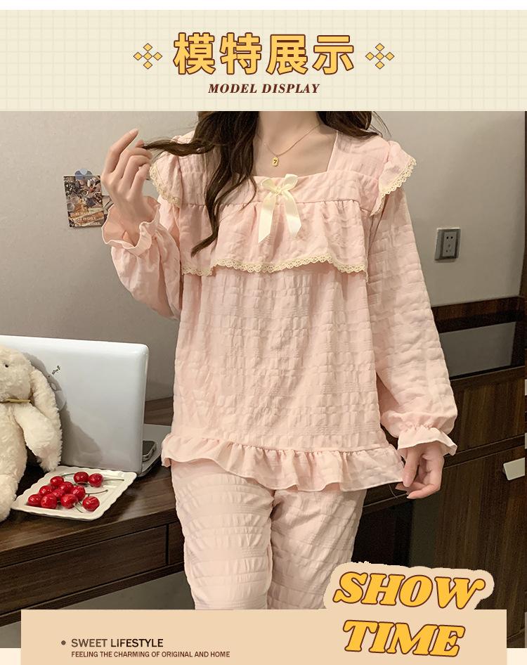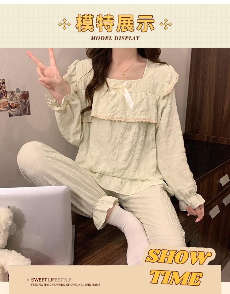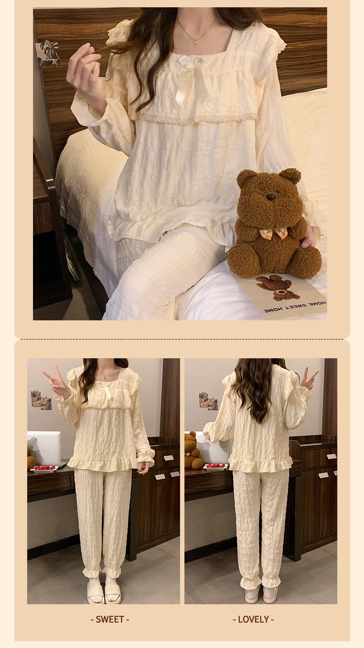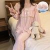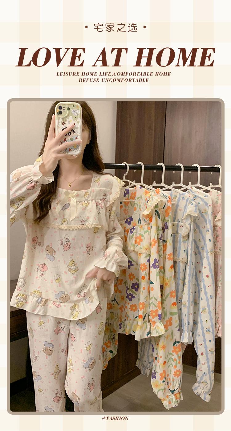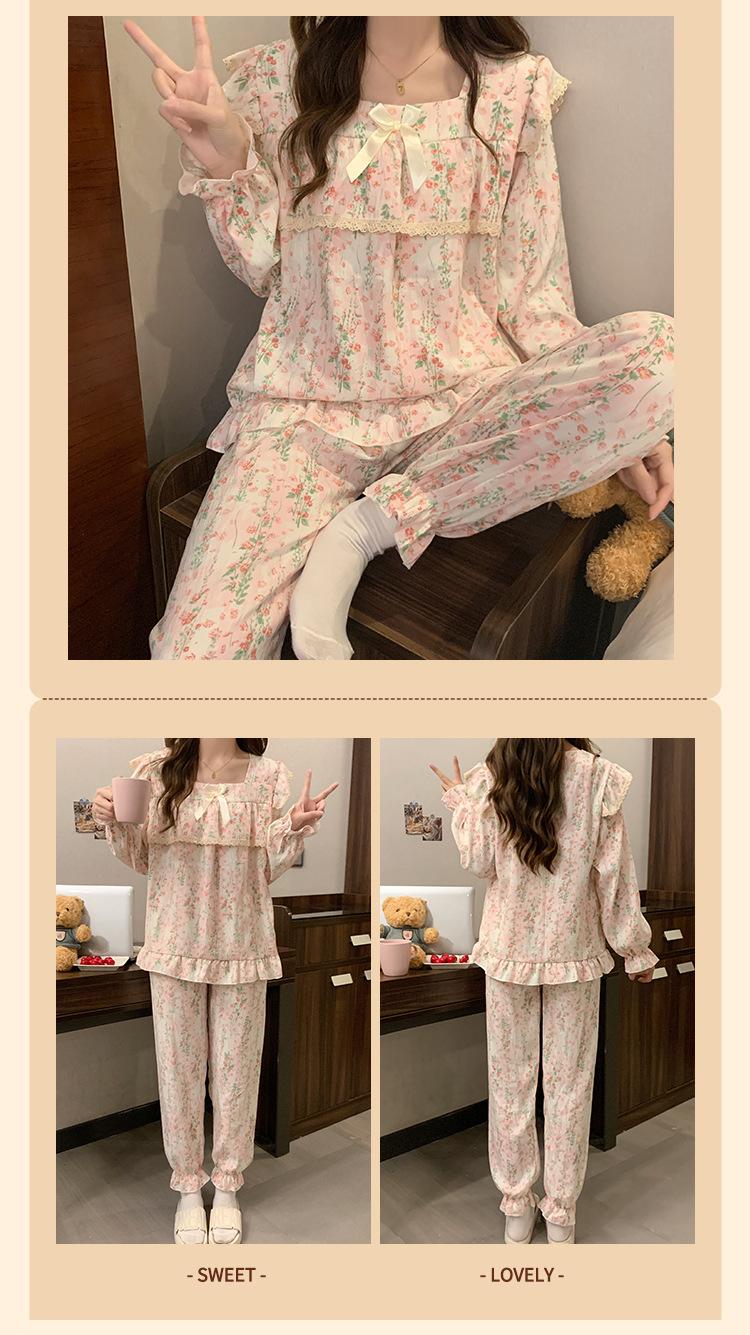 Pijama de algodón con almohadilla para el pecho para mujer, otoño, nuevo, manga larga, pantalones, encaje dulce, ropa para el hogar, traje, ropa exterior