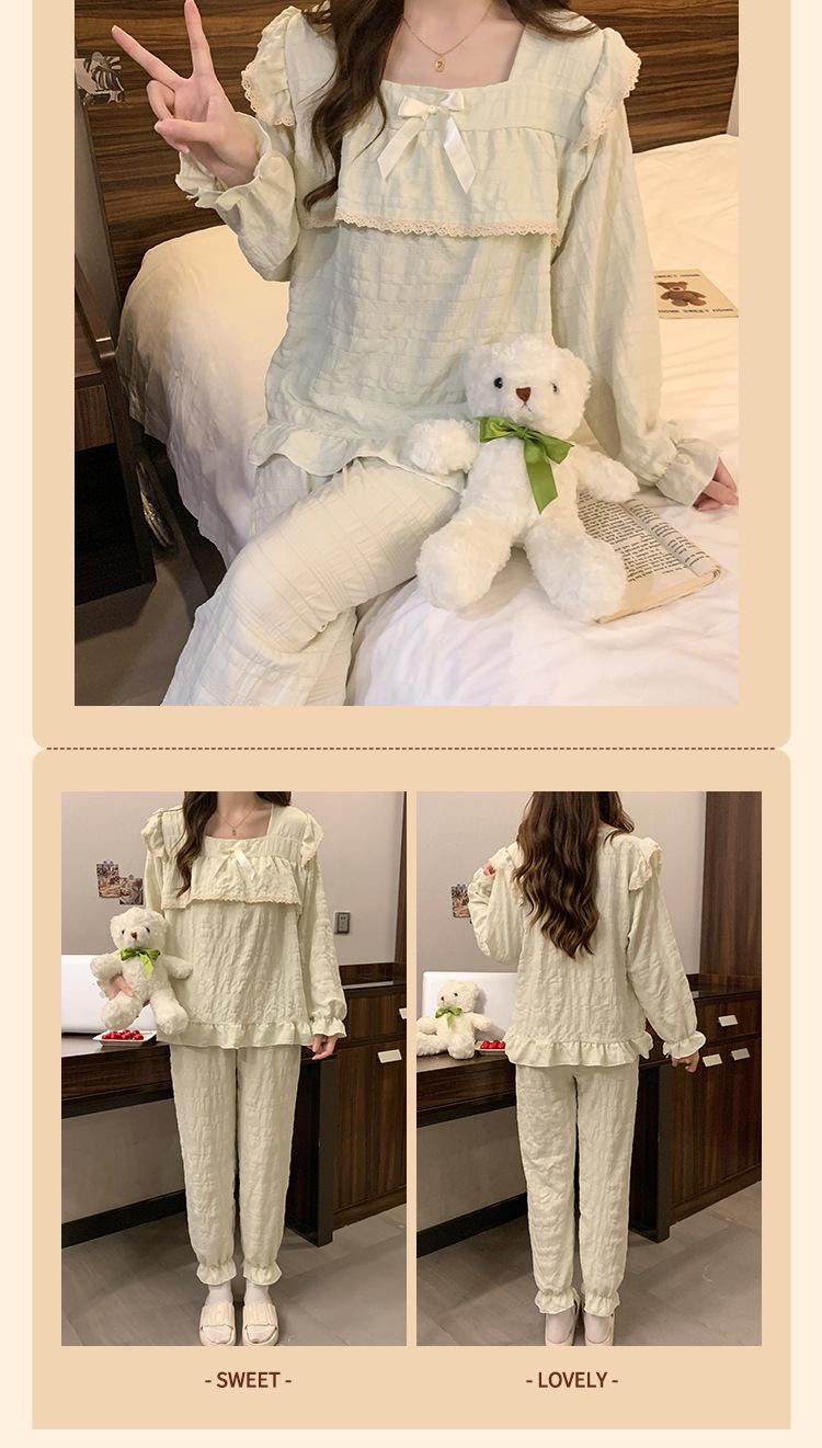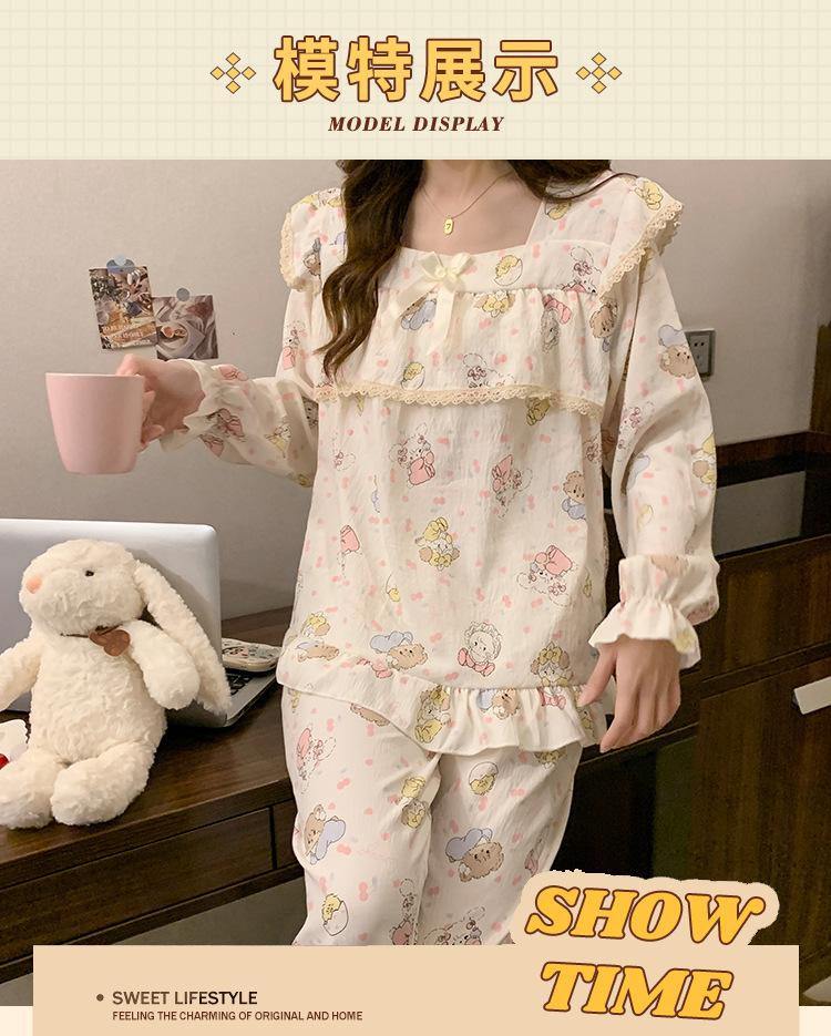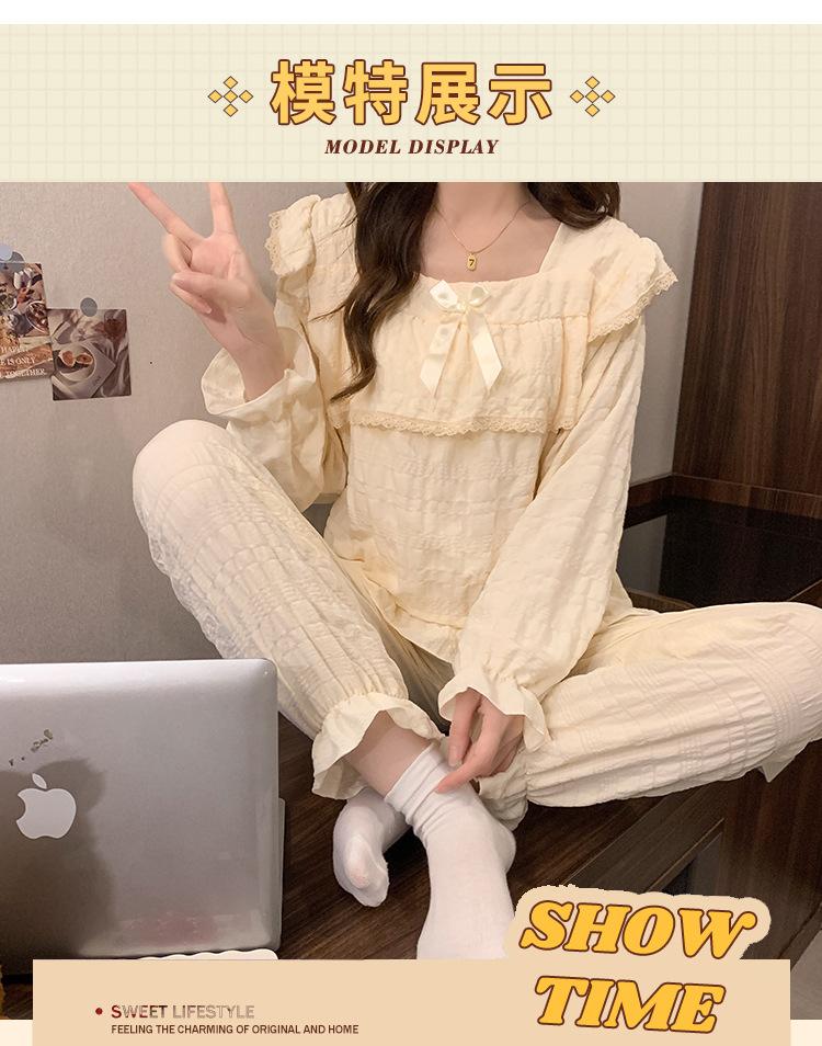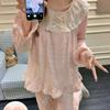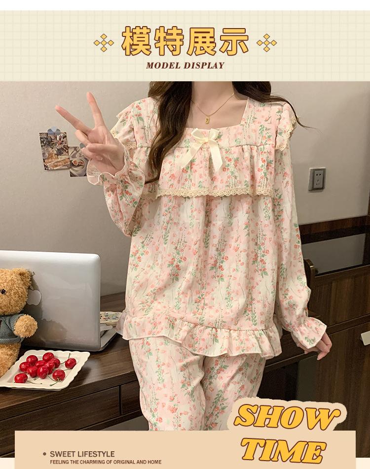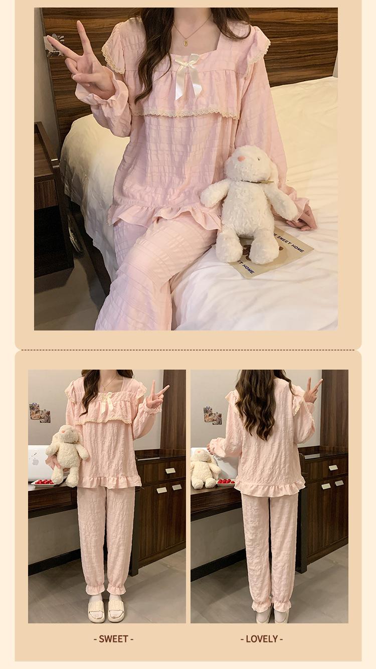 Pijama de algodón con almohadilla para el pecho para mujer, otoño, nuevo, manga larga, pantalones, encaje dulce, ropa para el hogar, traje, ropa exterior