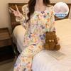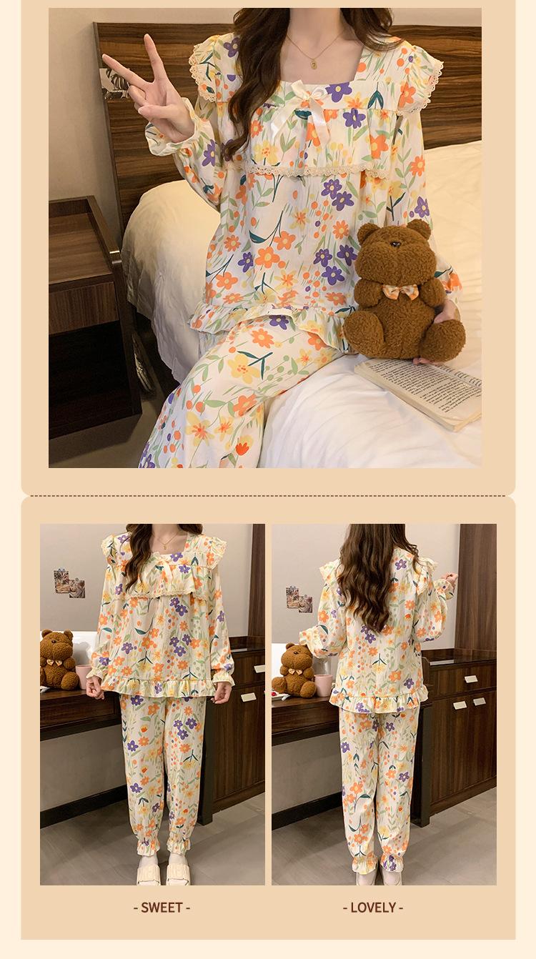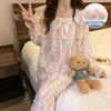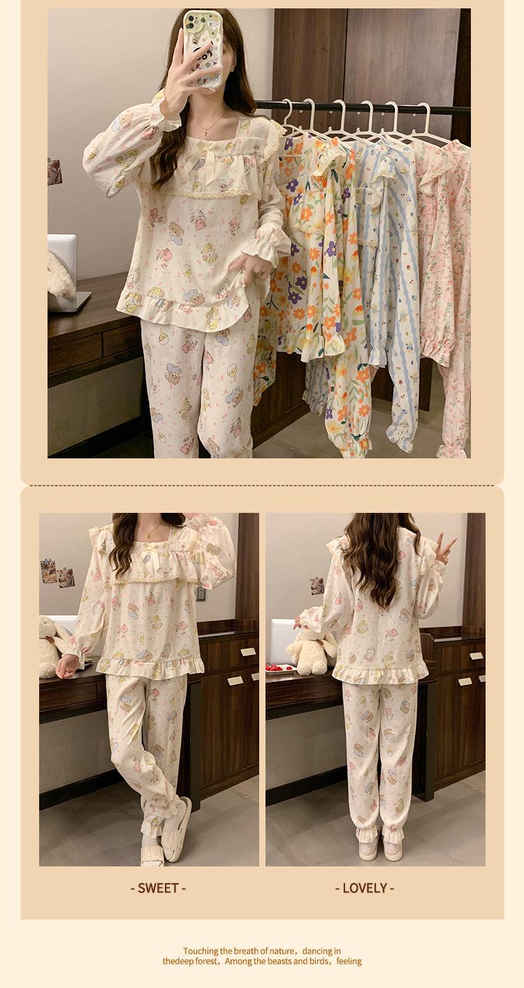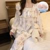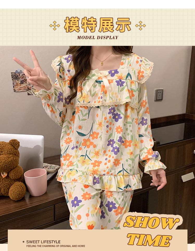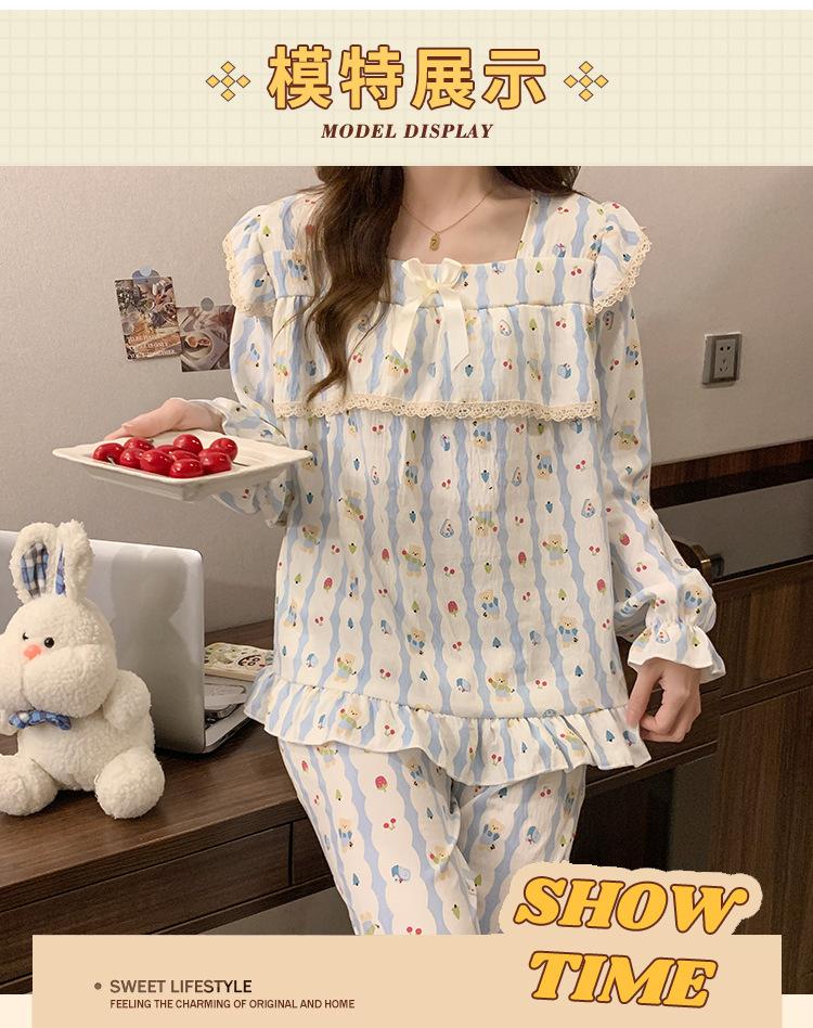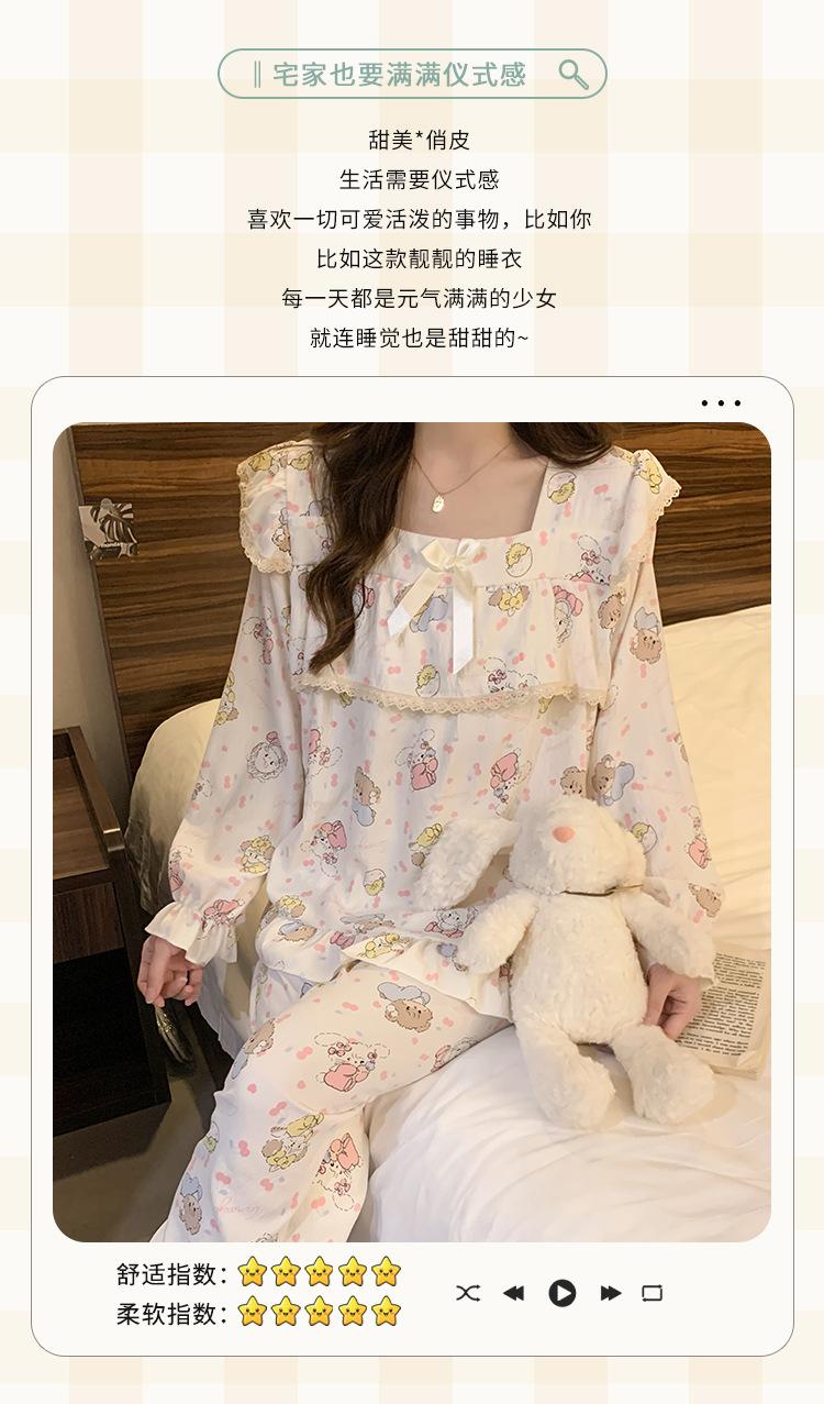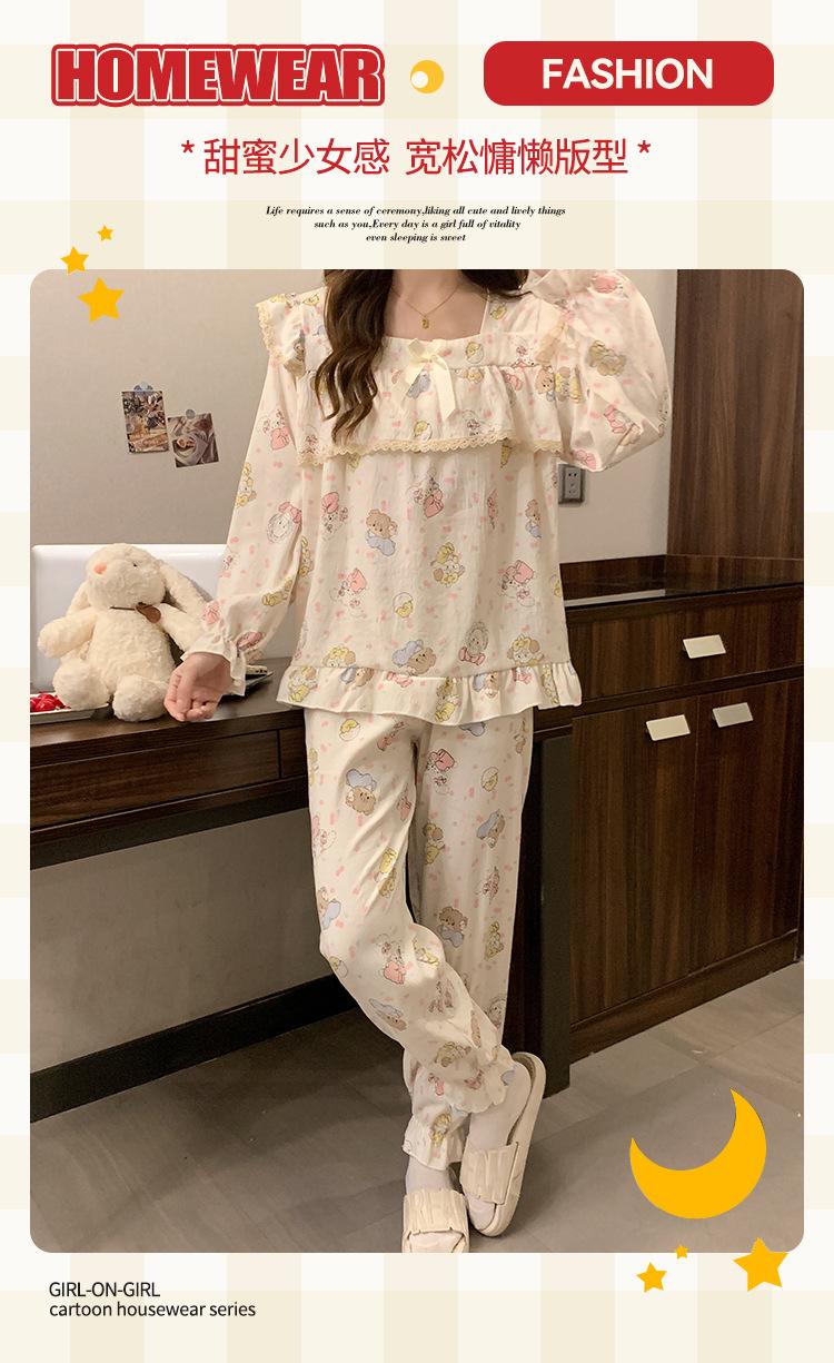 Pijama de algodón con almohadilla para el pecho para mujer, otoño, nuevo, manga larga, pantalones, encaje dulce, ropa para el hogar, traje, ropa exterior