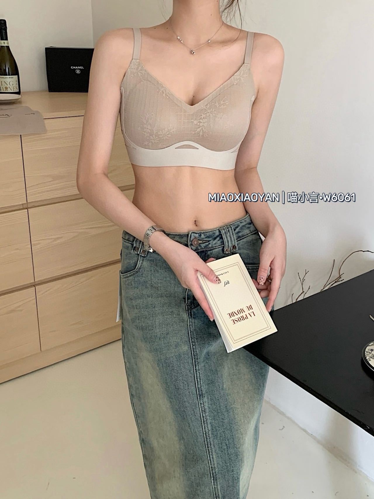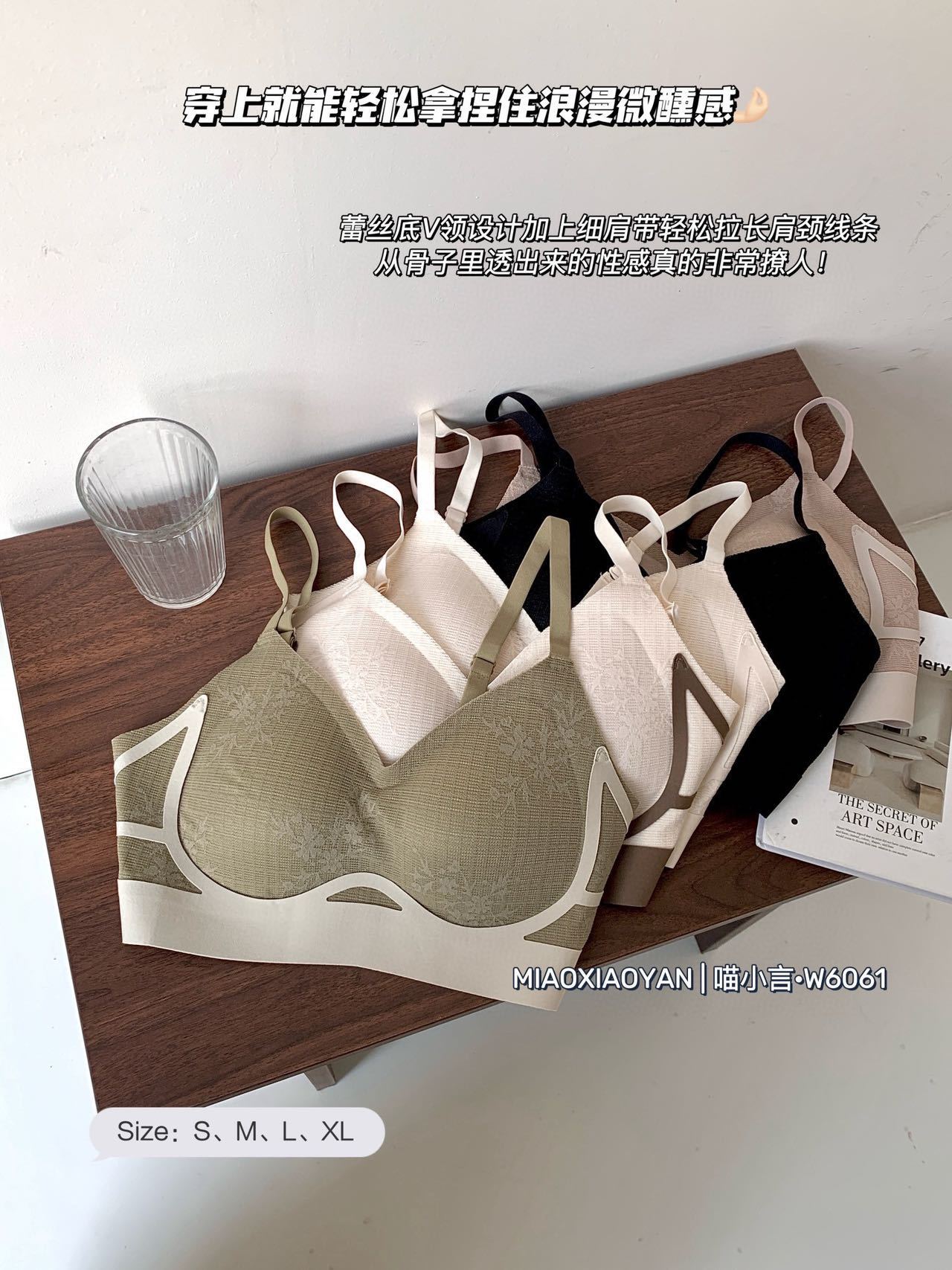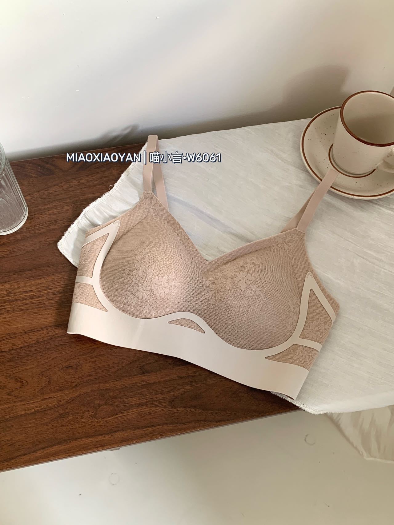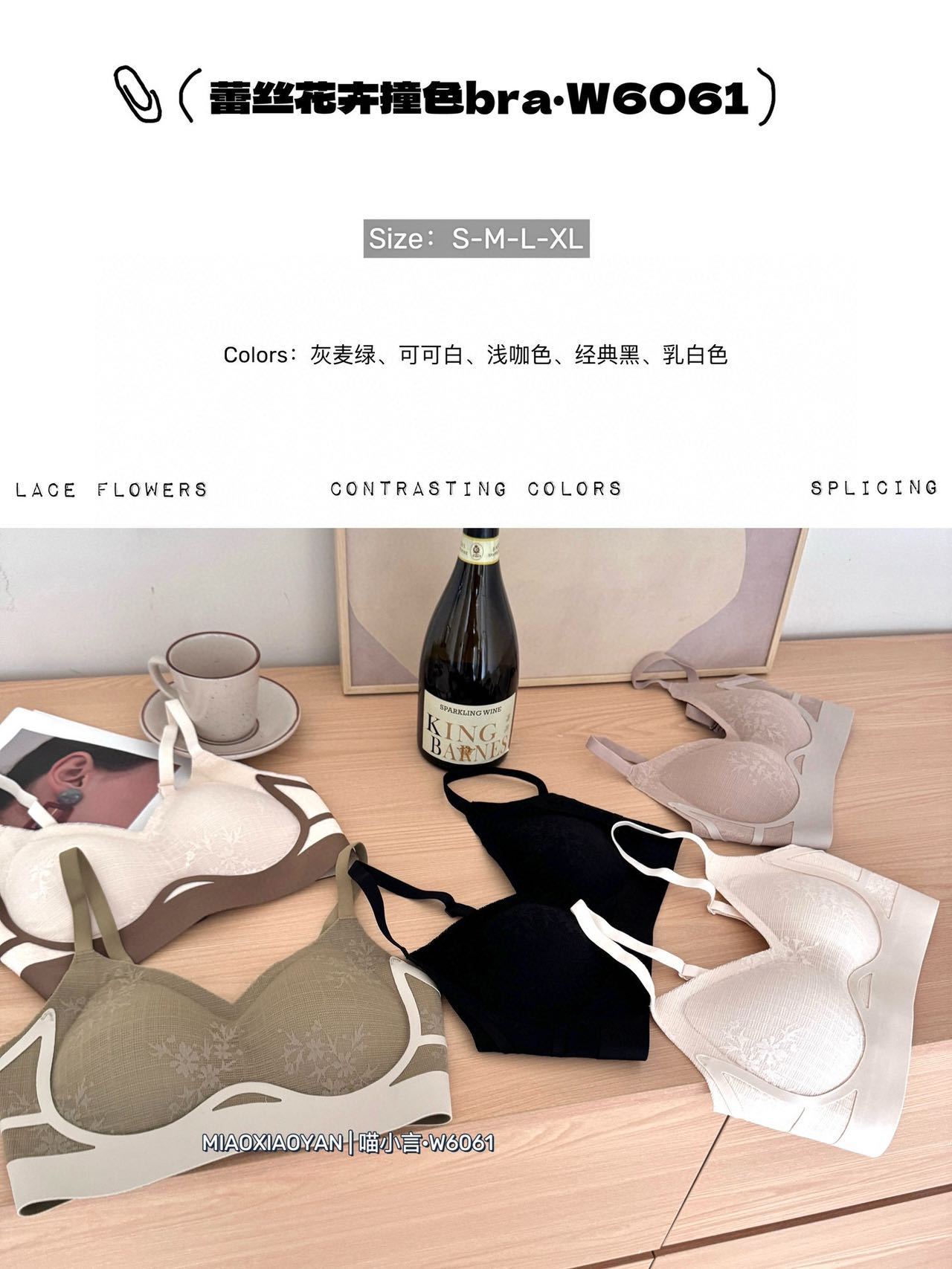 Sujetador push-up de encaje floral con contraste de color para mujer, fino, sin marcas, con realce de pecho pequeño, cómodo y transpirable.