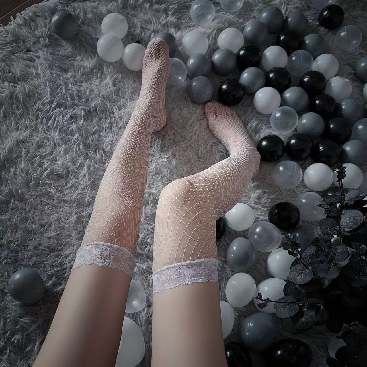 Medias de Red de Tubo Largo de Encaje Sexy Medias Altas Sexy para Mujer Sobre la Rodilla Red de Pesca Medias de Seda Negras Medias de Red Sexy Medias para Piernas Grandes