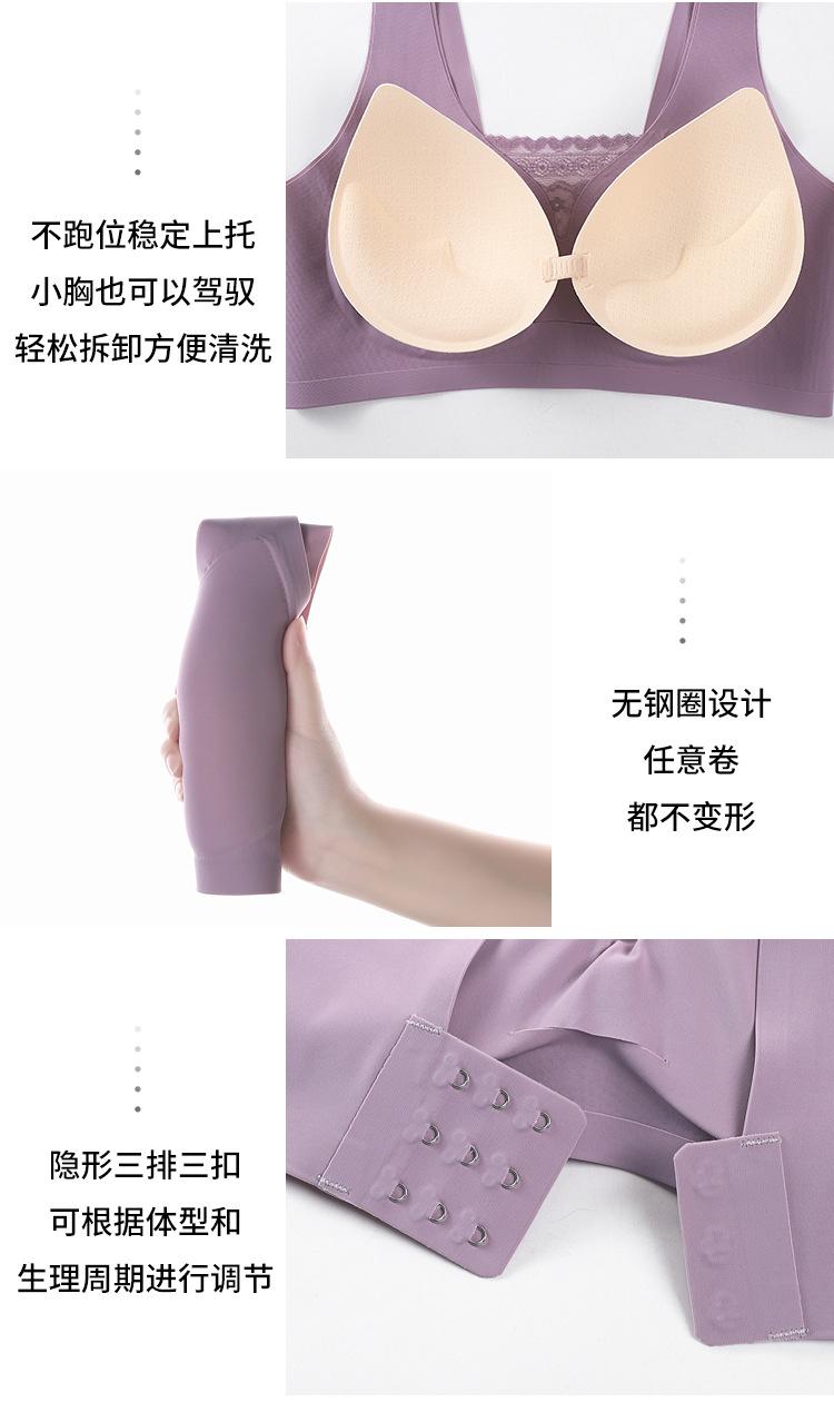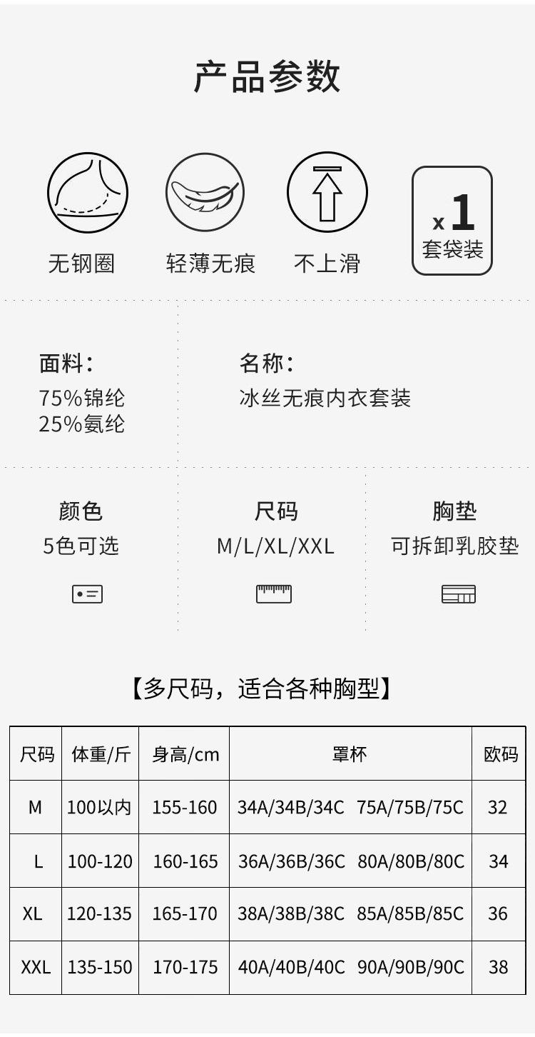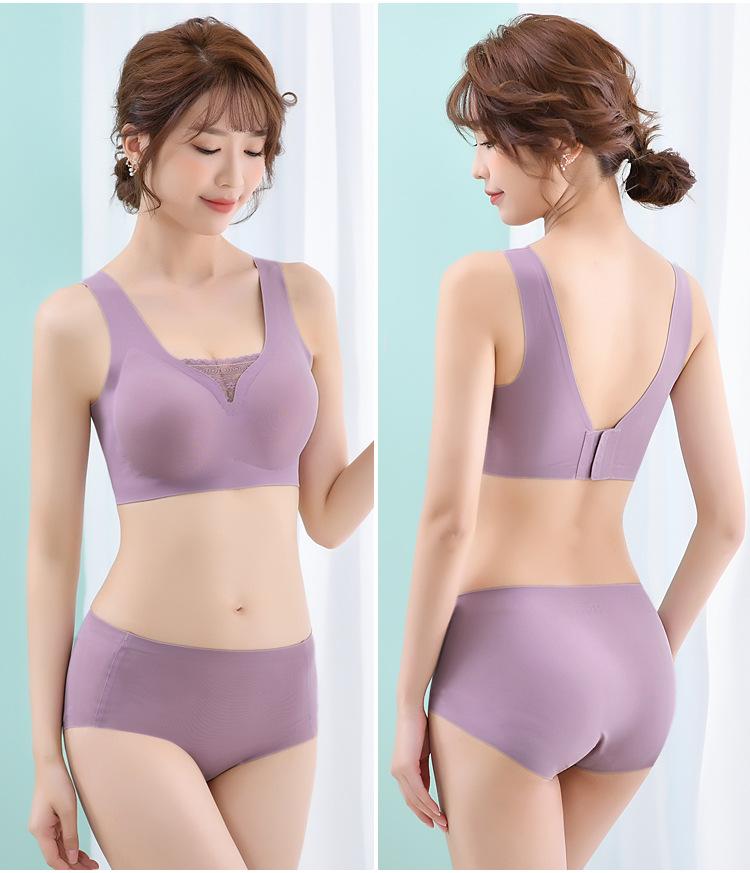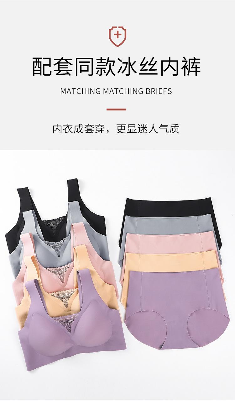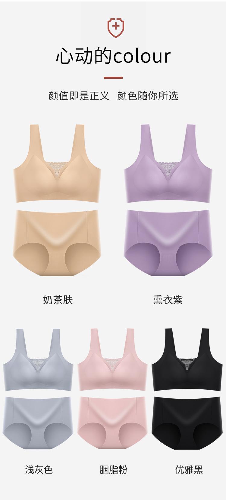 Nuevo Set de Ropa Interior Sin Costuras para Mujer Seda de Hielo Reunido Sin Aros de Acero Pecho Grande Pecho Pequeño Colapsando Paramilia Hermoso Set de Sujetador de Espalda