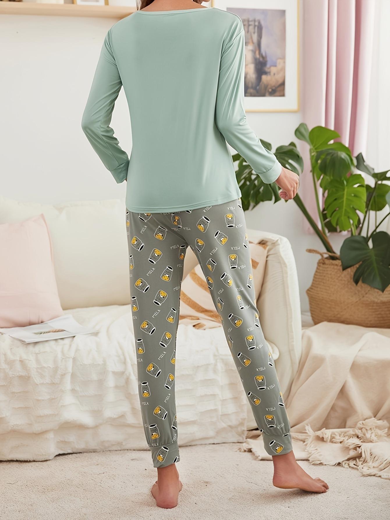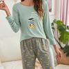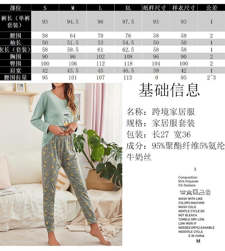Pijama Europeo y Americano Transfronterizo de Comercio Exterior Ropa para el Hogar para Mujer Amazon Mujer Cuello Redondo Manga Larga Dibujos Animados Pantalones Otoño Traje Jersey