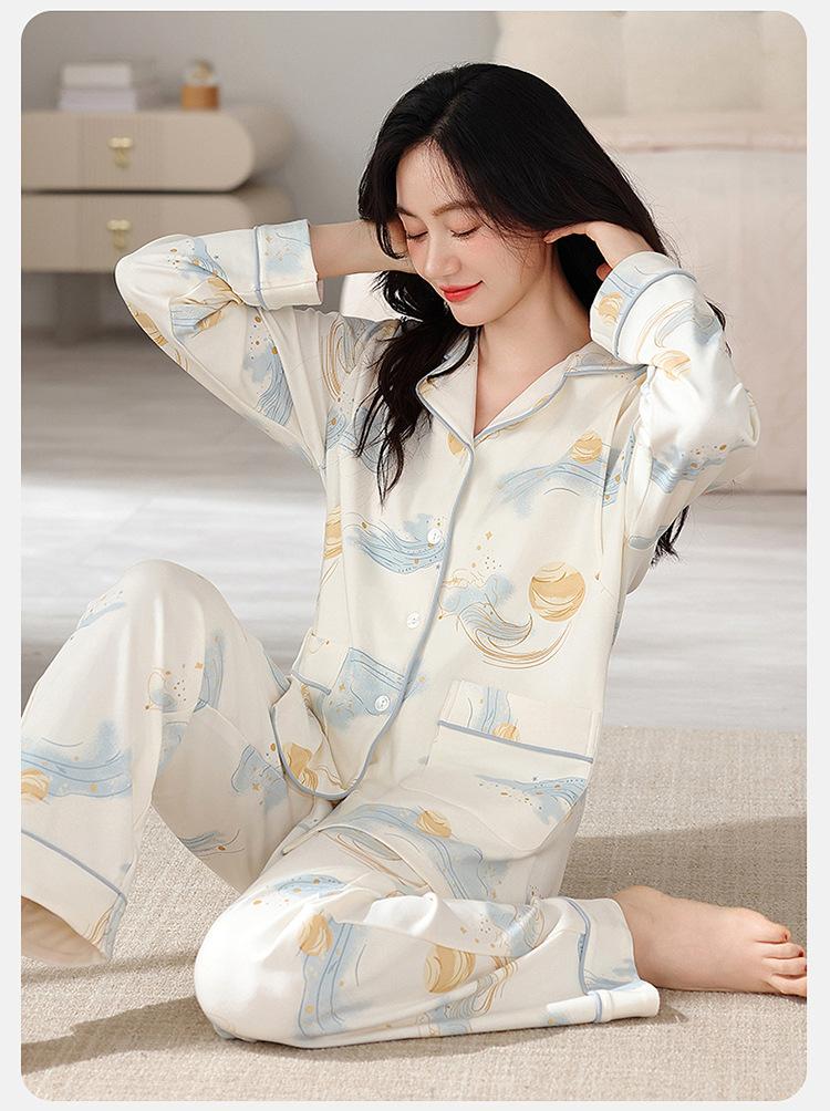 Ropa de Luna de Algodón Puro Pijama para Mujeres Embarazadas con Abertura Lateral Invisible Ropa para Lactancia Postparto Ropa de Casa para Mujer Otoño e Invierno