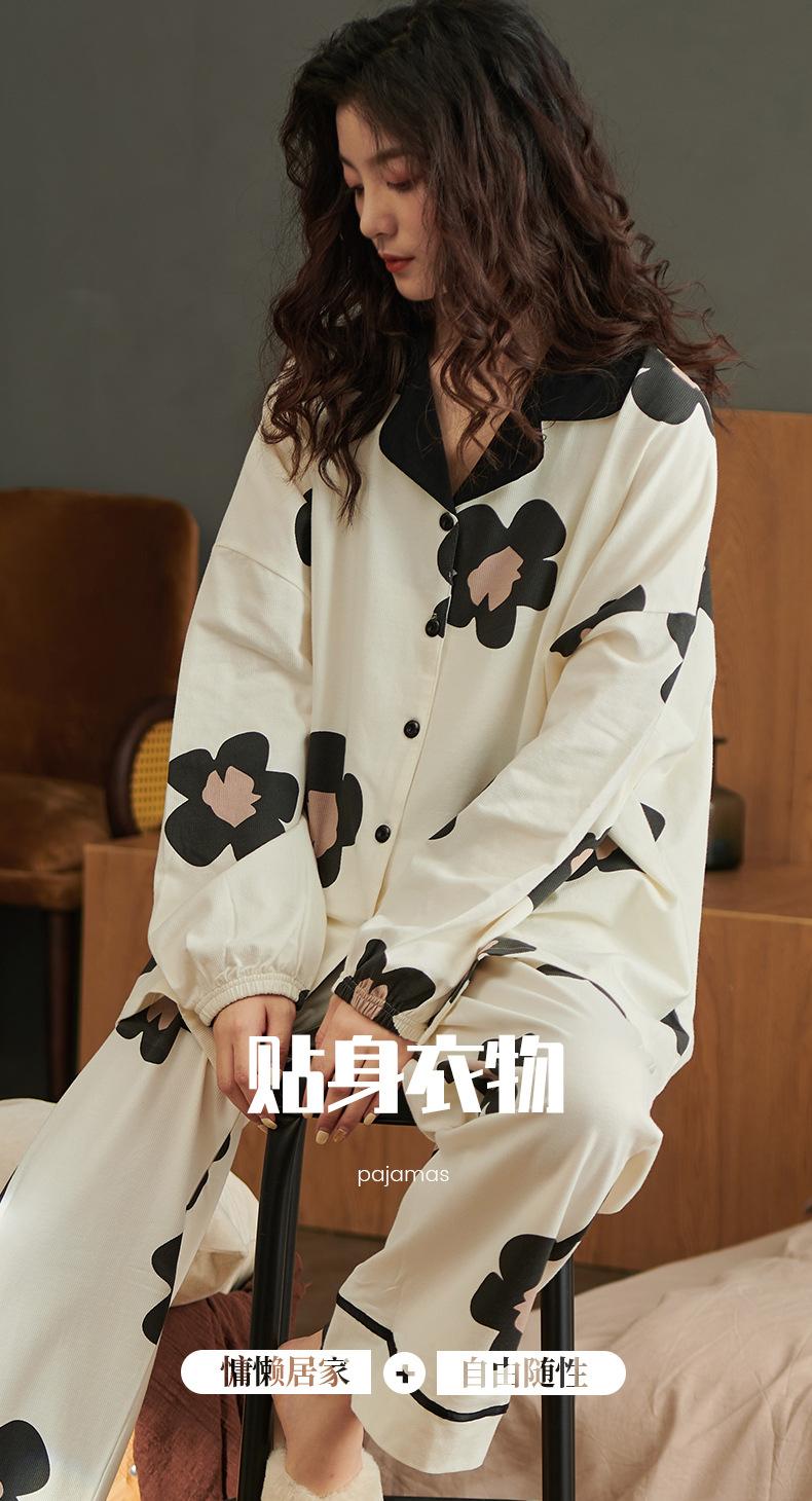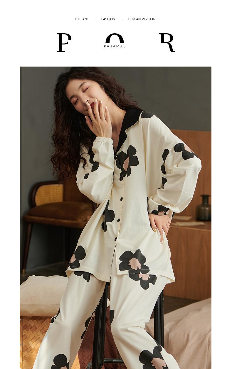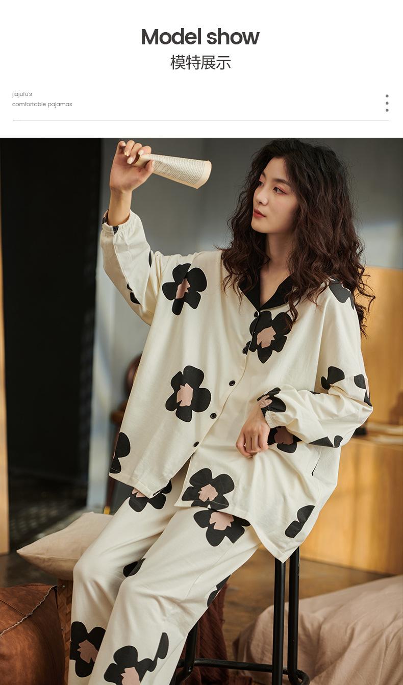Compra Pijama para Mujer Algodón Manga Larga Traje Cárdigan Primavera y Otoño Sencillo Estampado Casual Holgado Ropa para el Hogar al por mayor en Joom.pro