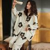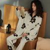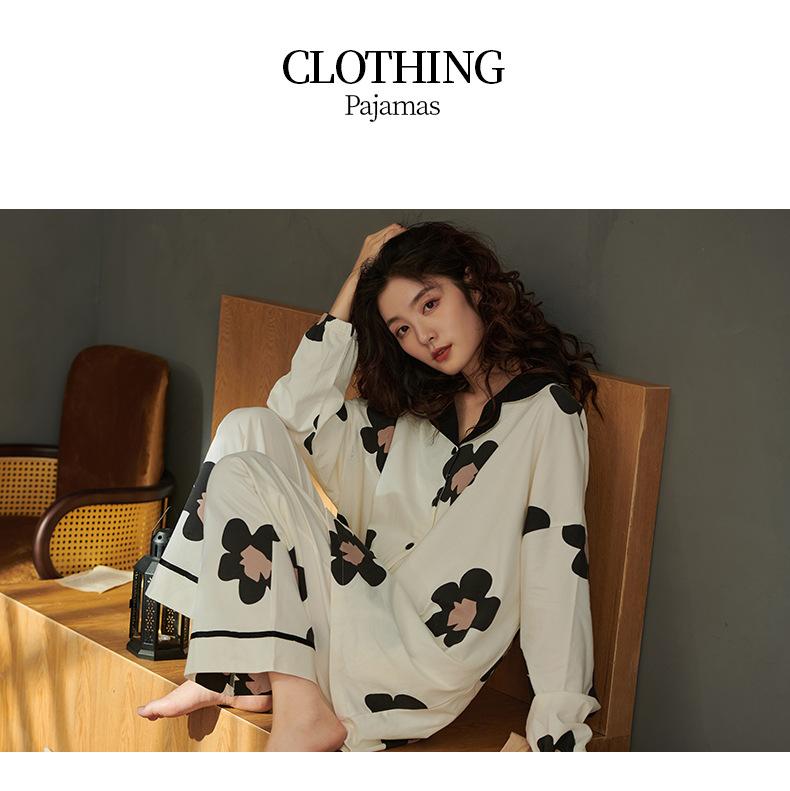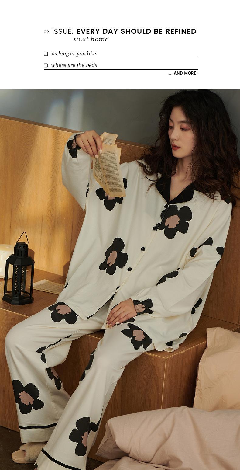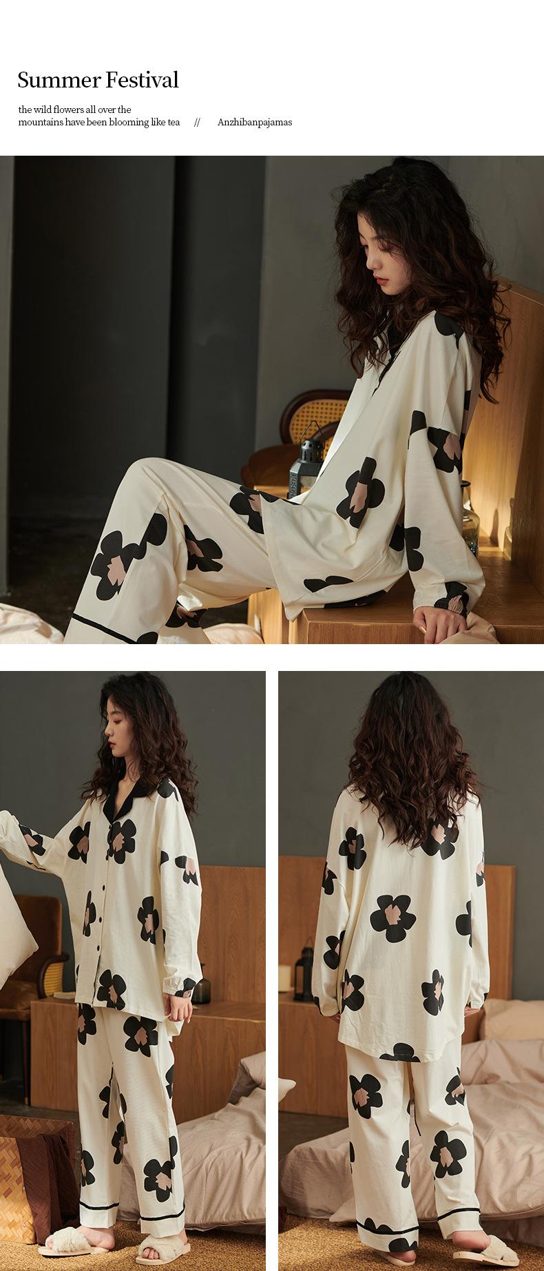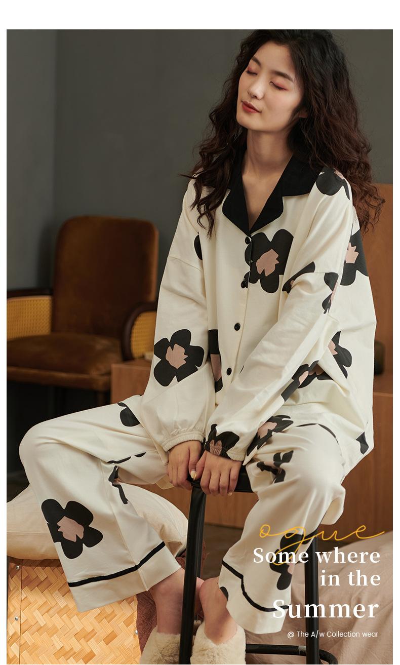 Compra Pijama para Mujer Algodón Manga Larga Traje Cárdigan Primavera y Otoño Sencillo Estampado Casual Holgado Ropa para el Hogar al por mayor en Joom.pro