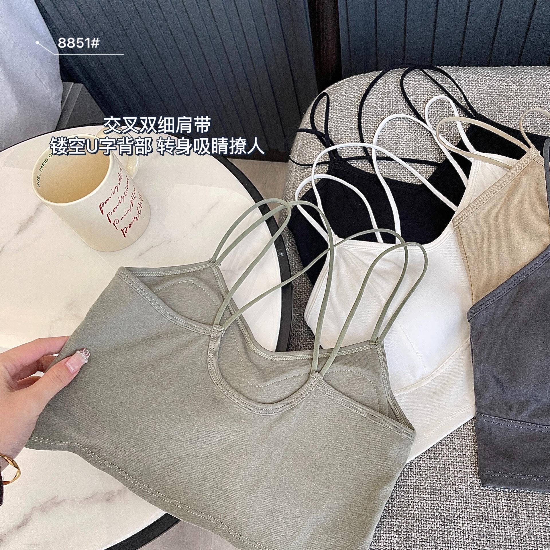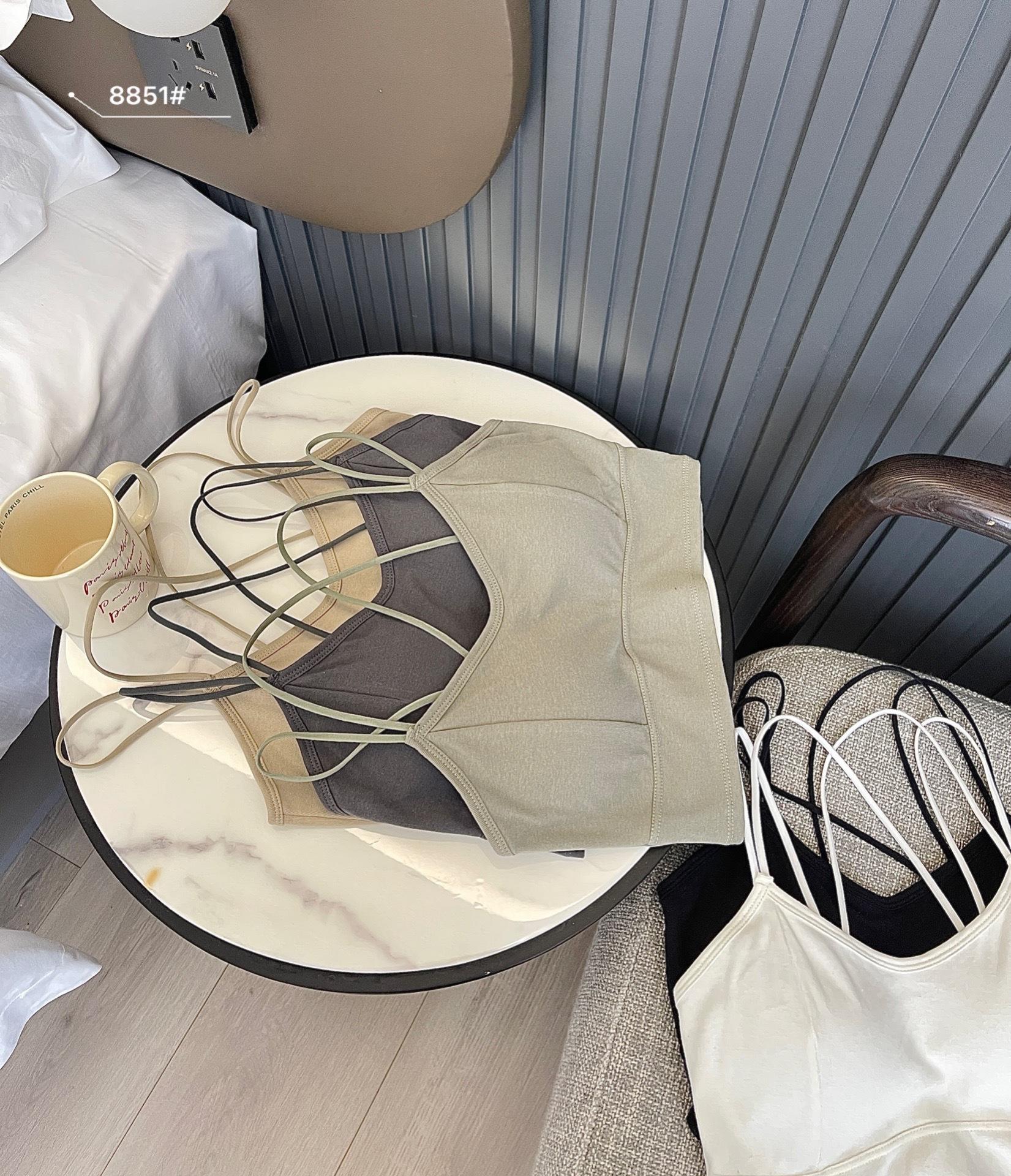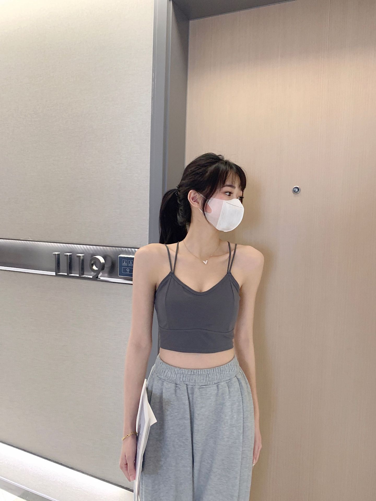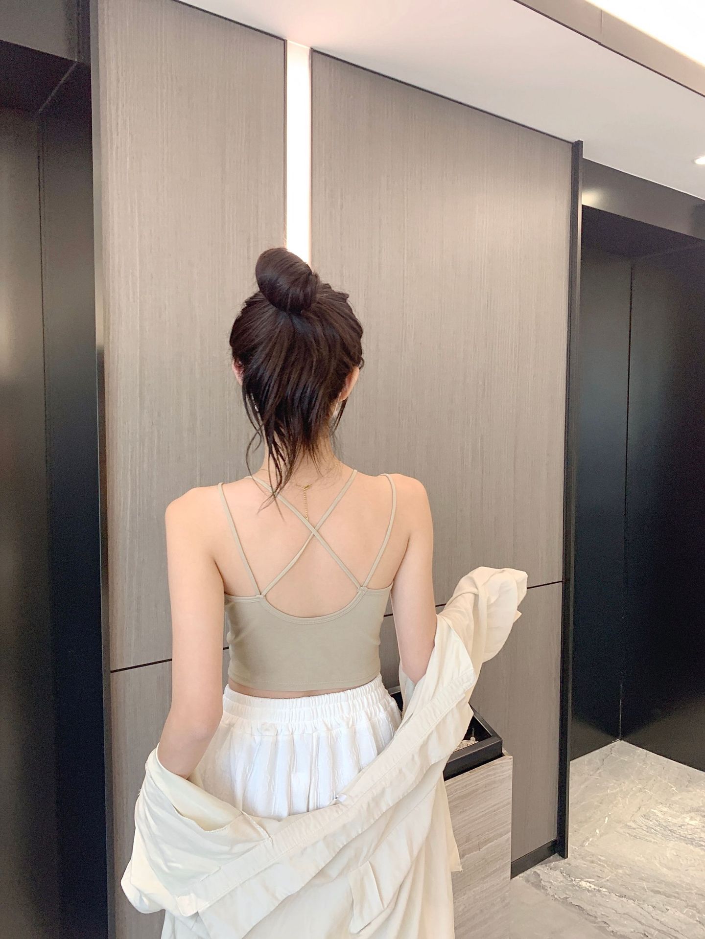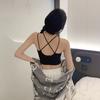 Camisola de primavera y verano para mujer, color sólido, con doble tirante cruzado en la espalda, transpirable, con agujeros y copa fija, sin aros de acero