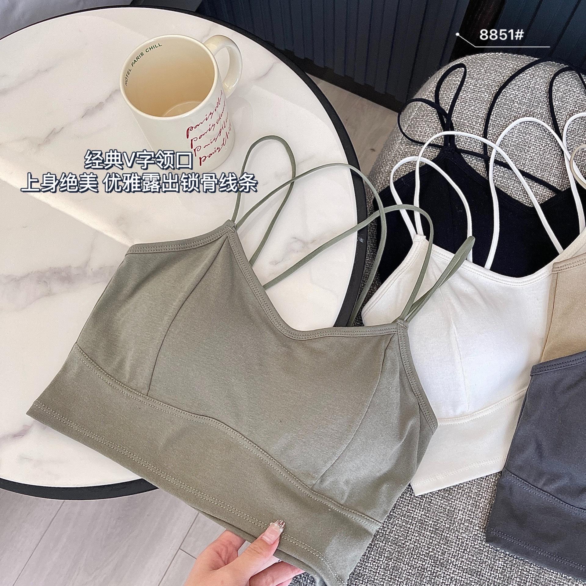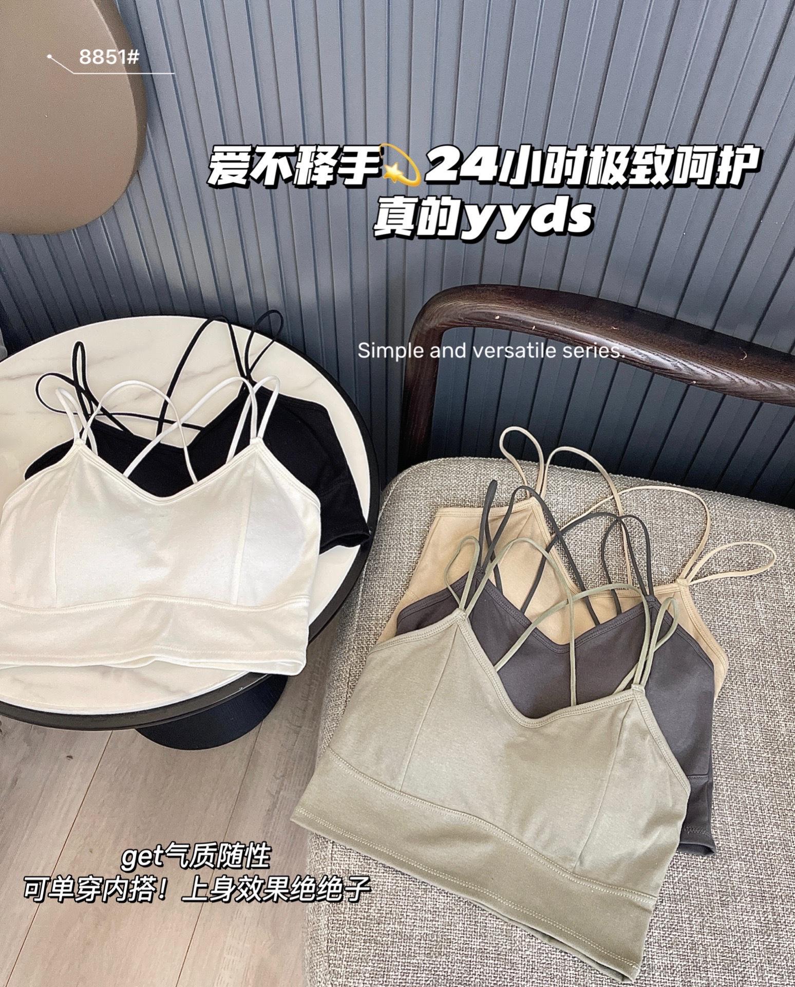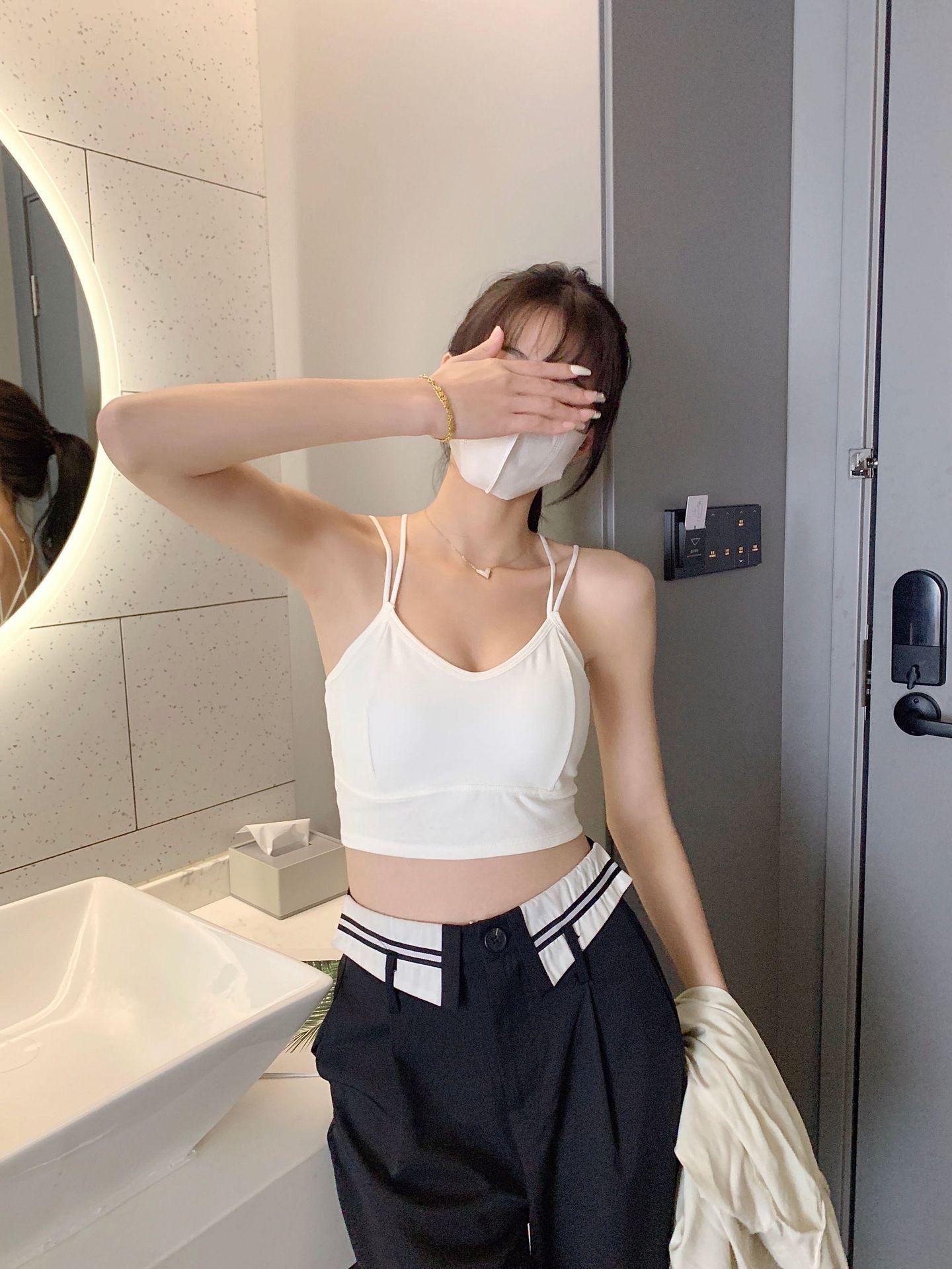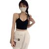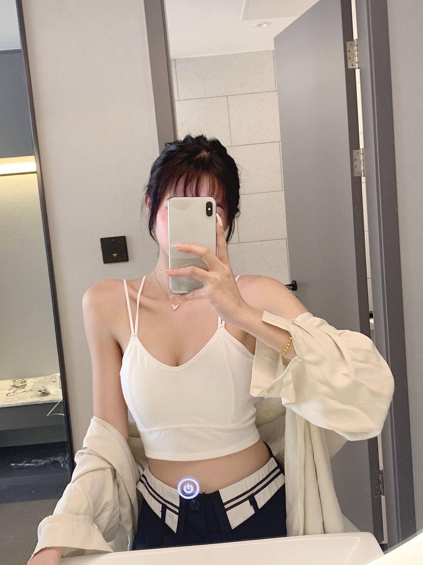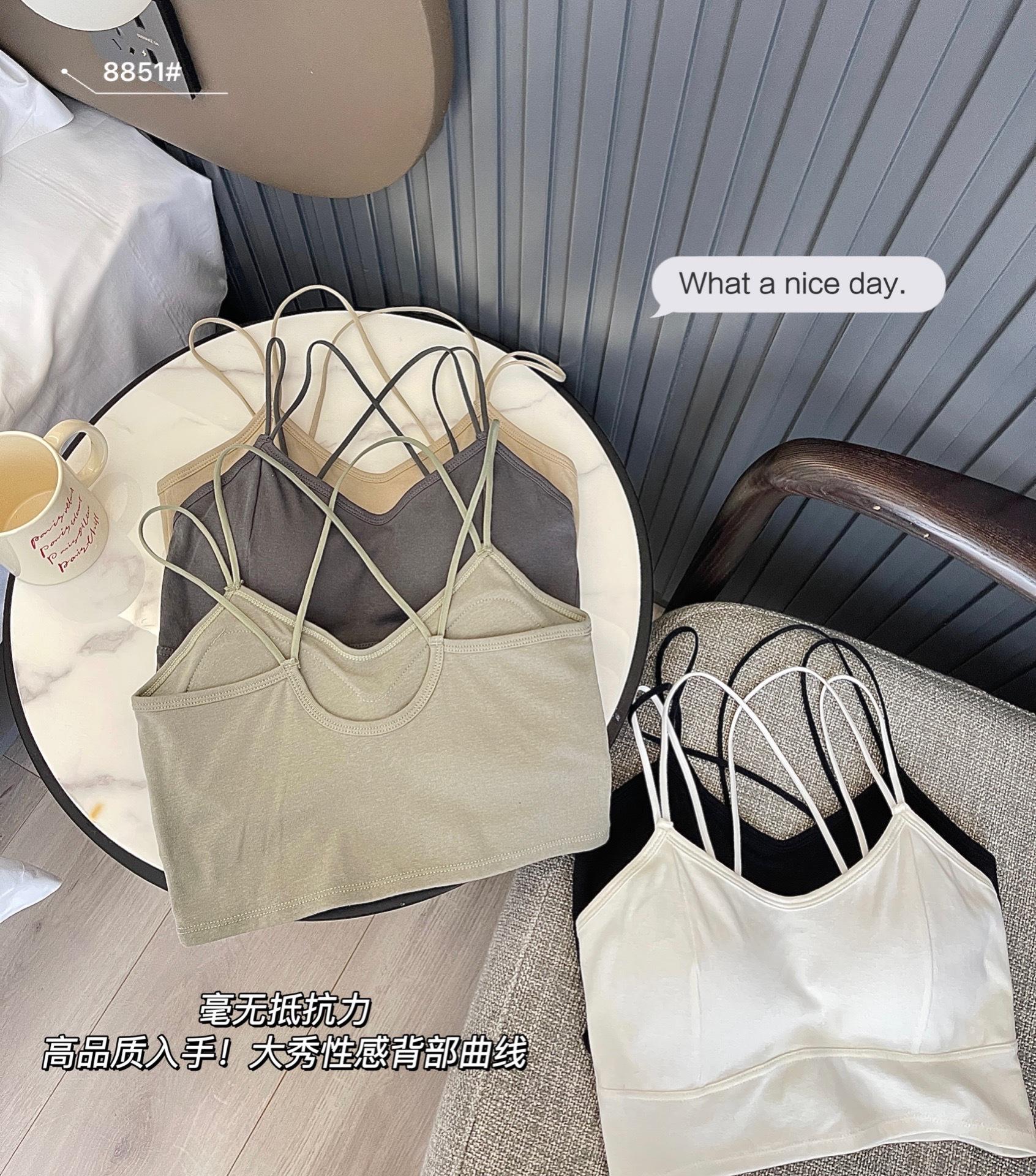Camisola de primavera y verano para mujer, color sólido, con doble tirante cruzado en la espalda, transpirable, con agujeros y copa fija, sin aros de acero
