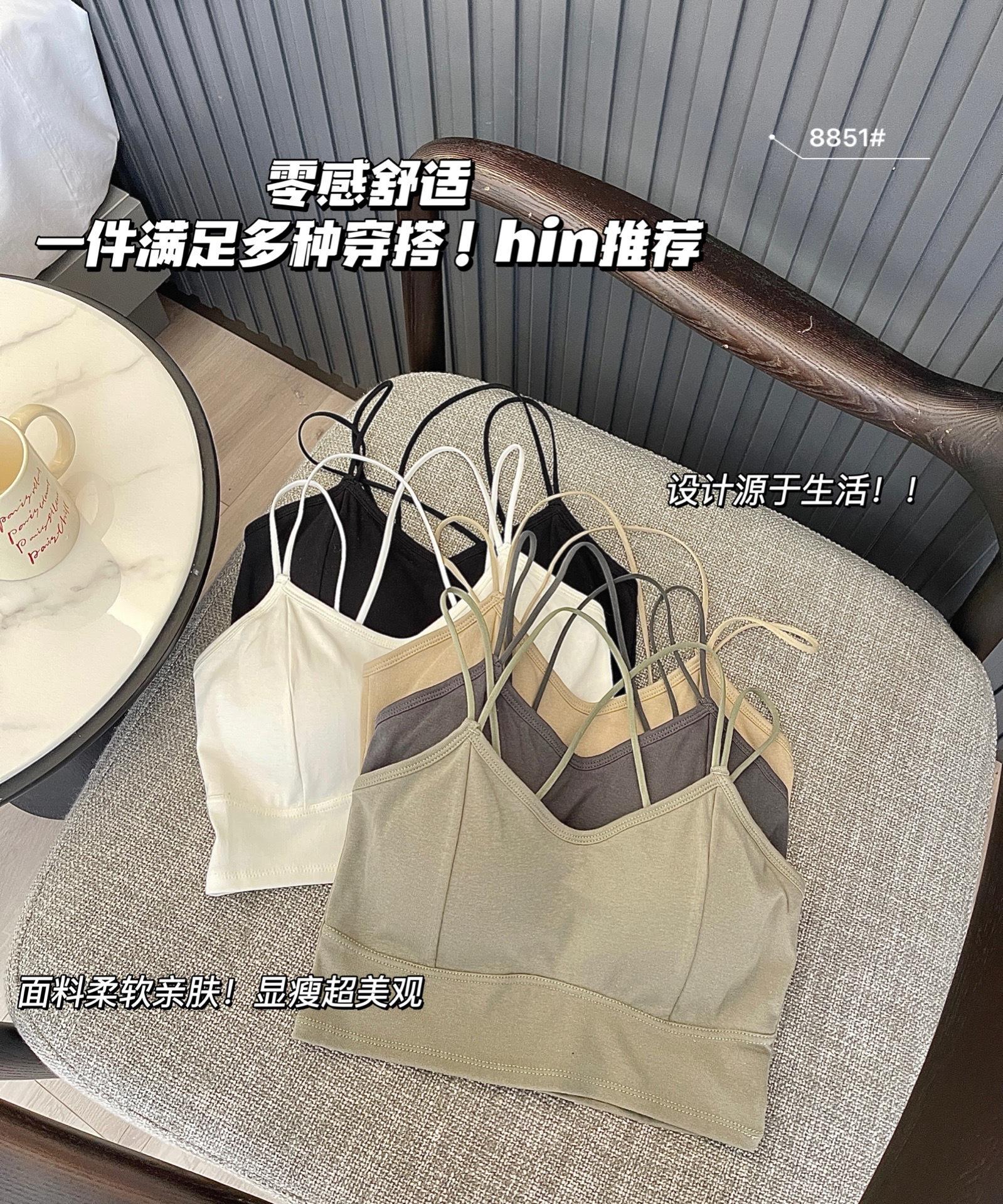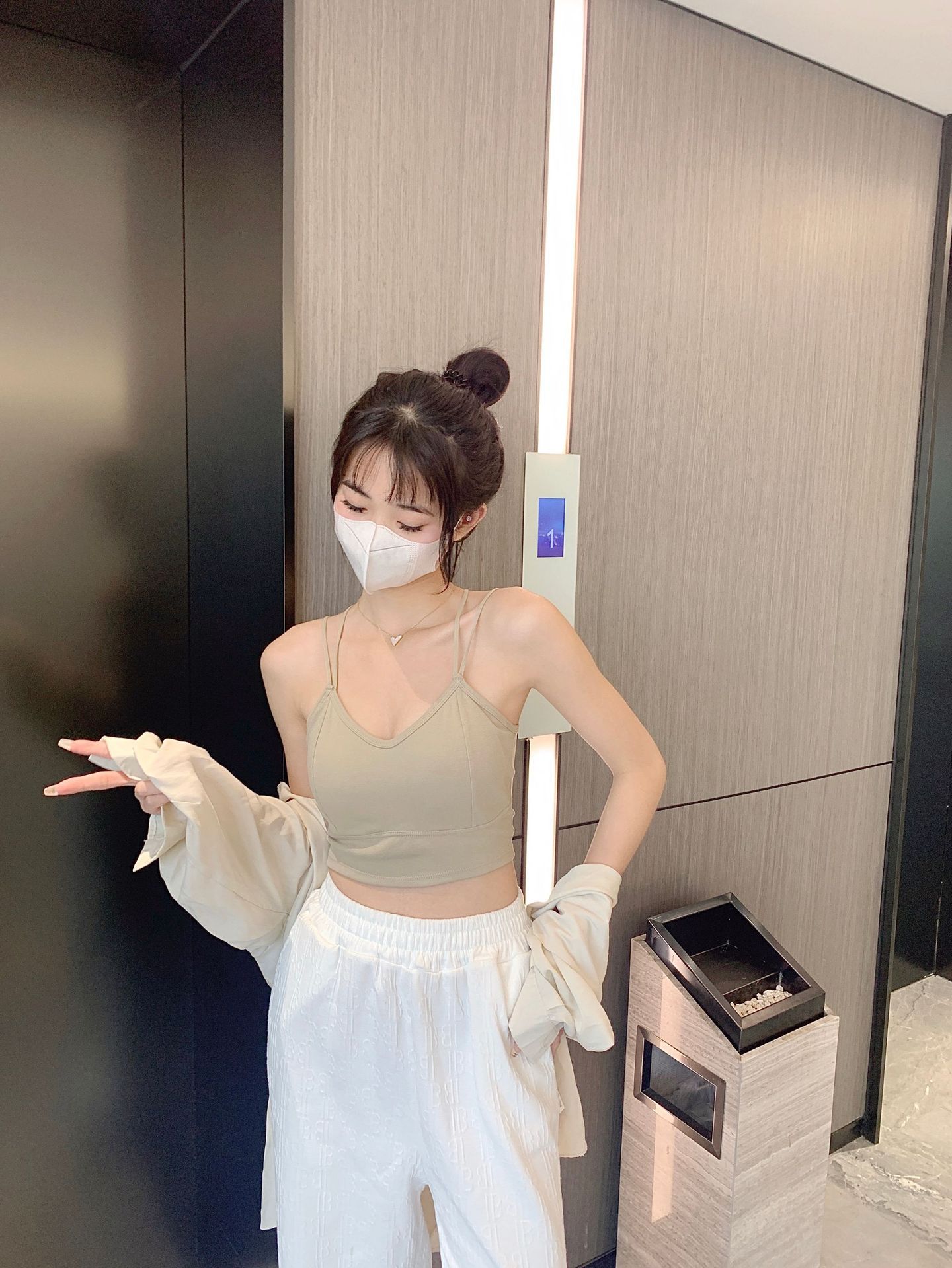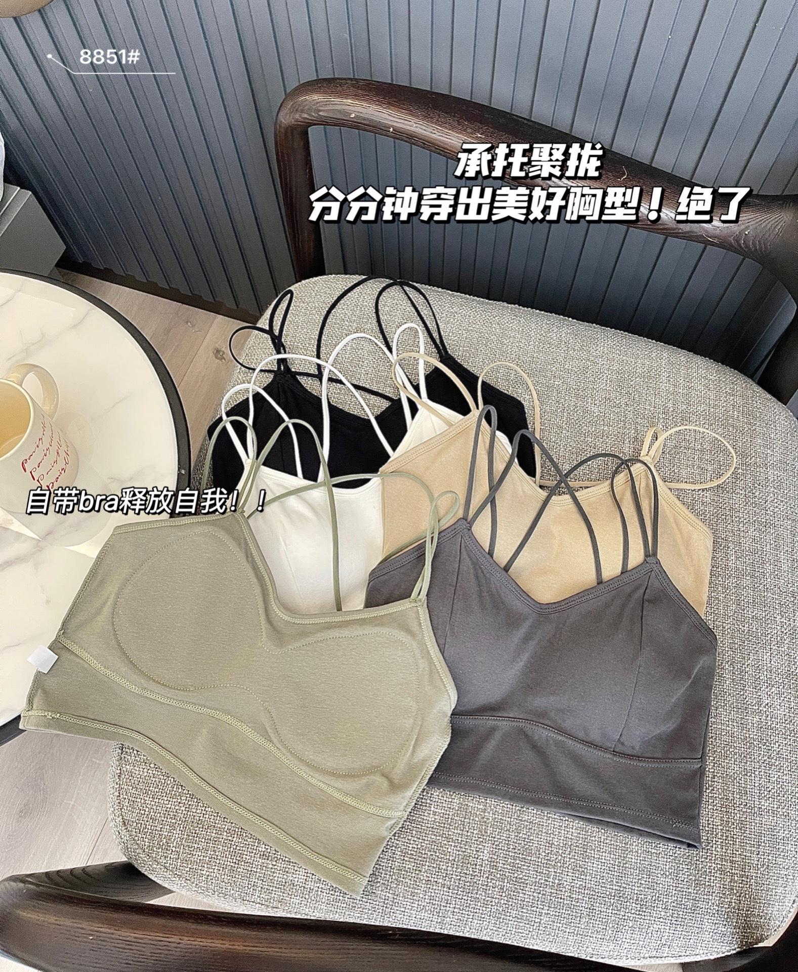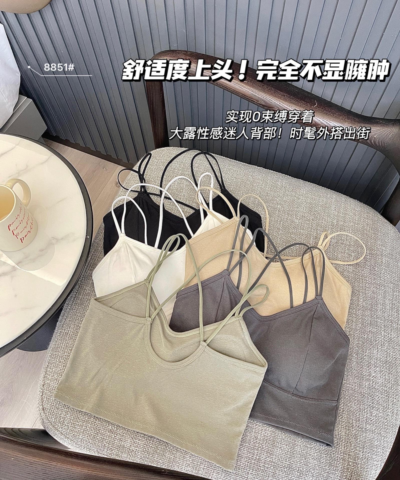 Camisola de primavera y verano para mujer, color sólido, con doble tirante cruzado en la espalda, transpirable, con agujeros y copa fija, sin aros de acero