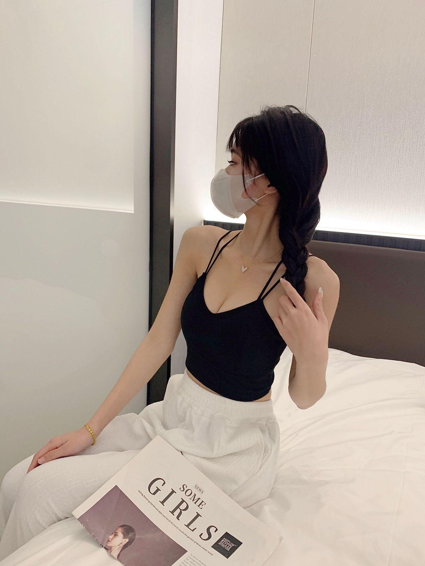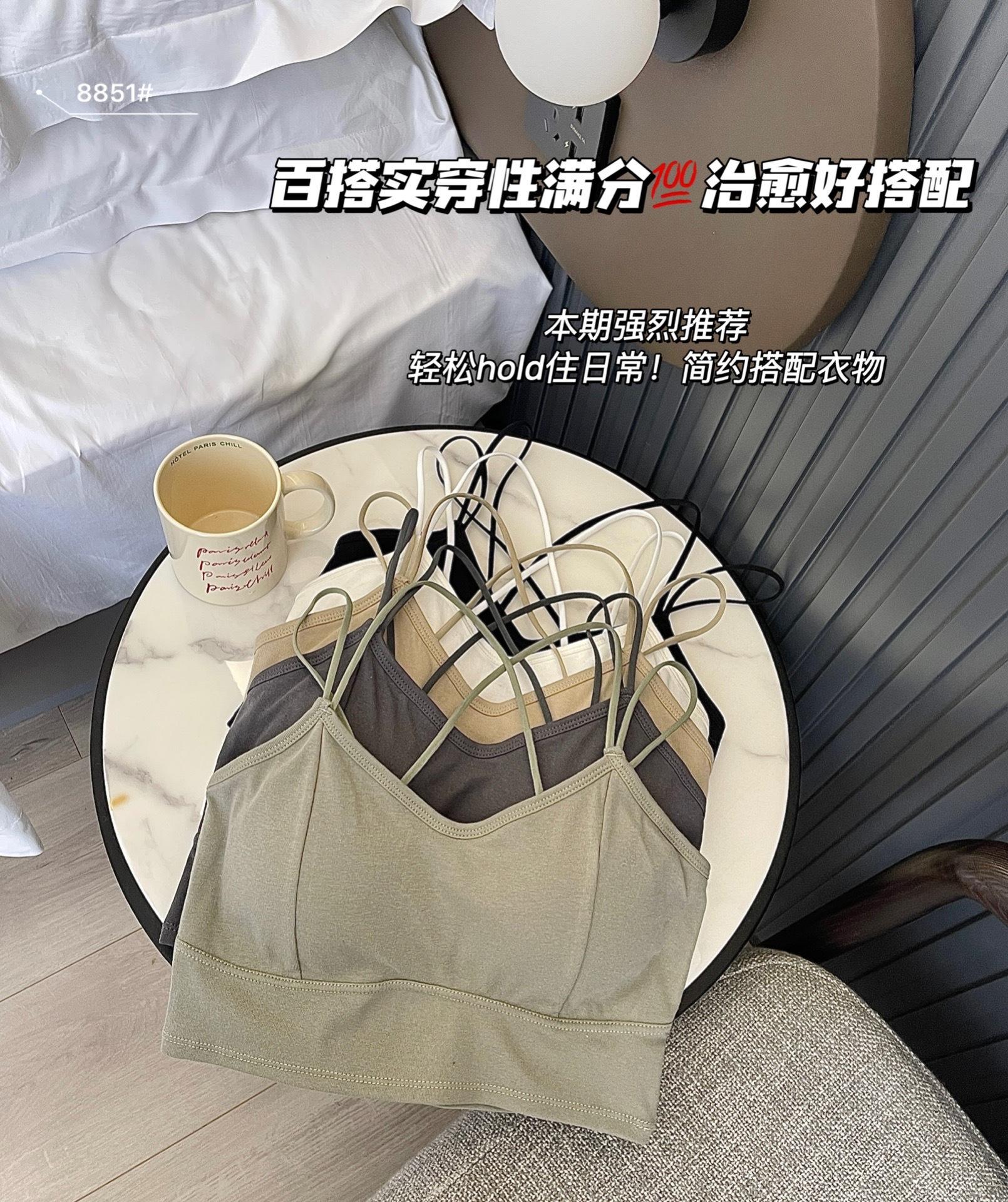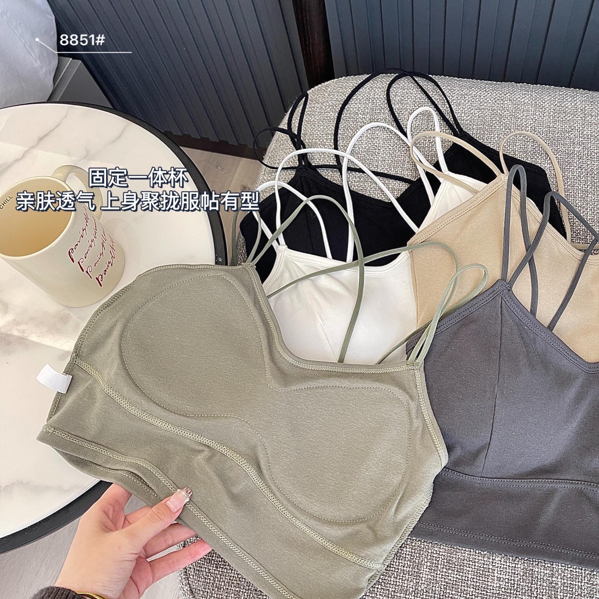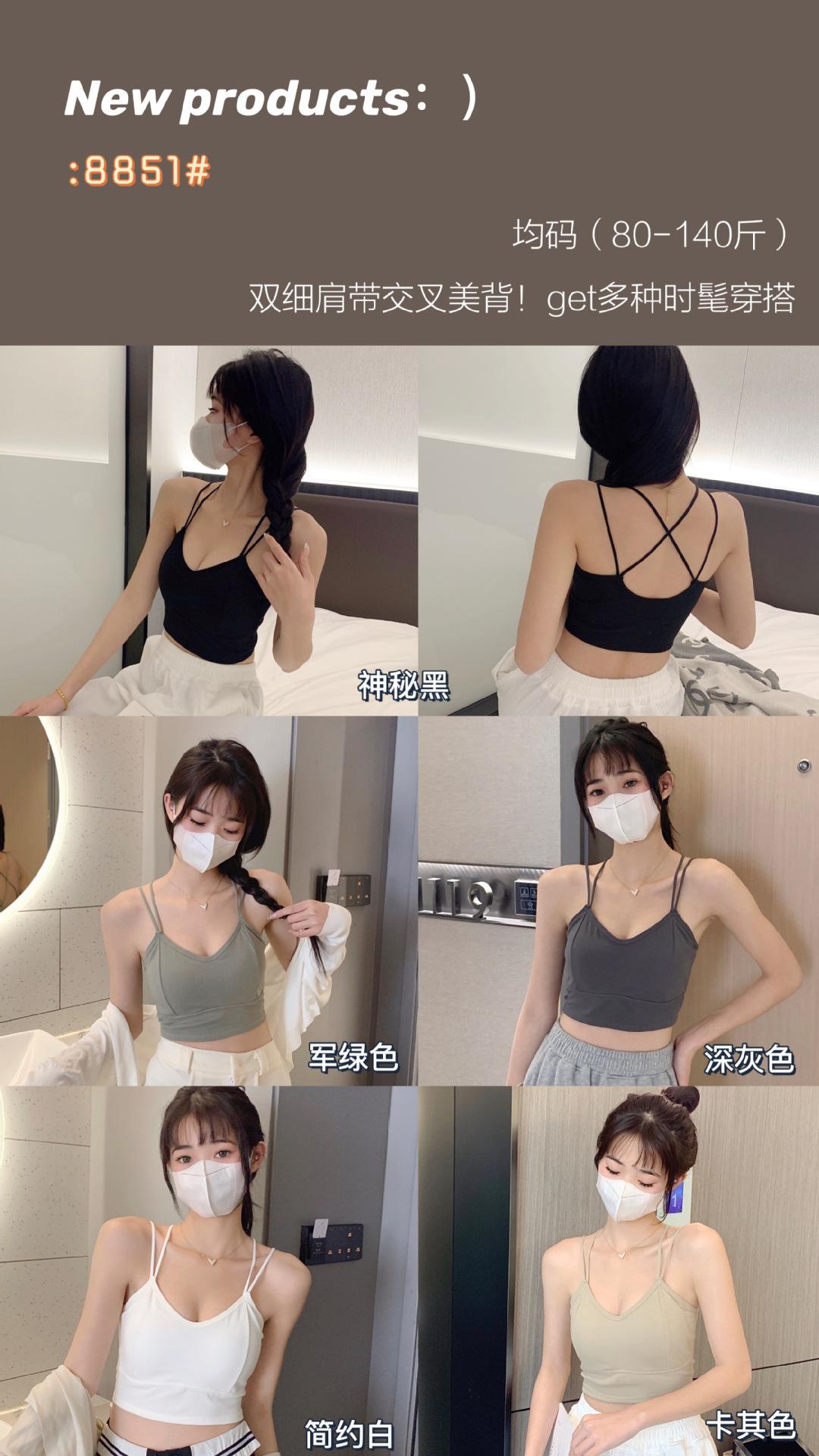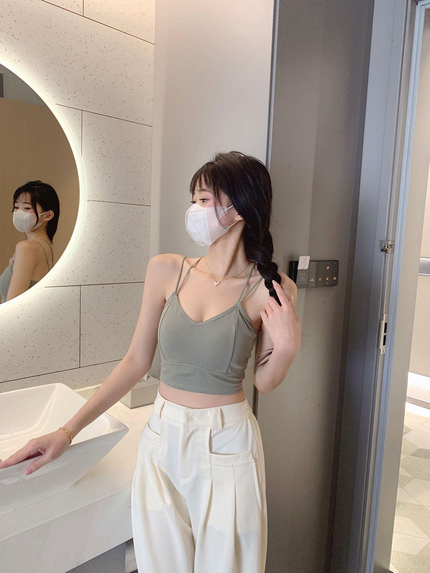 Camisola de primavera y verano para mujer, color sólido, con doble tirante cruzado en la espalda, transpirable, con agujeros y copa fija, sin aros de acero