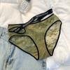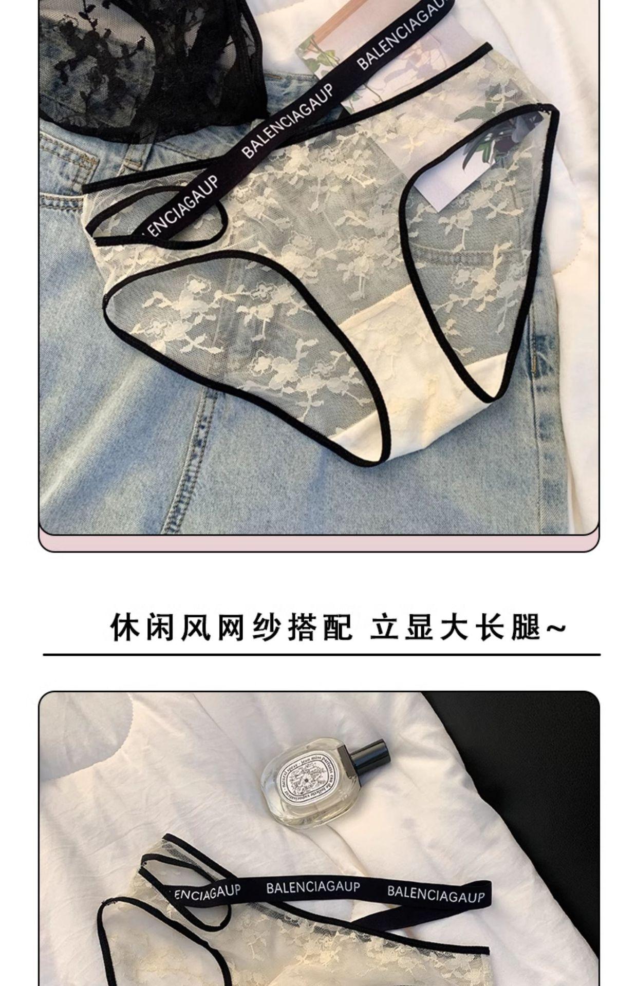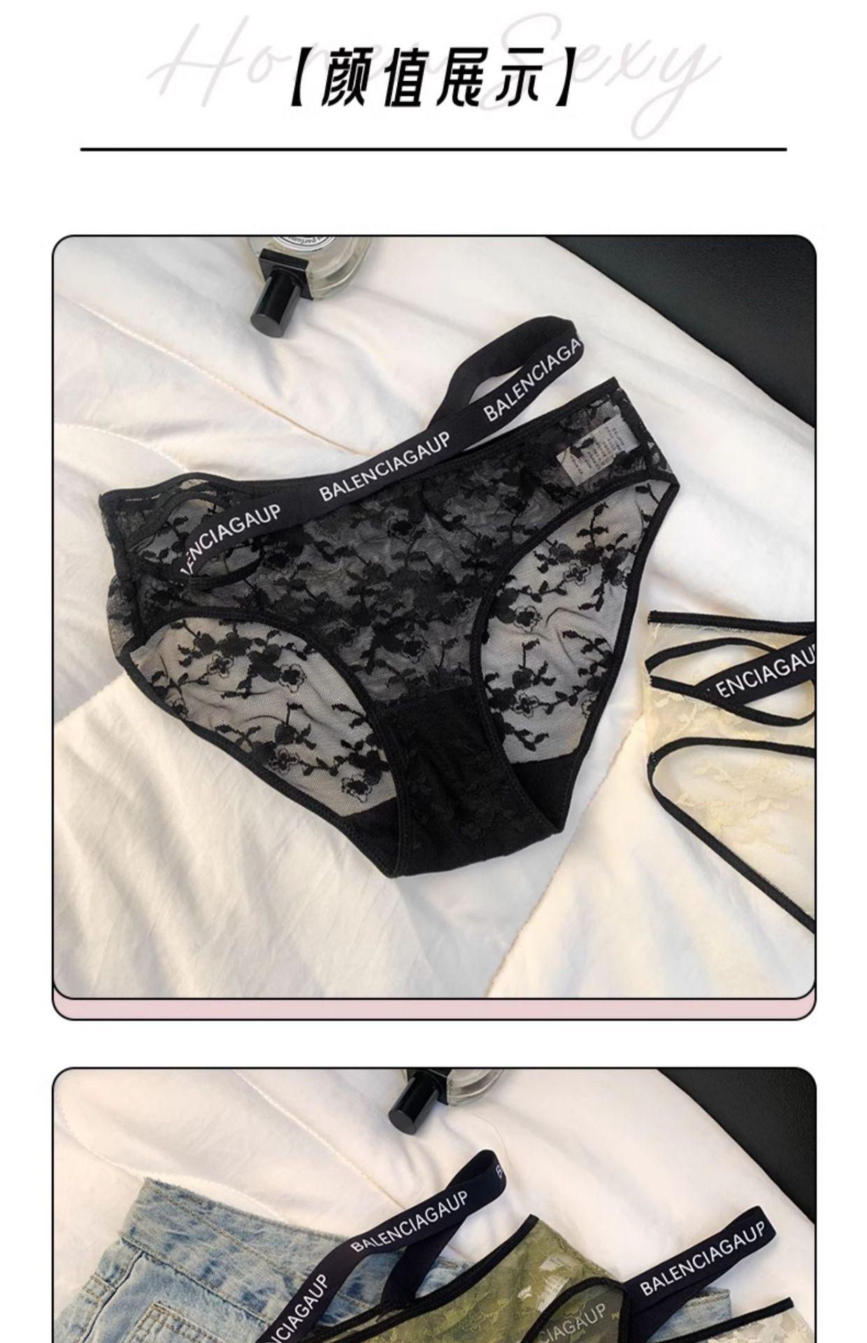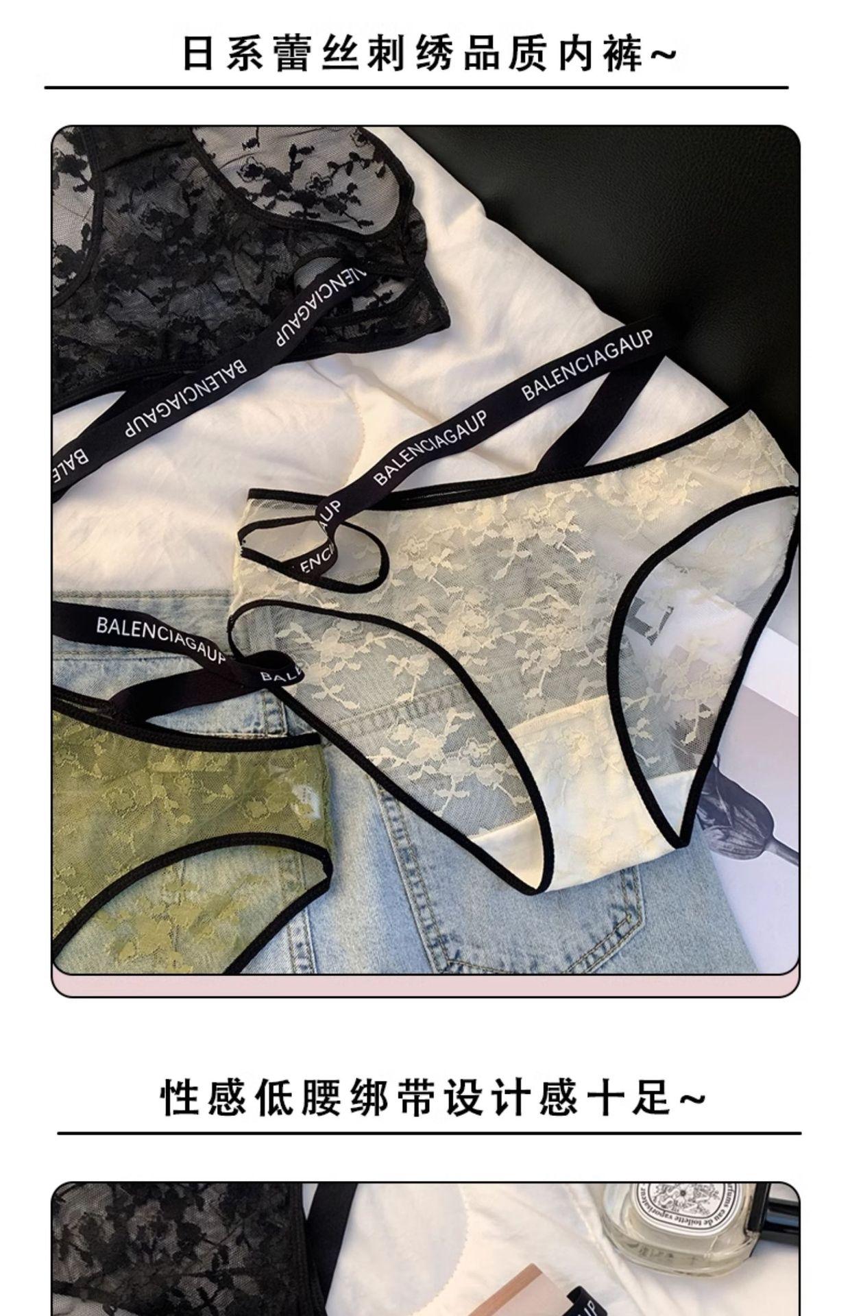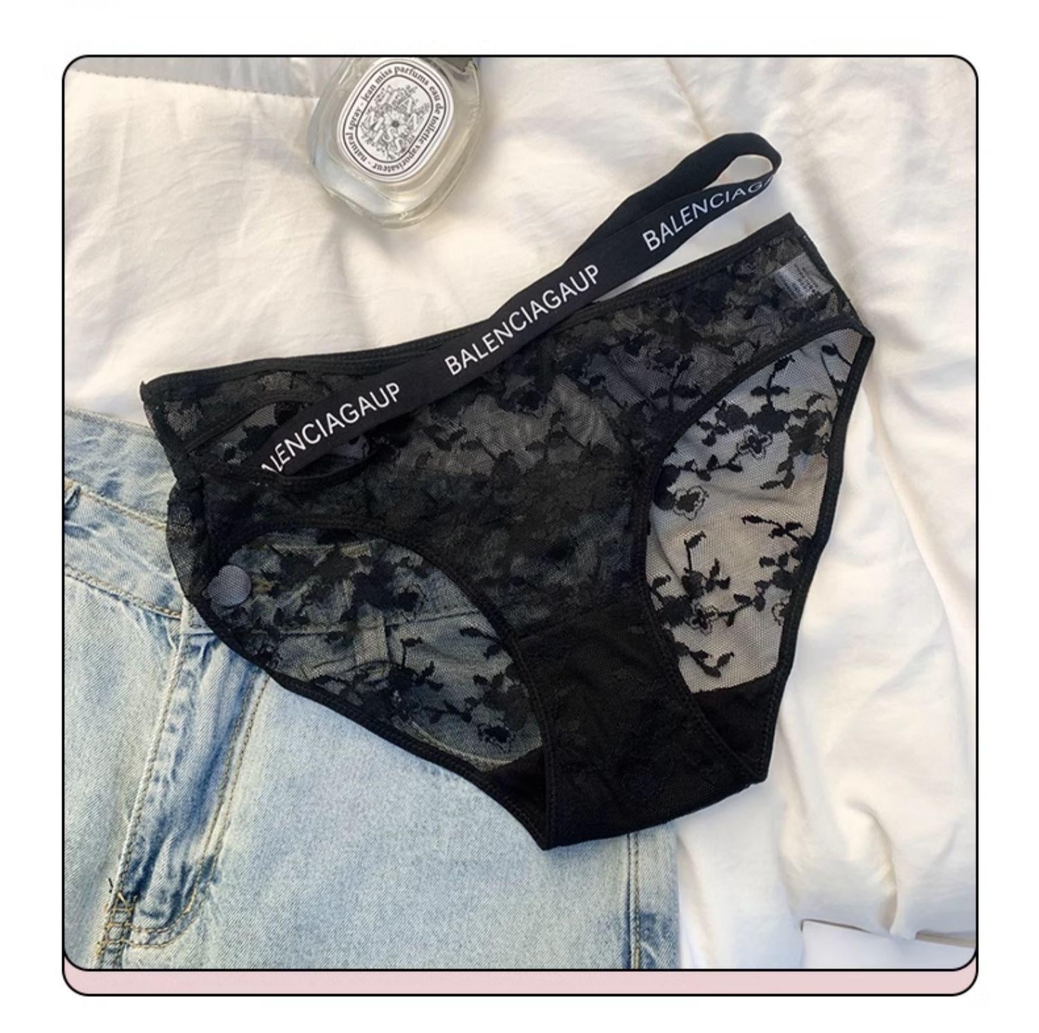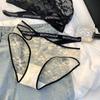 Ropa interior de encaje estilo japonés para mujer, sexy, con puro deseo, tirantes sin dejar rastro, calados, pantalones cortos negros de cintura baja para niña, calzoncillos de verano