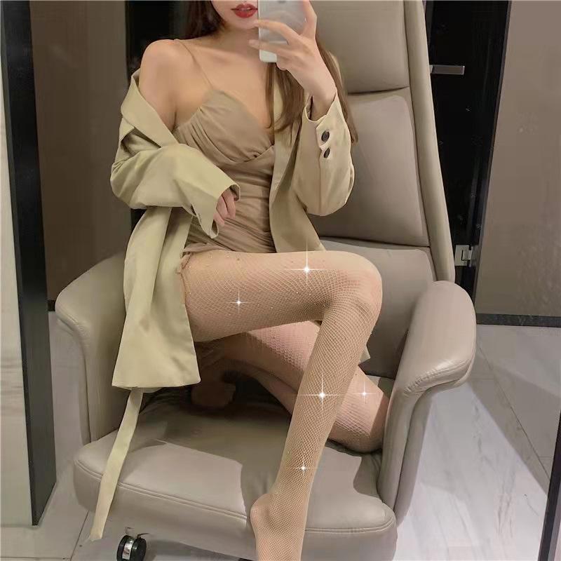 Medias de rejilla con perforaciones de celebridades de Internet, coloridas y sexys, estilo europeo y americano, con diamantes de moda.