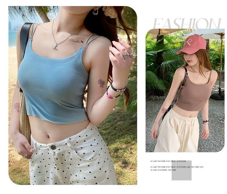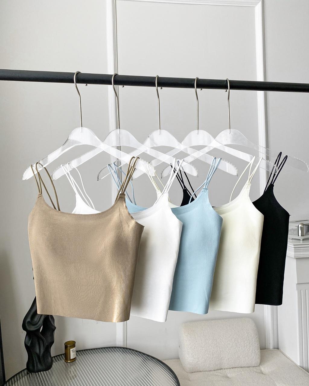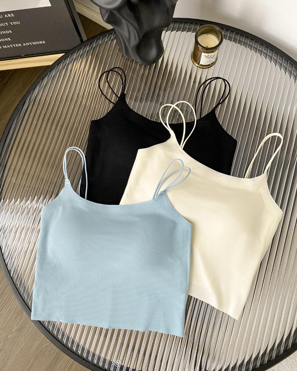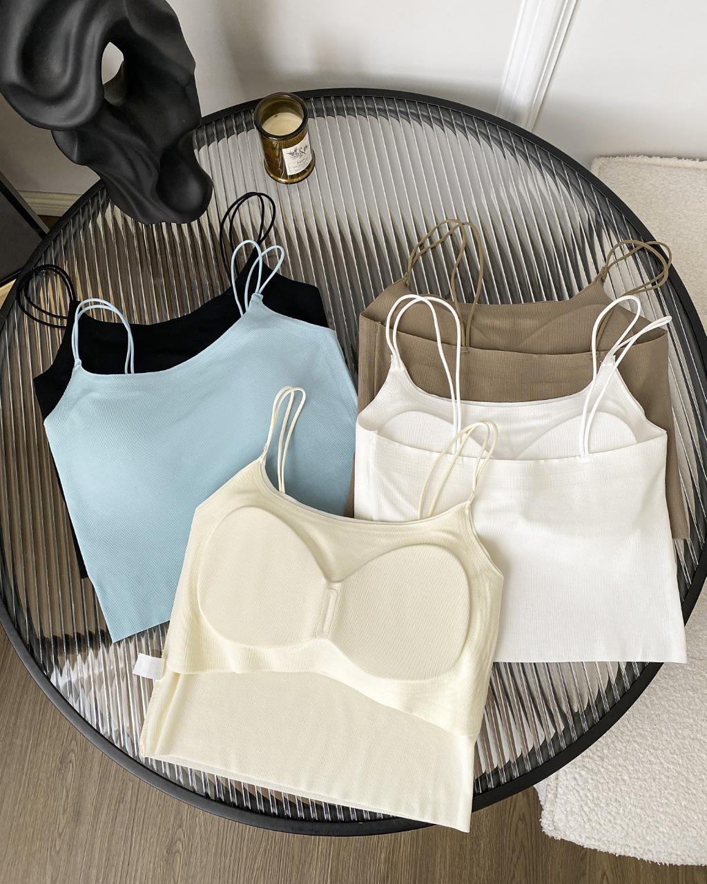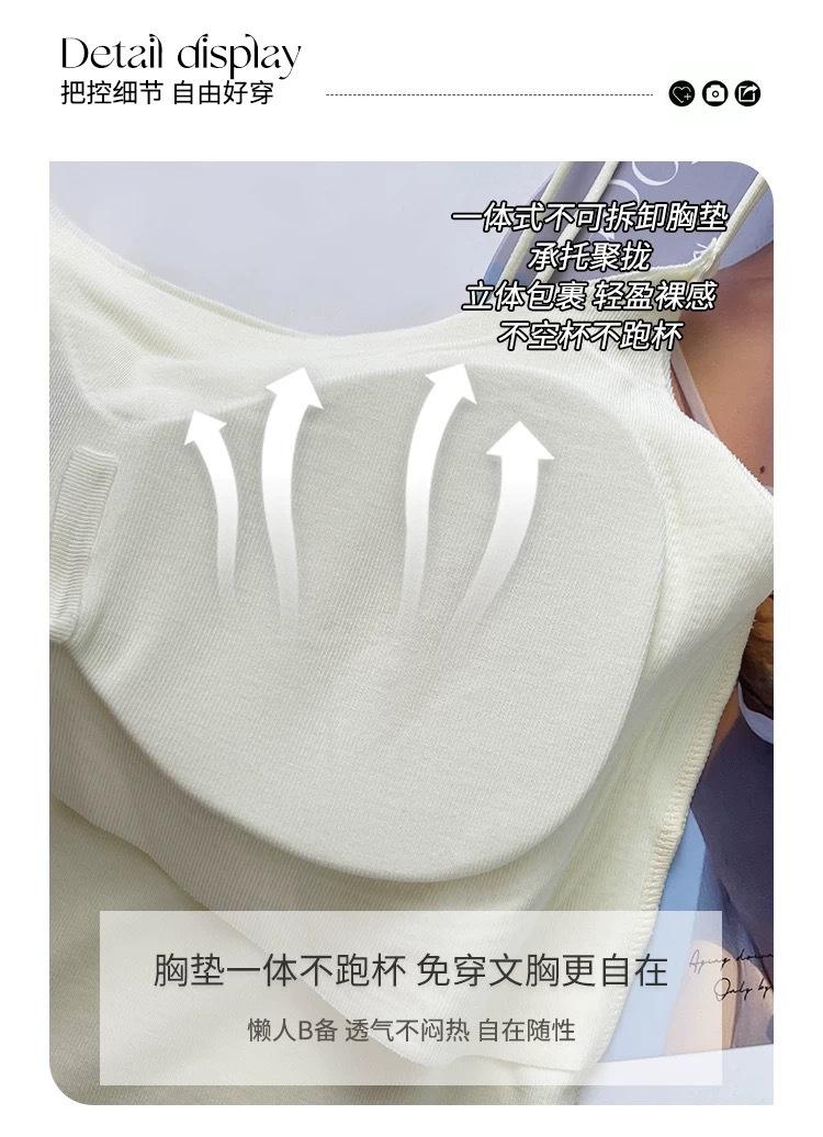 Camisola sin costuras de algodón seda de hielo, Copa fija de una pieza, Sexy push-up con tirantes dobles para los hombros, Top básico para llevar debajo y encima para el verano