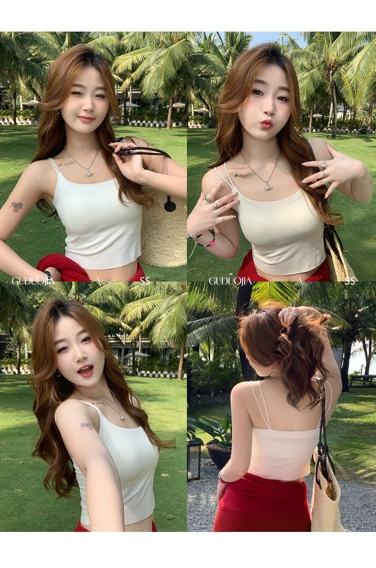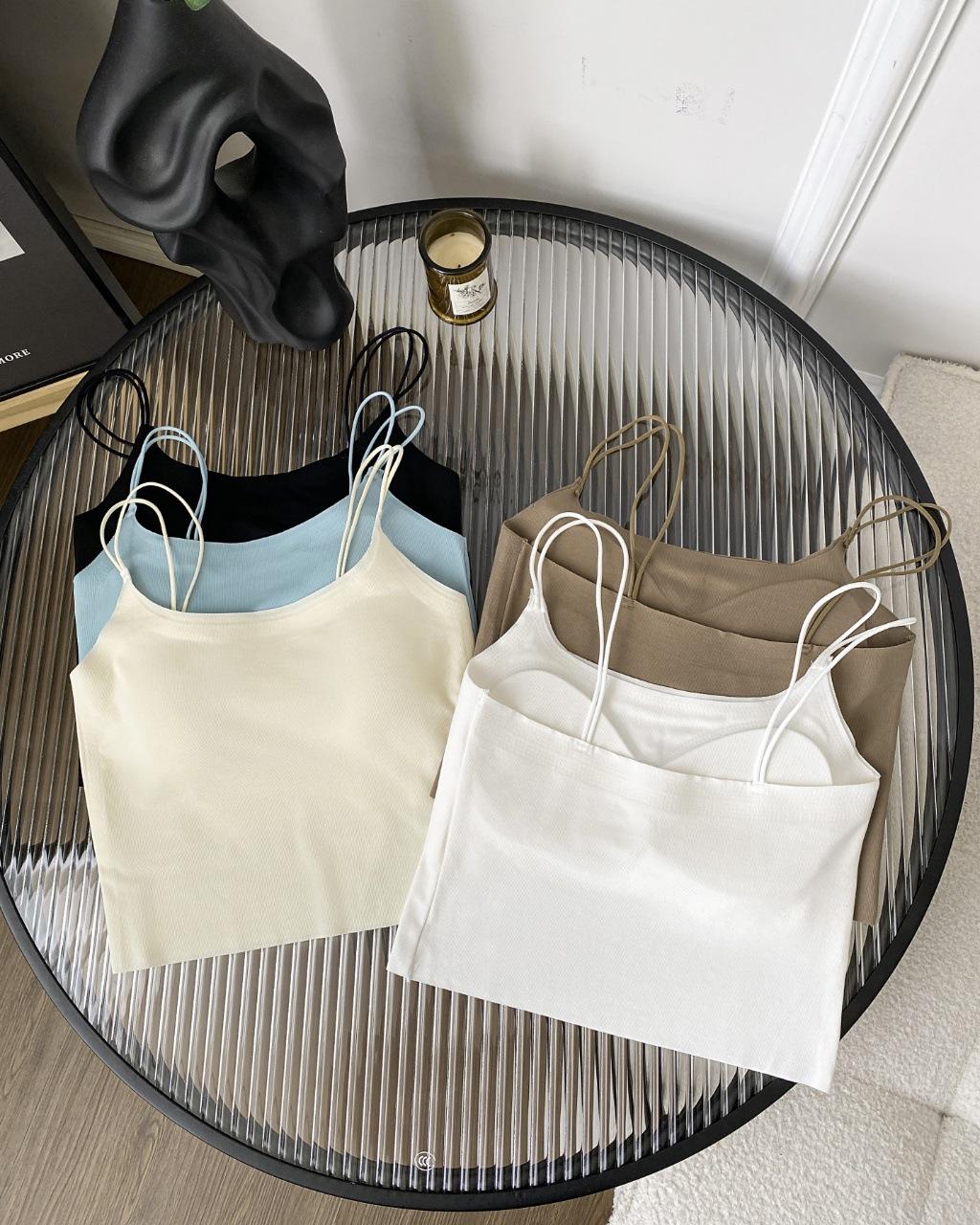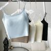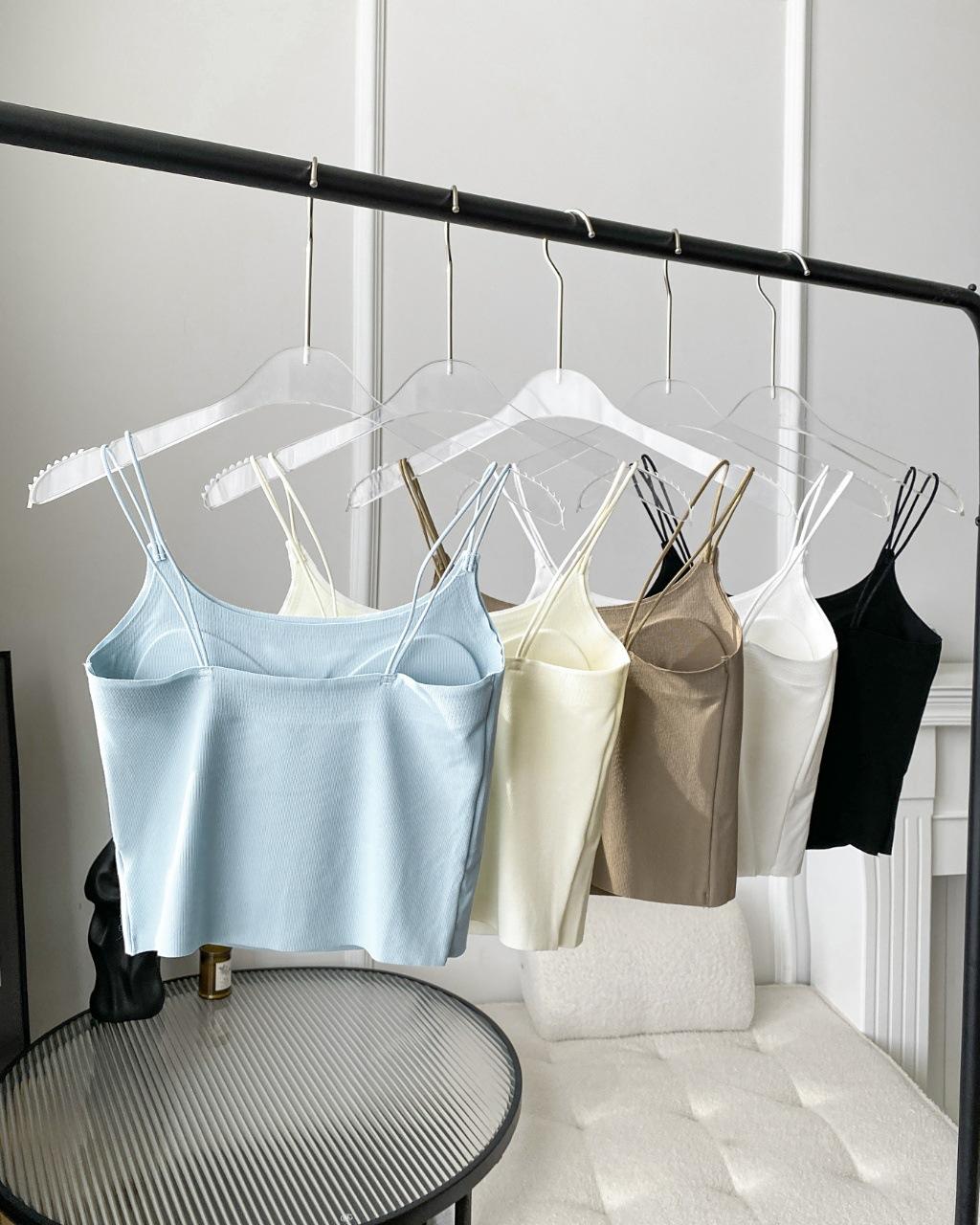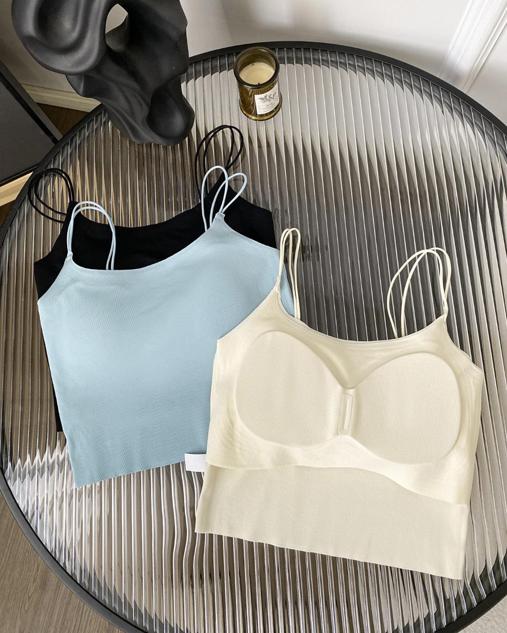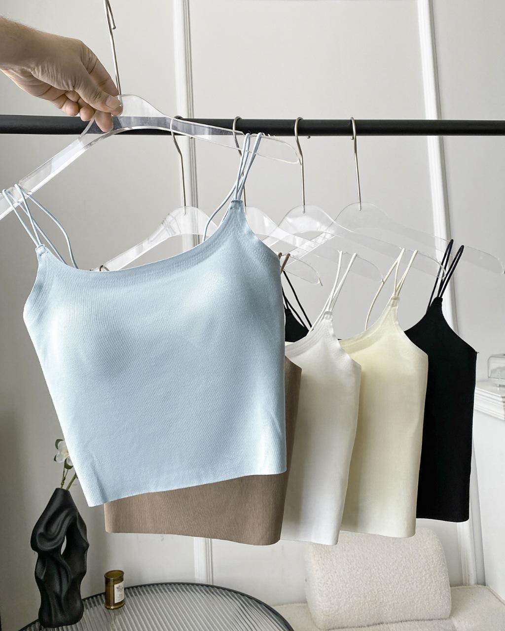 Camisola sin costuras de algodón seda de hielo, Copa fija de una pieza, Sexy push-up con tirantes dobles para los hombros, Top básico para llevar debajo y encima para el verano