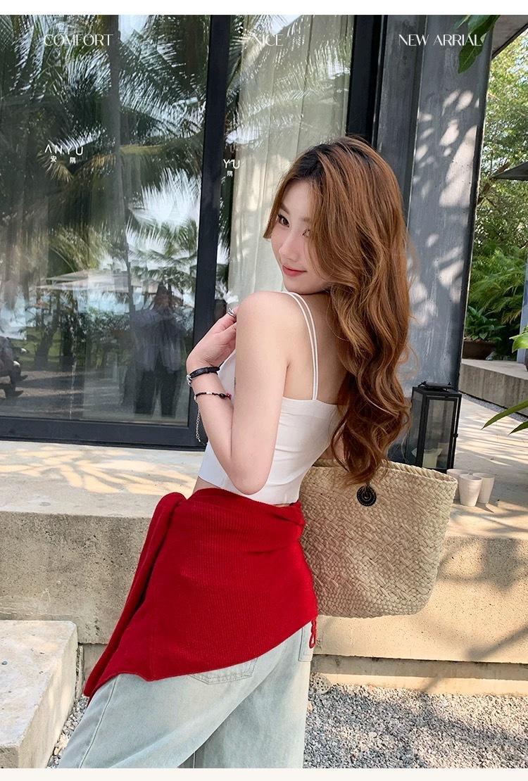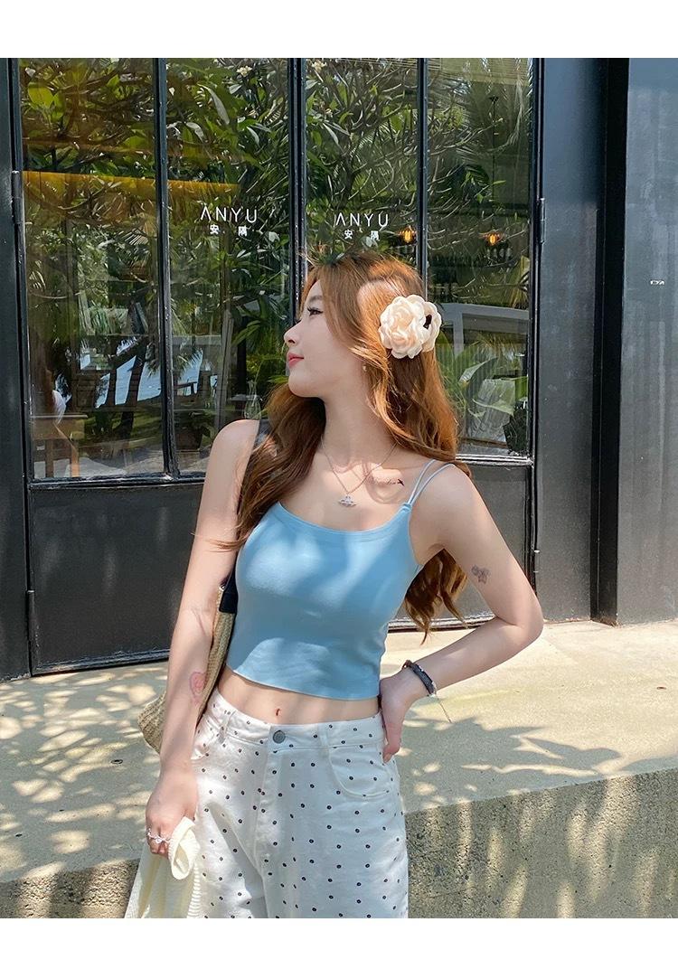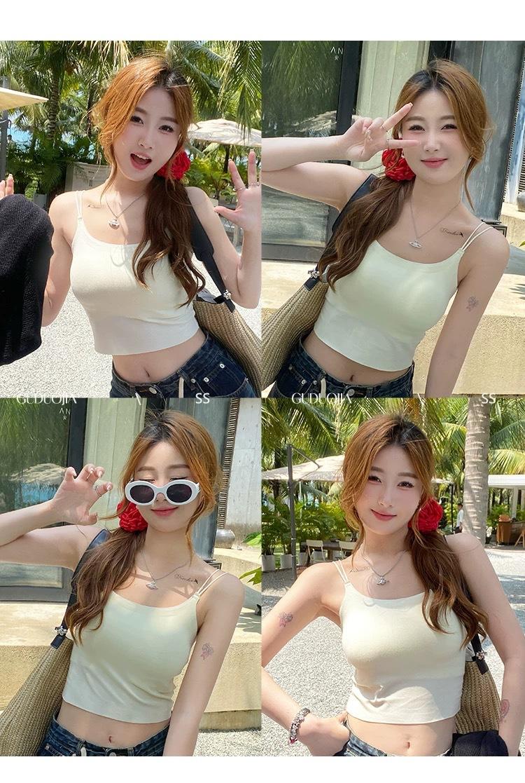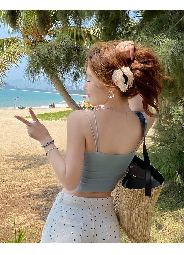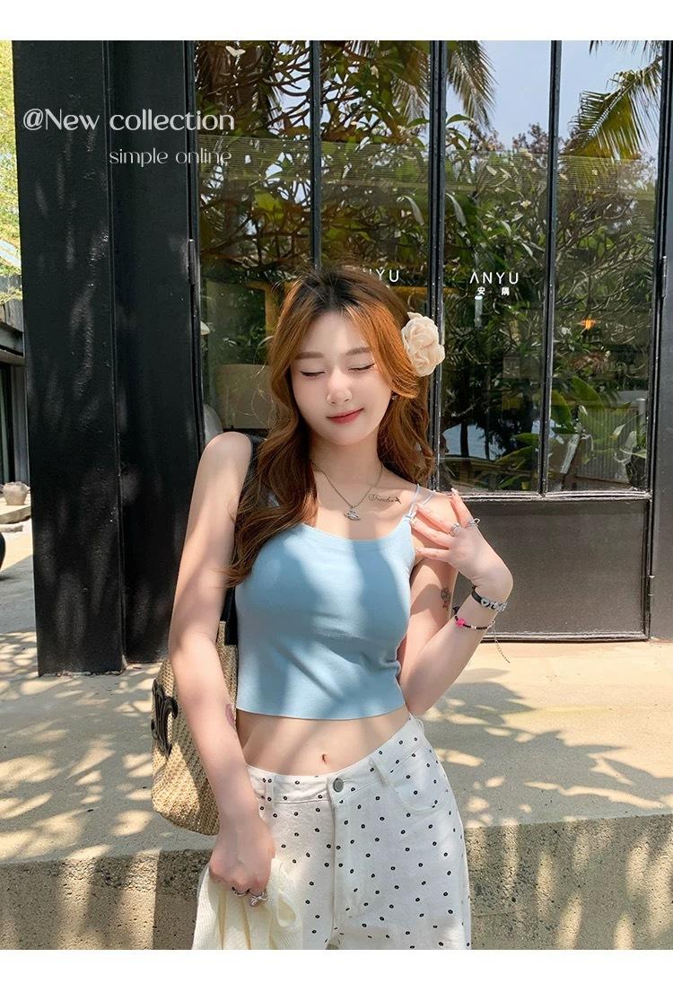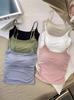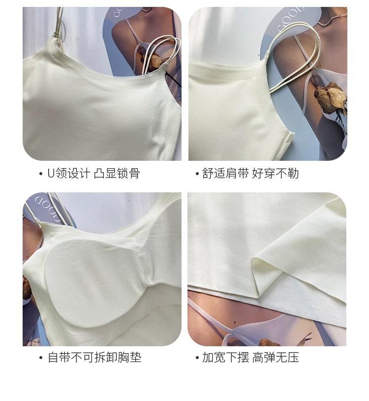 Camisola sin costuras de algodón seda de hielo, Copa fija de una pieza, Sexy push-up con tirantes dobles para los hombros, Top básico para llevar debajo y encima para el verano
