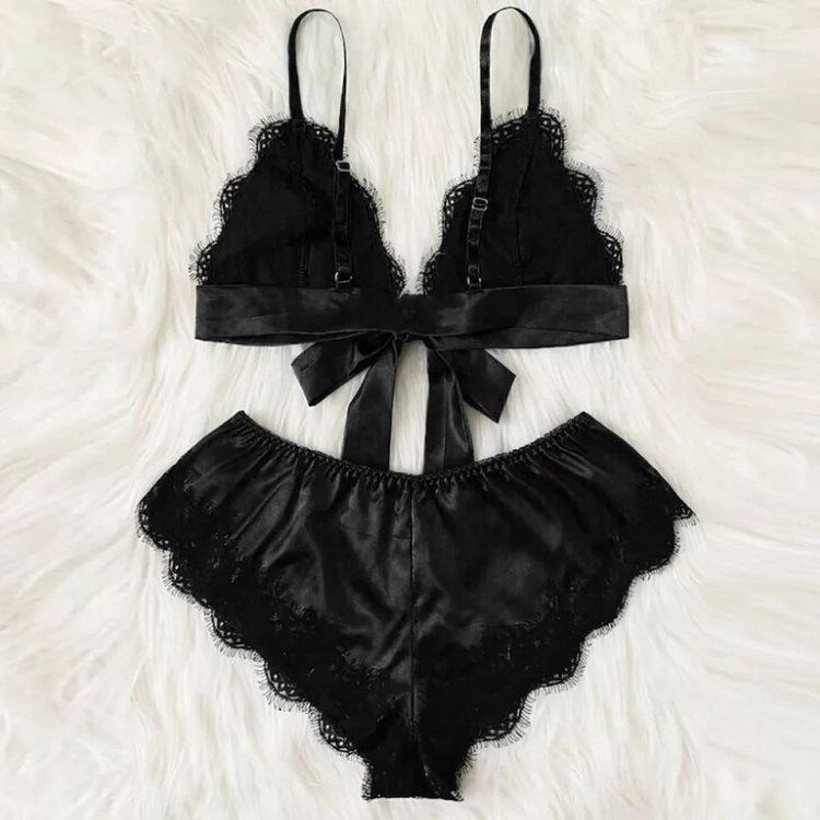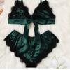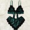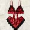 Pijama sexy de perspectiva elástica de comercio exterior europeo y americano transfronterizo para mujer, traje de tres piezas con tirantes y encaje, lencería sexy al por mayor