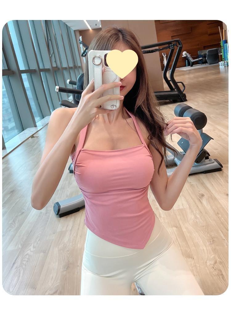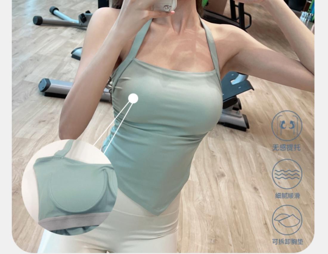 Sujetador deportivo de yoga con almohadilla fija para el pecho y cuello colgante, ropa interior deportiva, espalda hermosa, sexy, a prueba de golpes, ropa exterior de una pieza para fitness.