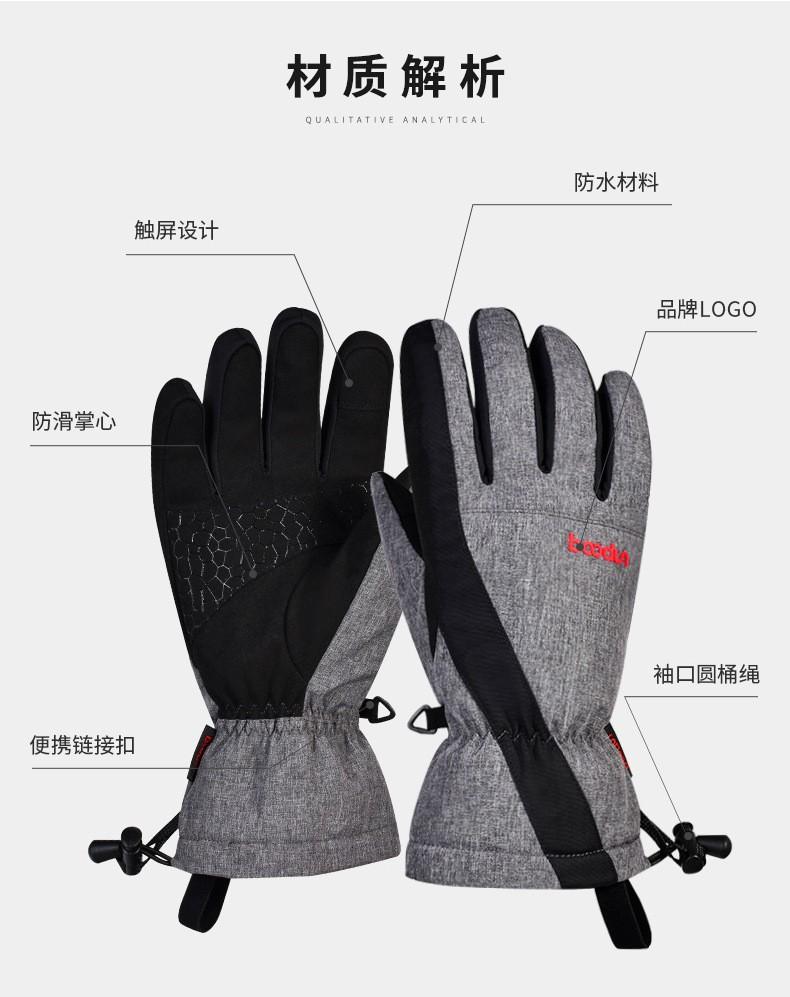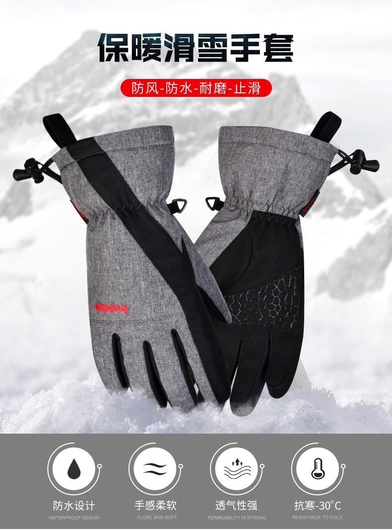 Guantes de esquí de invierno transfronterizos, cálidos y acolchados, guantes de cinco dedos, a prueba de frío, a prueba de heladas, transpirables, cómodos, guantes bloqueados por color