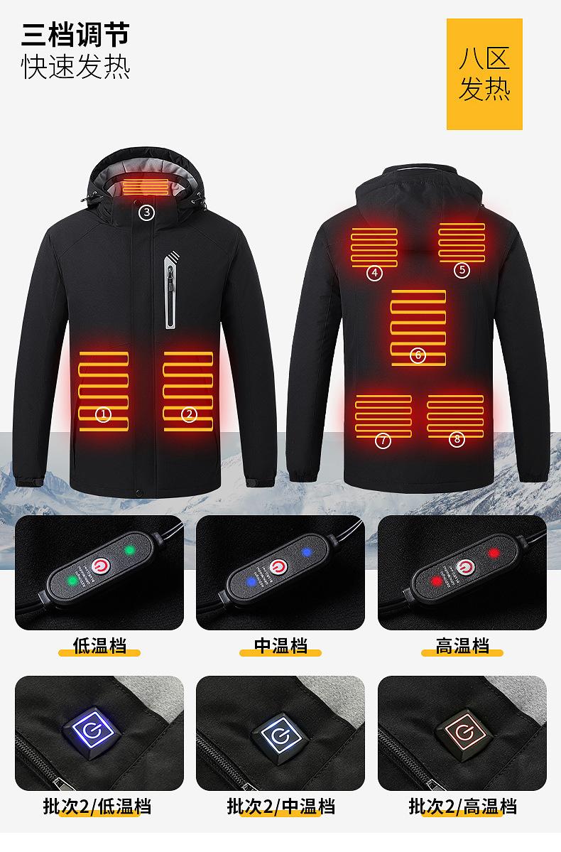 Chaqueta Calefactable de Ocho Zonas para Hombre y Mujer, Ropa Funcional para Exteriores, Cálida Chaqueta Calefactable USB con Forro Polar, Estilo Impermeable para Pareja