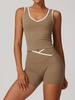 Shuangshi - Ropa de yoga sin costuras para primavera y verano, para mujer, color piel, corte ajustado, para correr, fitness, cuello redondo, alta elasticidad, mangas cortas