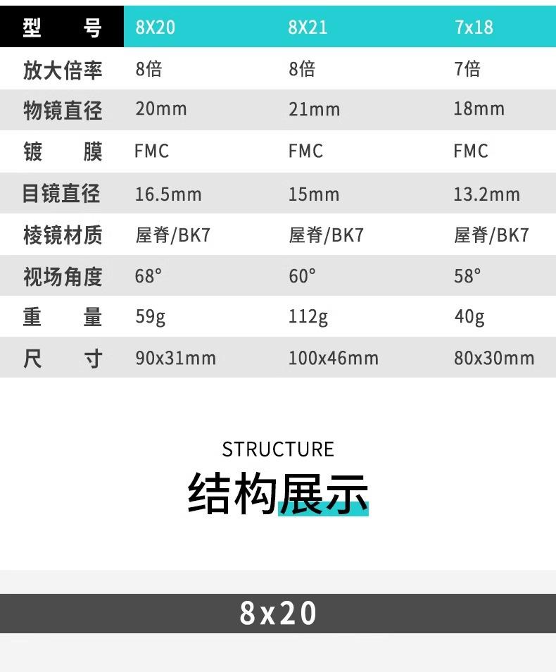 Tactical black 8x20 [cover the screen when taking photos with mobile phones], Tactical black 7x18, Tactical black 8x21