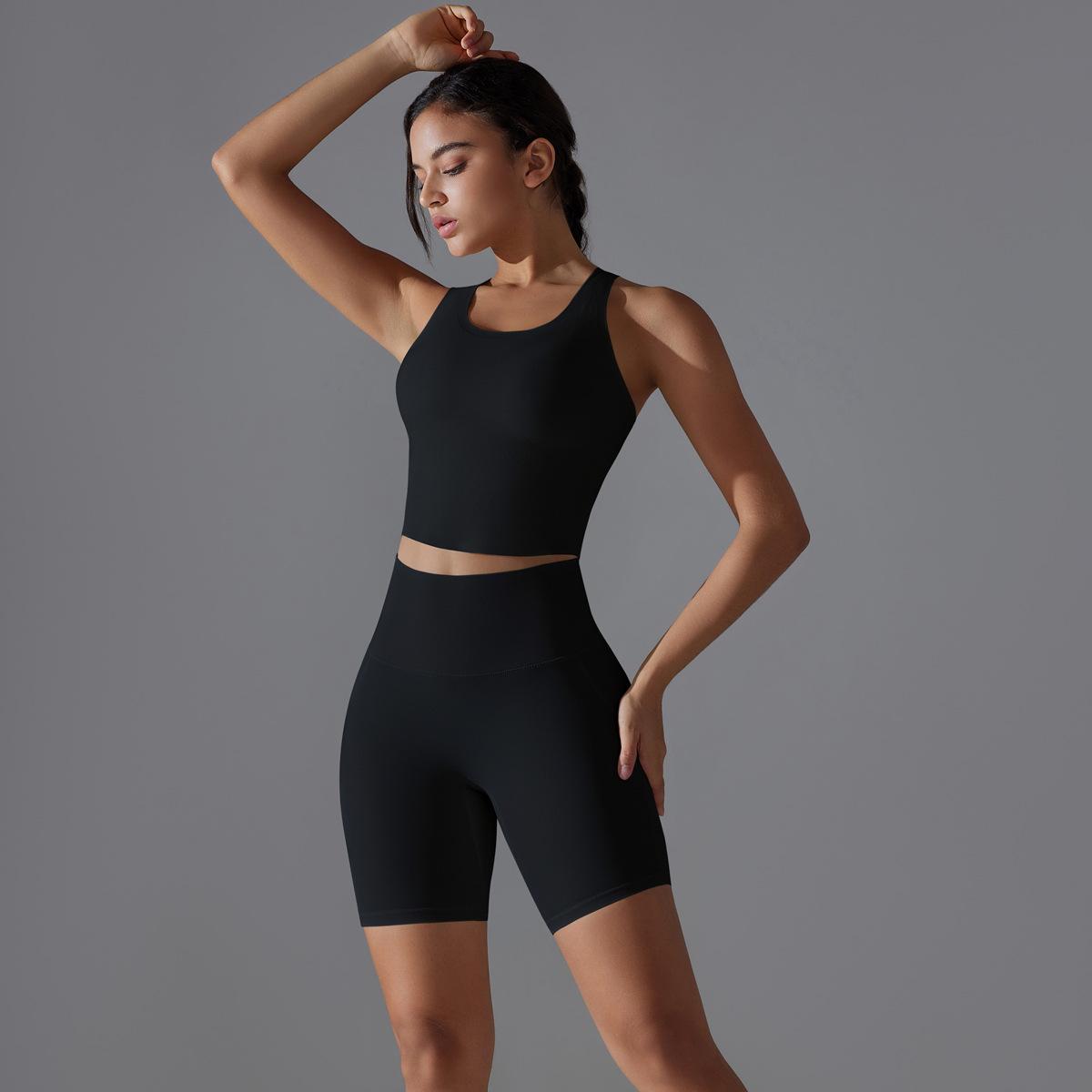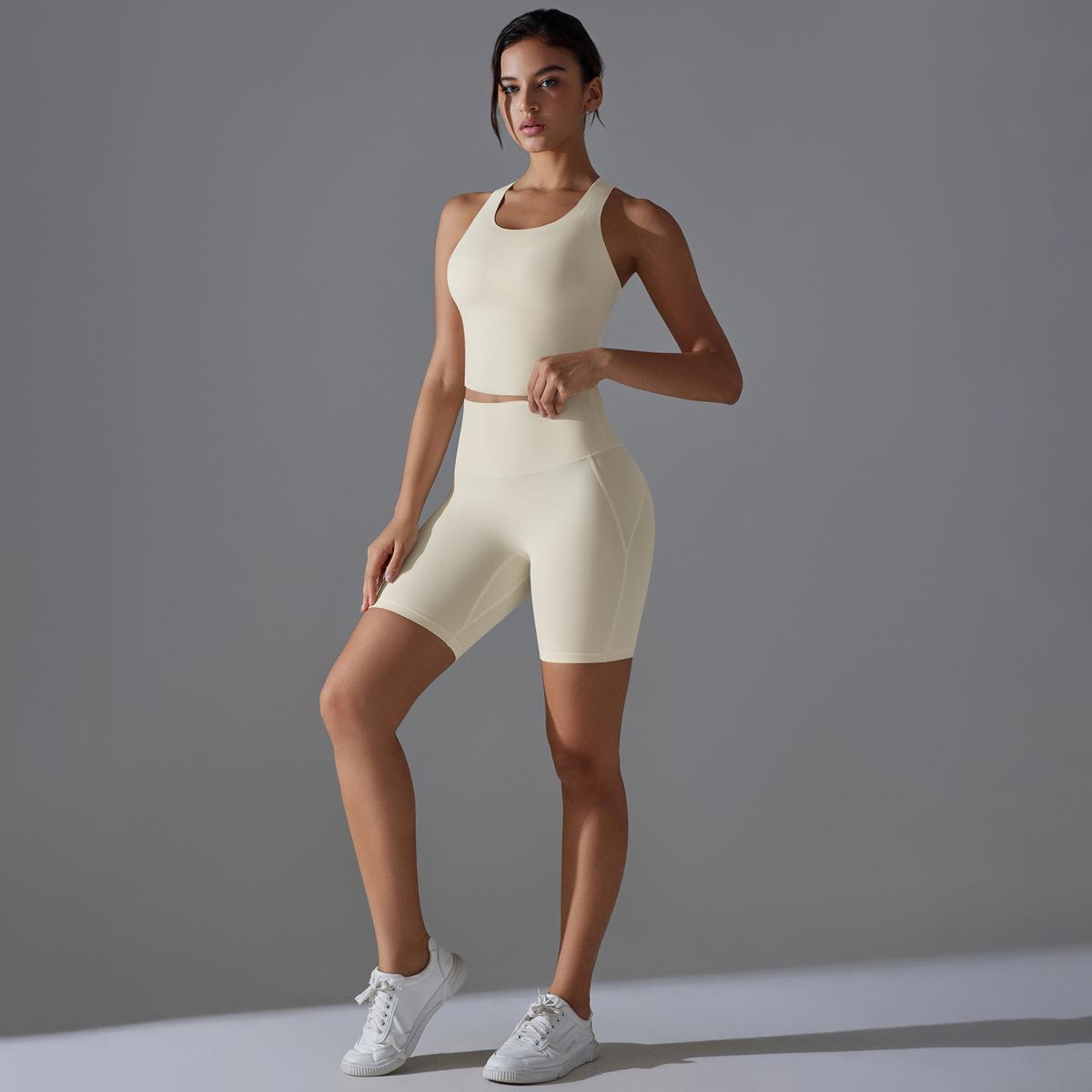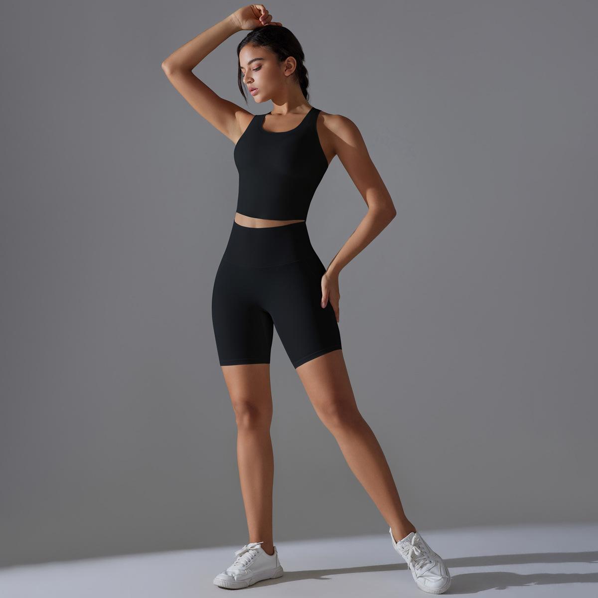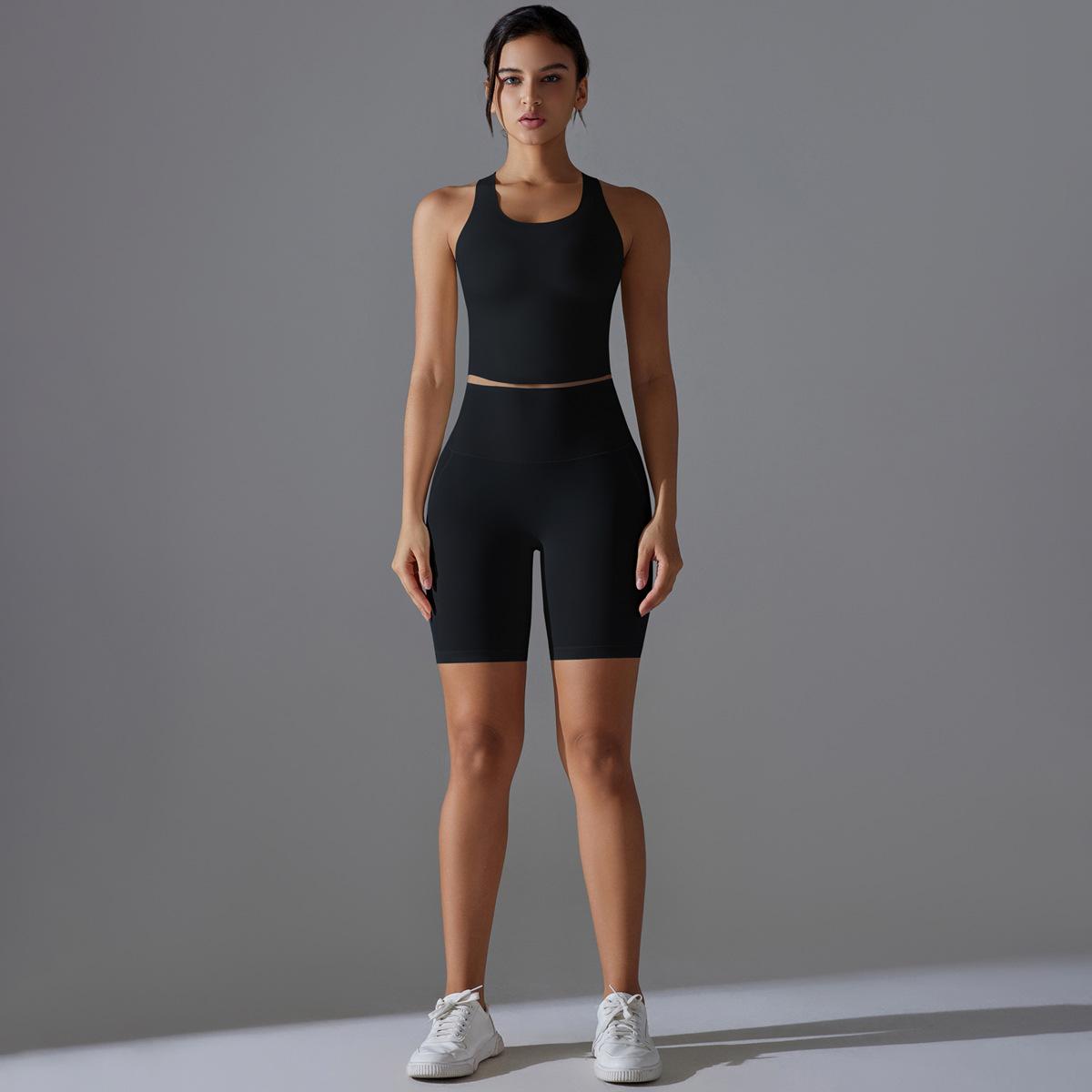 Ropa de yoga ajustada y desnuda de estilo europeo y americano, chaleco deportivo sin marcas, traje deportivo de cintura alta que levanta la cadera, conjunto de dos piezas para correr y fitness.