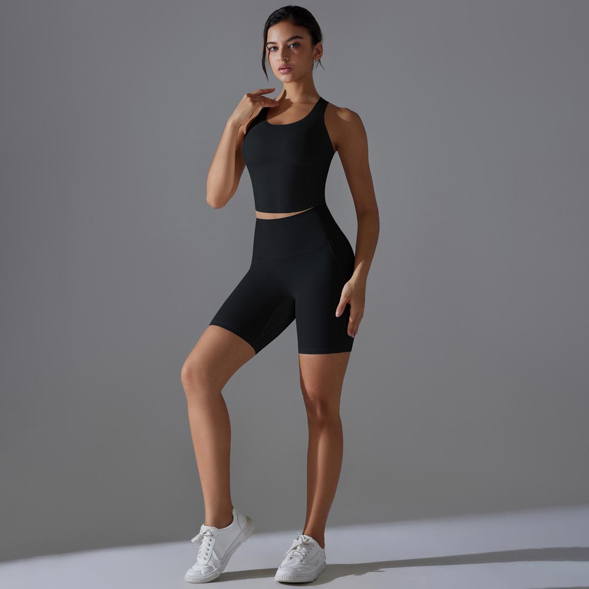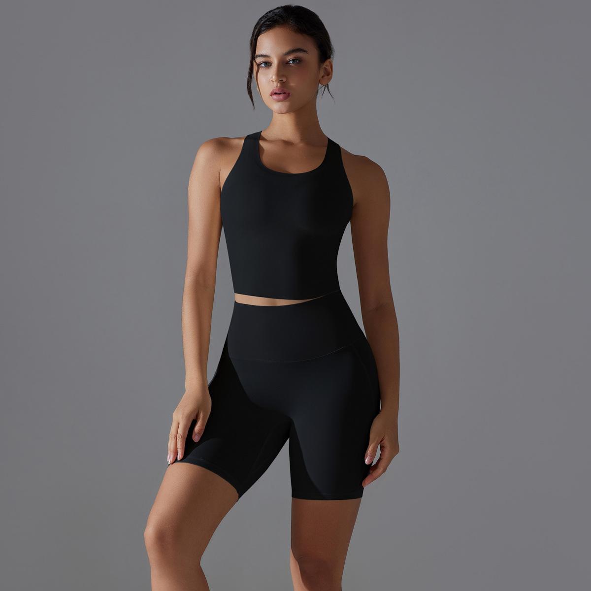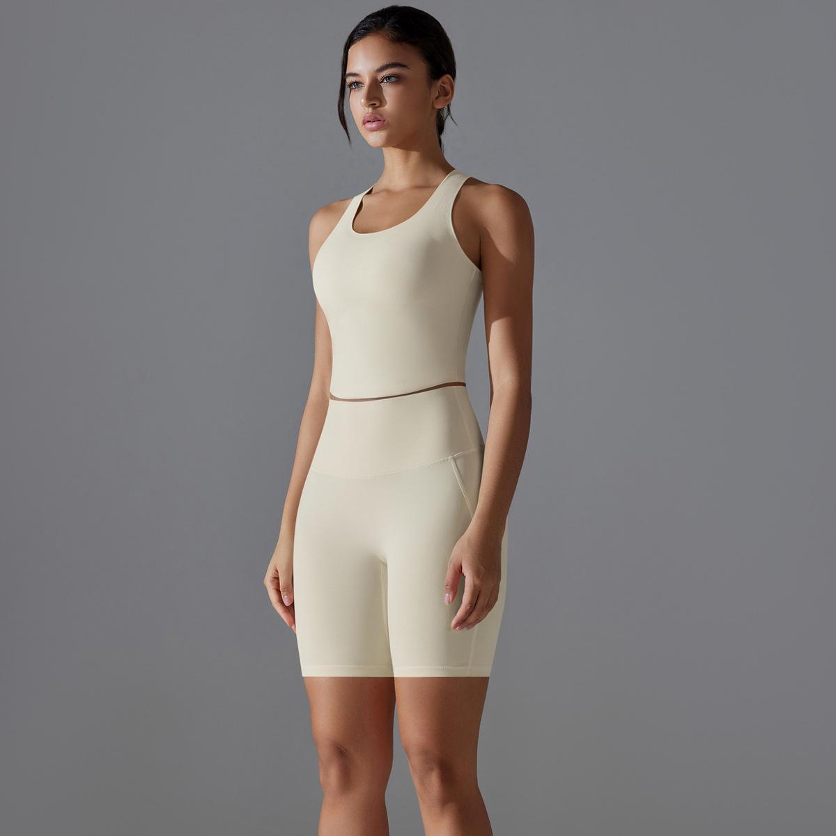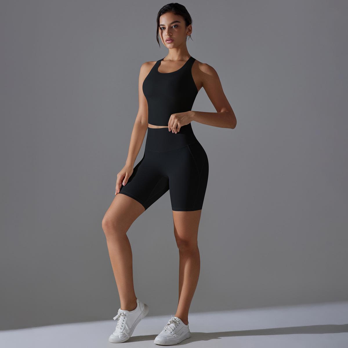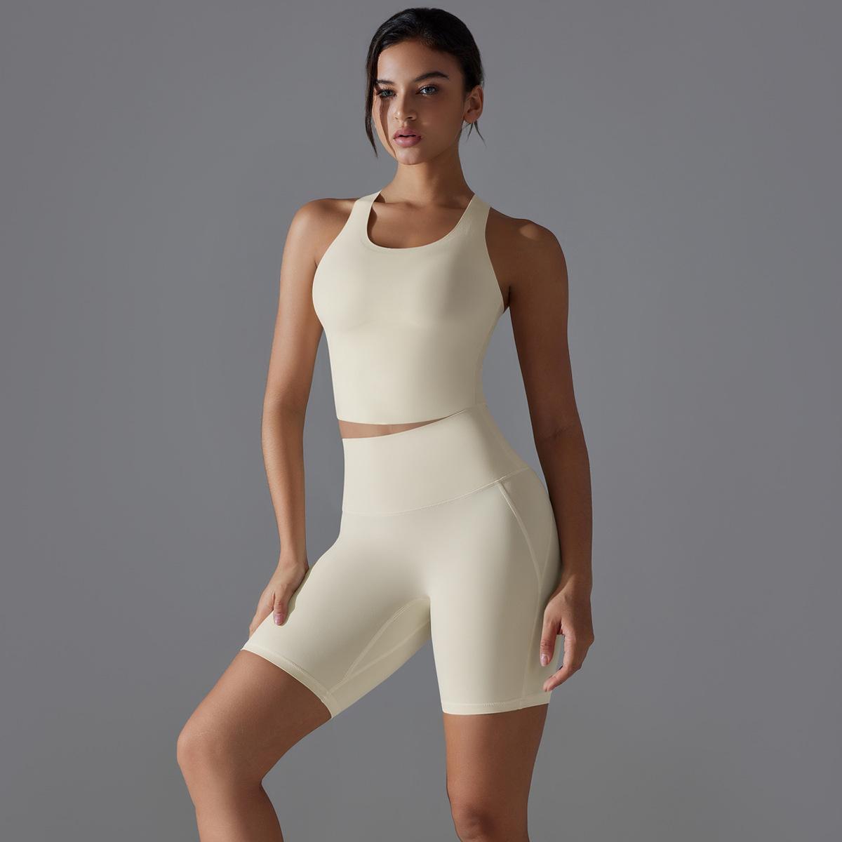 Ropa de yoga ajustada y desnuda de estilo europeo y americano, chaleco deportivo sin marcas, traje deportivo de cintura alta que levanta la cadera, conjunto de dos piezas para correr y fitness.