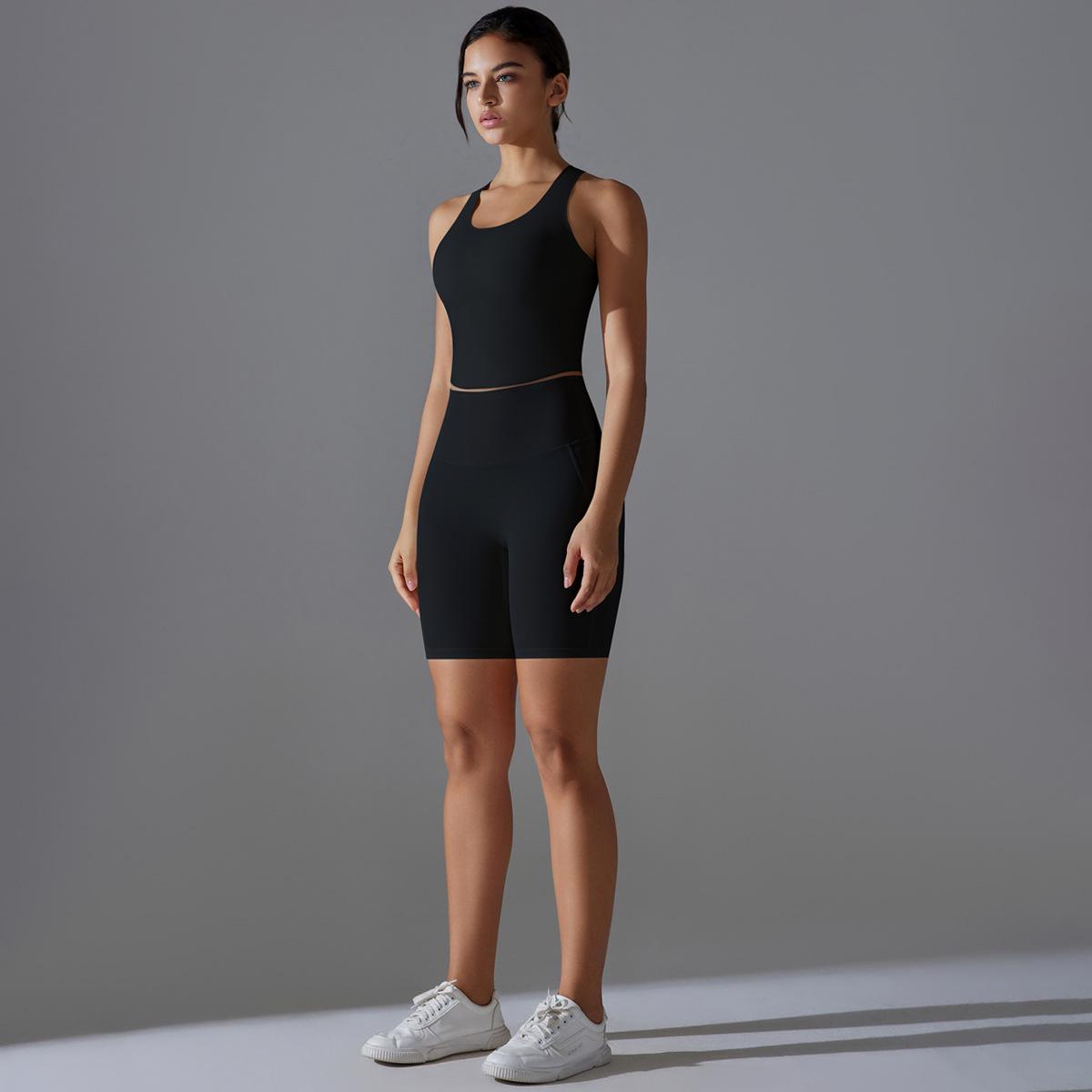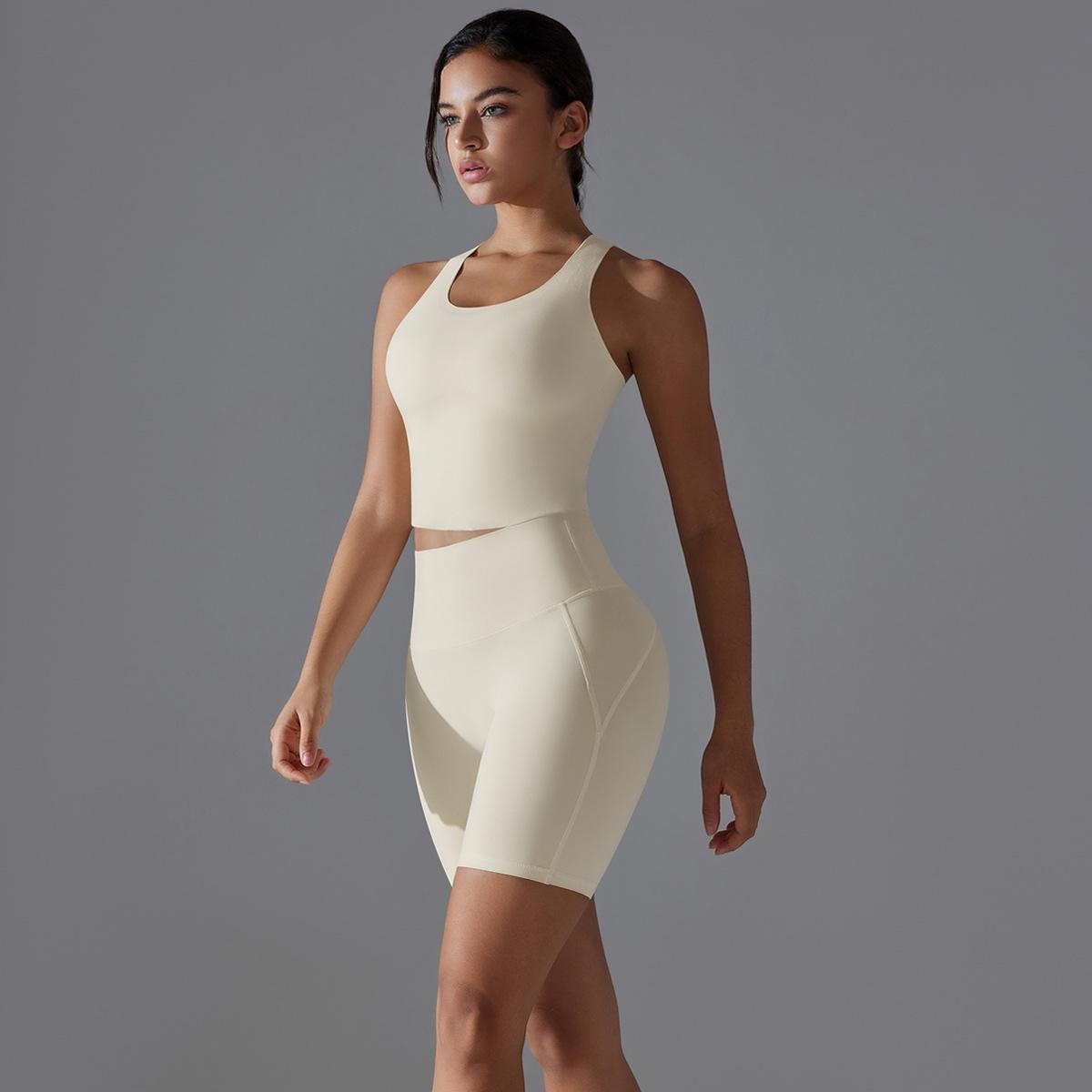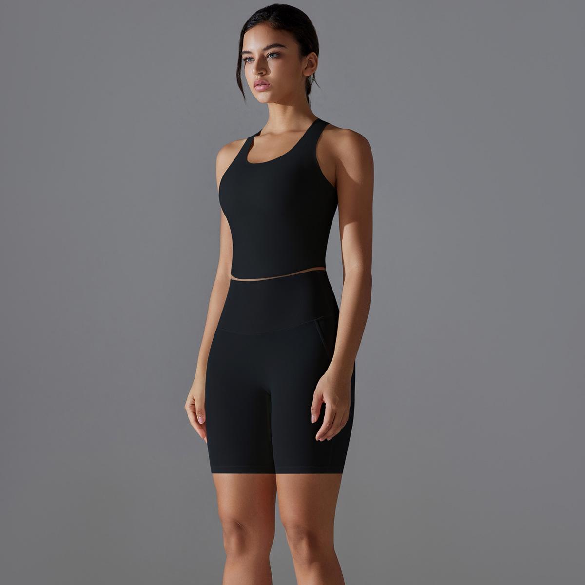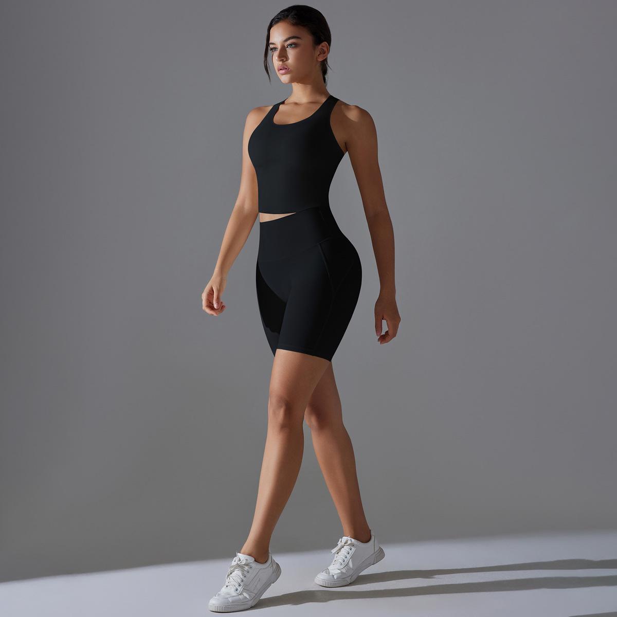 Ropa de yoga ajustada y desnuda de estilo europeo y americano, chaleco deportivo sin marcas, traje deportivo de cintura alta que levanta la cadera, conjunto de dos piezas para correr y fitness.