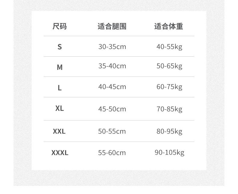 S(40-55KG), M(50-65KG), L(60-75KG), XL(70-85KG), XXL(80-95KG), XXXL(90-105KG)