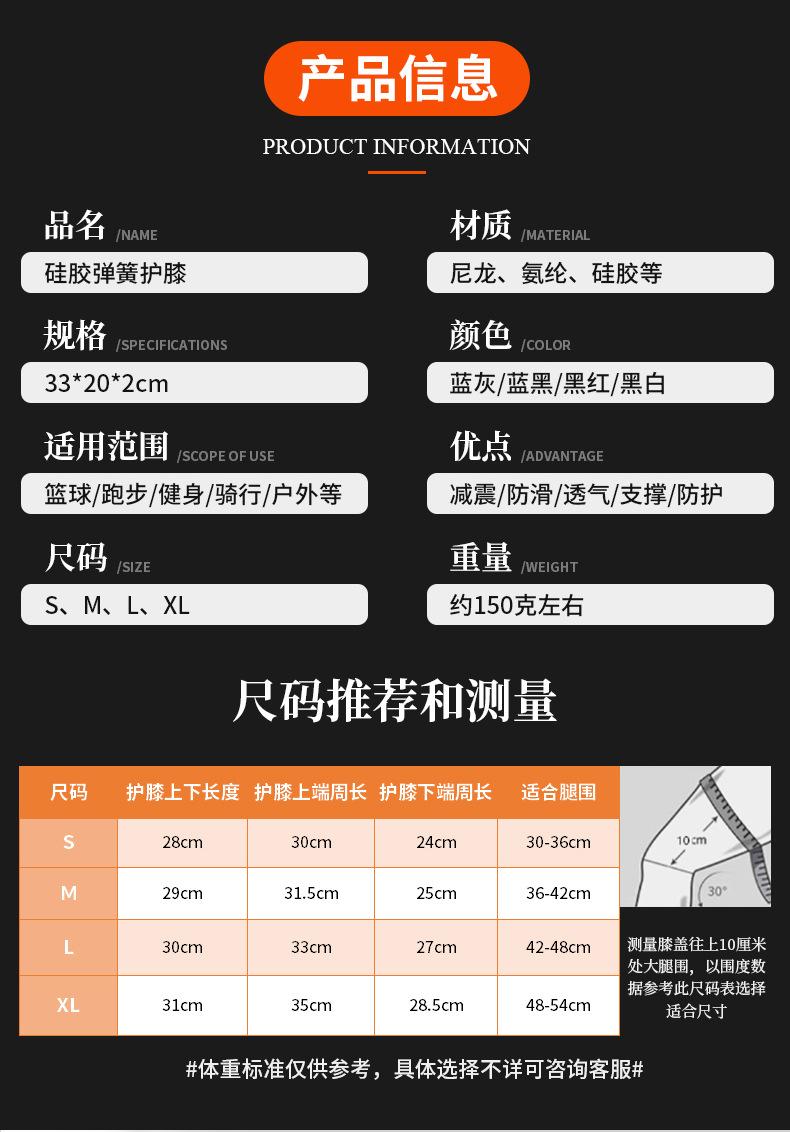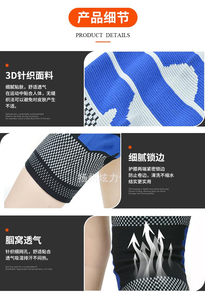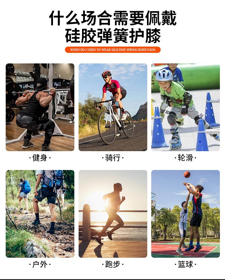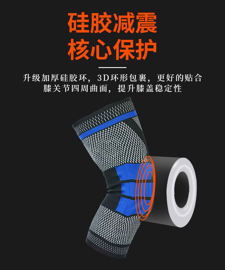 Este producto utiliza almohadillas de EVA para proteger eficazmente las rodillas, tiras de soporte de resorte doble para mejorar mejor la estabilidad, dispersar la presión para proteger mejor las articulaciones de las rodillas y el diseño de tiras antideslizantes de silicona evita que se resbale durante el ejercicio extenuante.
