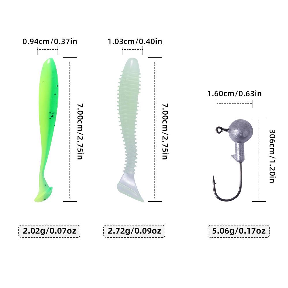 61 pieces in box (cut tails), 33 pieces in box (lead head hook)