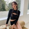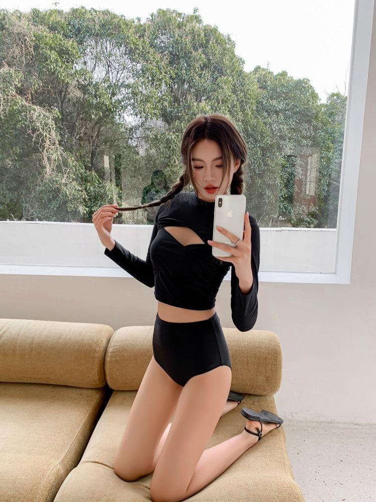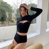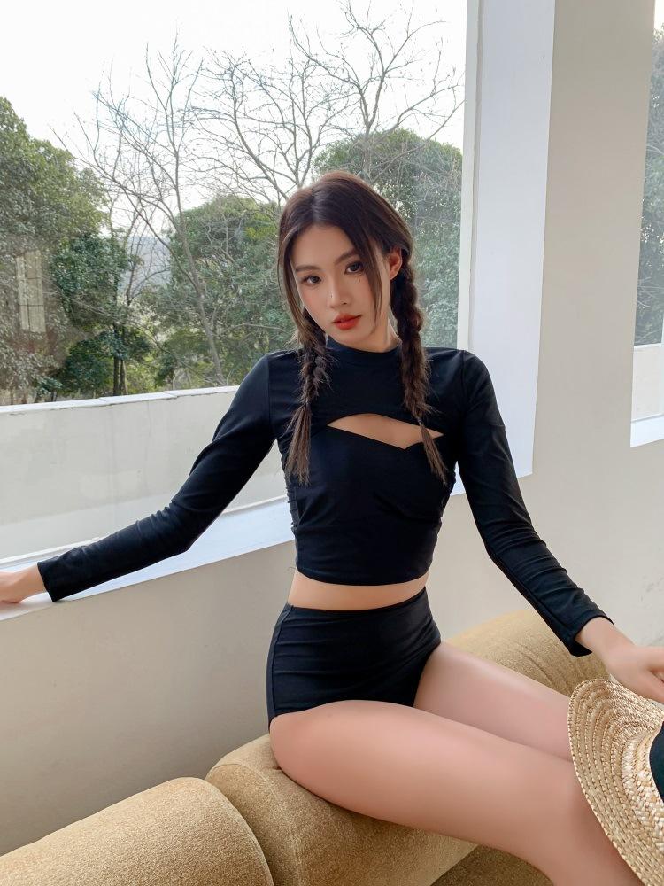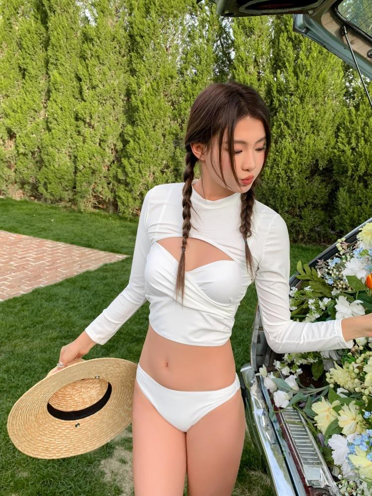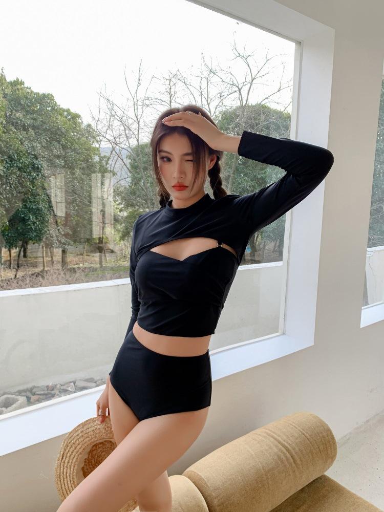 Directo de Fábrica Nuevo Bikini de Color Sólido Sexy Tirantes Dobles Ajustado Push-up Manga Larga Traje de Baño Dividido Set de Tres Piezas para Mujer