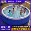 Blue and white inflatable swimming pool