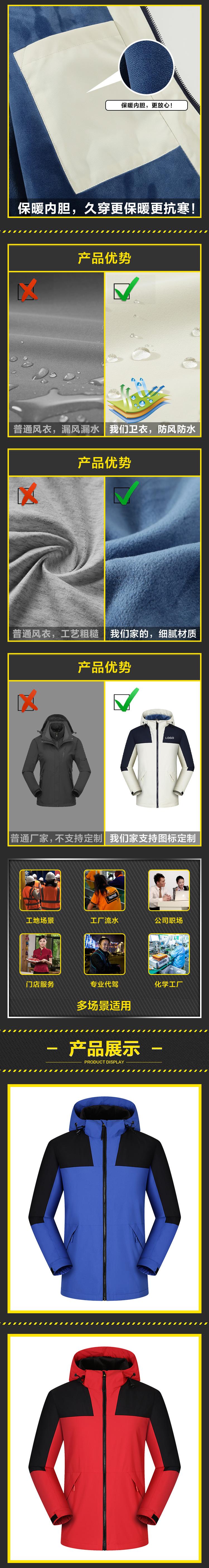 Chaqueta de trabajo gruesa con forro polar integrado, impermeable, con logotipo personalizado impreso, resistente al viento y con bordado para montañismo.