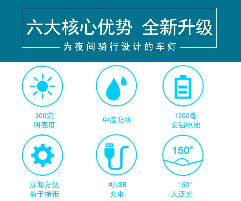 Luz de advertencia para bicicleta T6, carga USB, resistente al agua, luz de advertencia para conducción nocturna, equipo de ciclismo, luz delantera para bicicleta