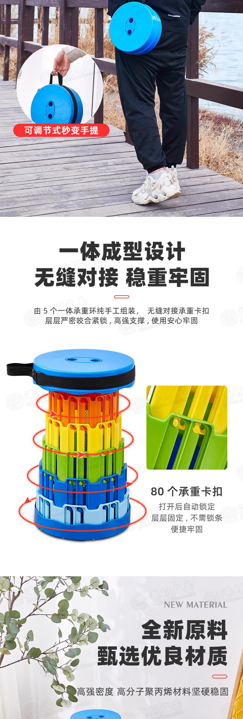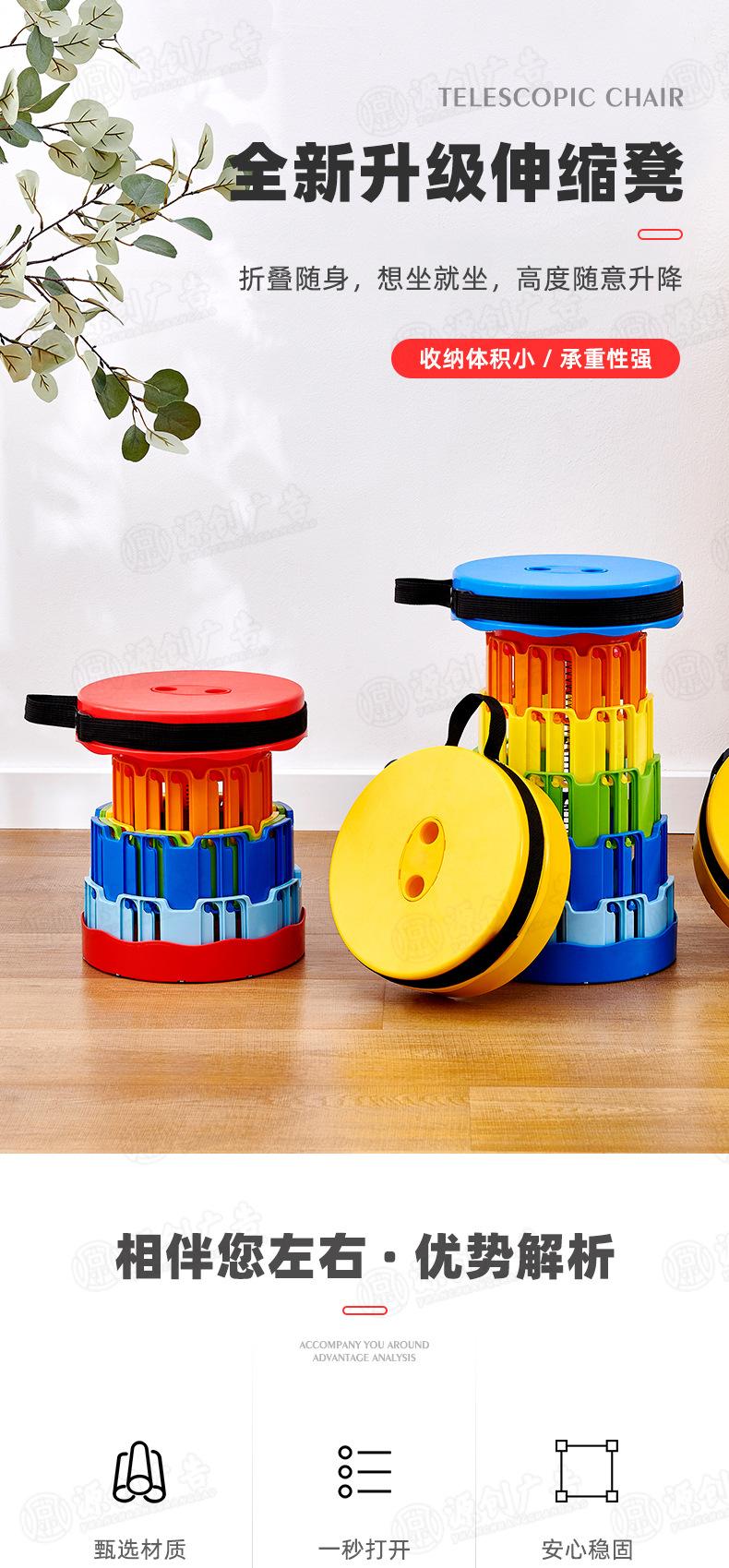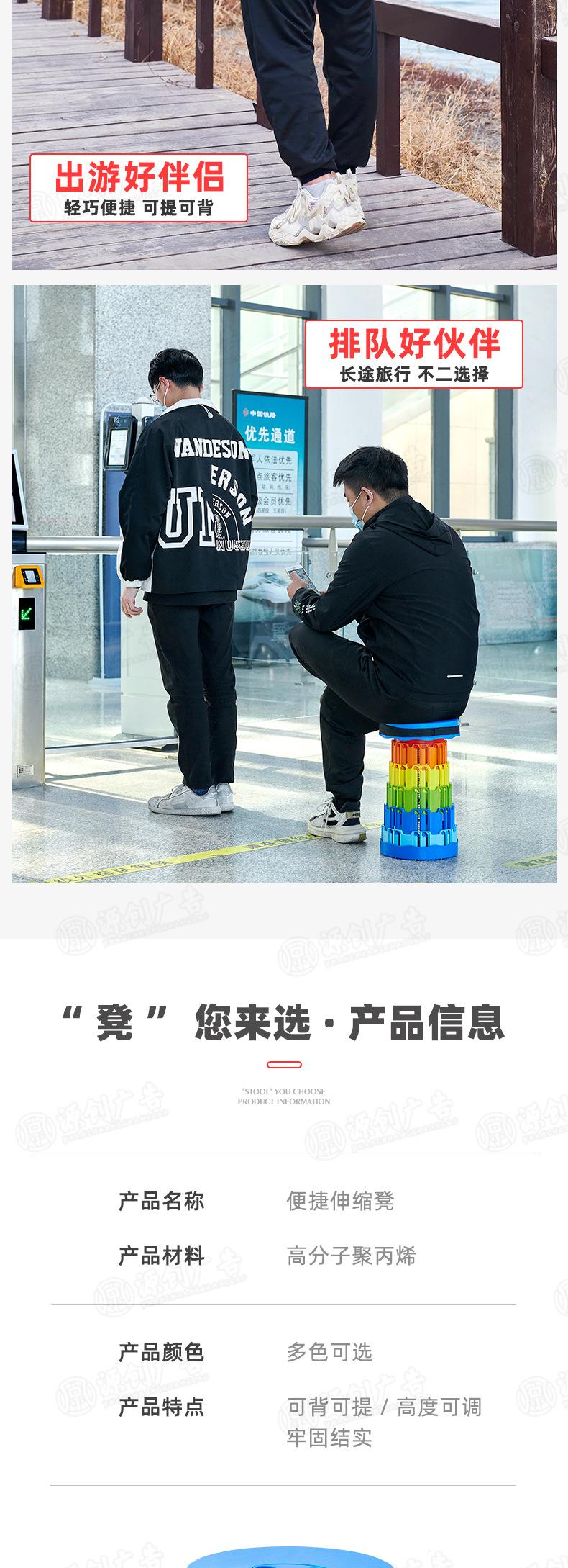 Taburete Portátil para Exterior, Taburete Telescópico Arcoíris Simple de Doble Carga, Taburete Ajustable para Viajes, Picnic, Pesca, Silla Plegable