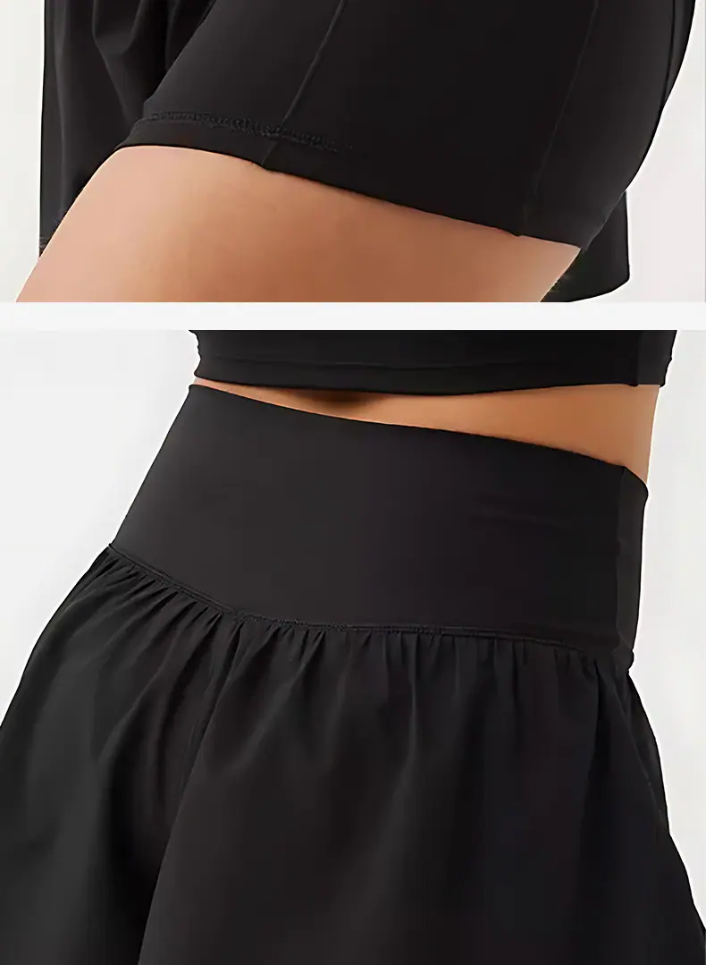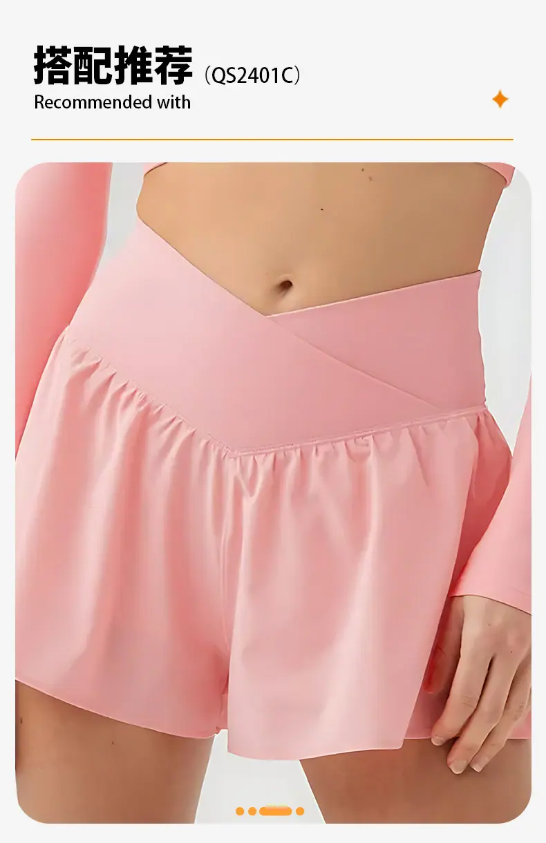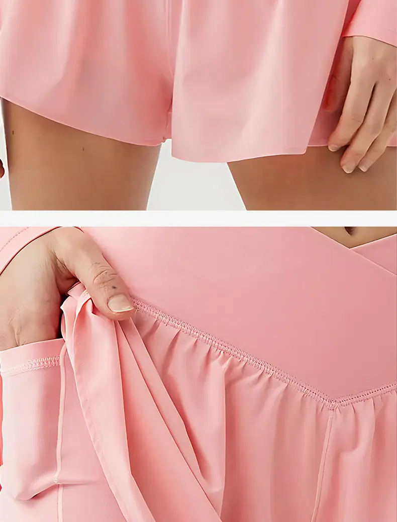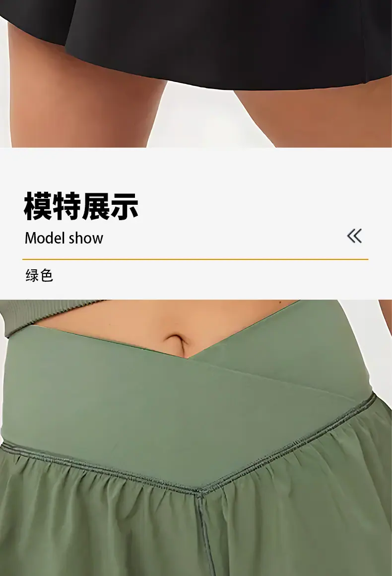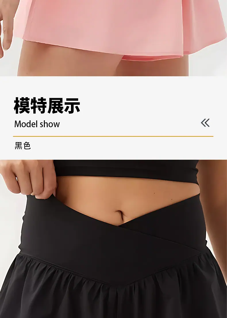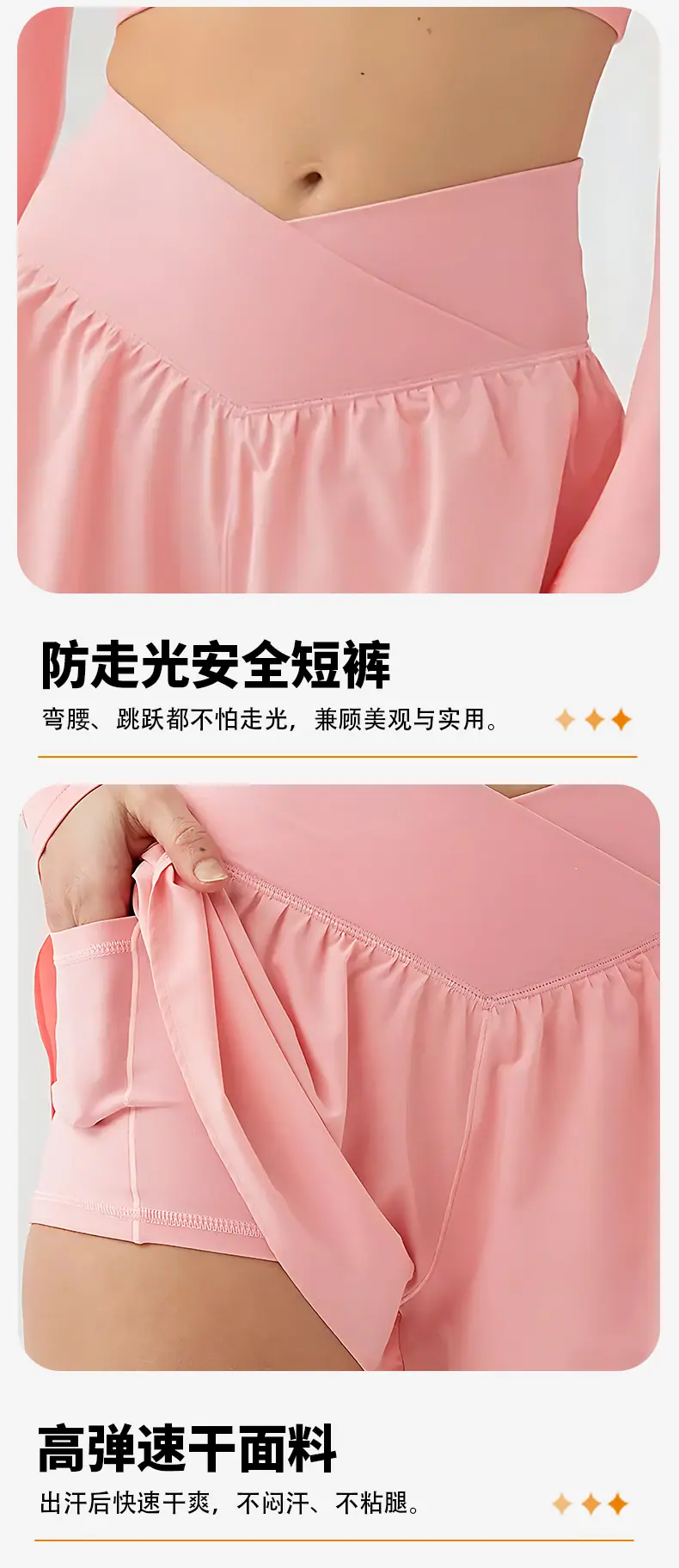 Falda deportiva de yoga con bolsillo y diseño de cintura cruzada para mujer, holgada, transpirable, para correr, antiluz y fitness.
