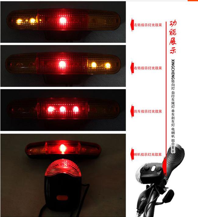 Luz trasera de bicicleta, faro multifunción para bicicleta de montaña, intermitente, bocina eléctrica, luz de freno, equipo de conducción