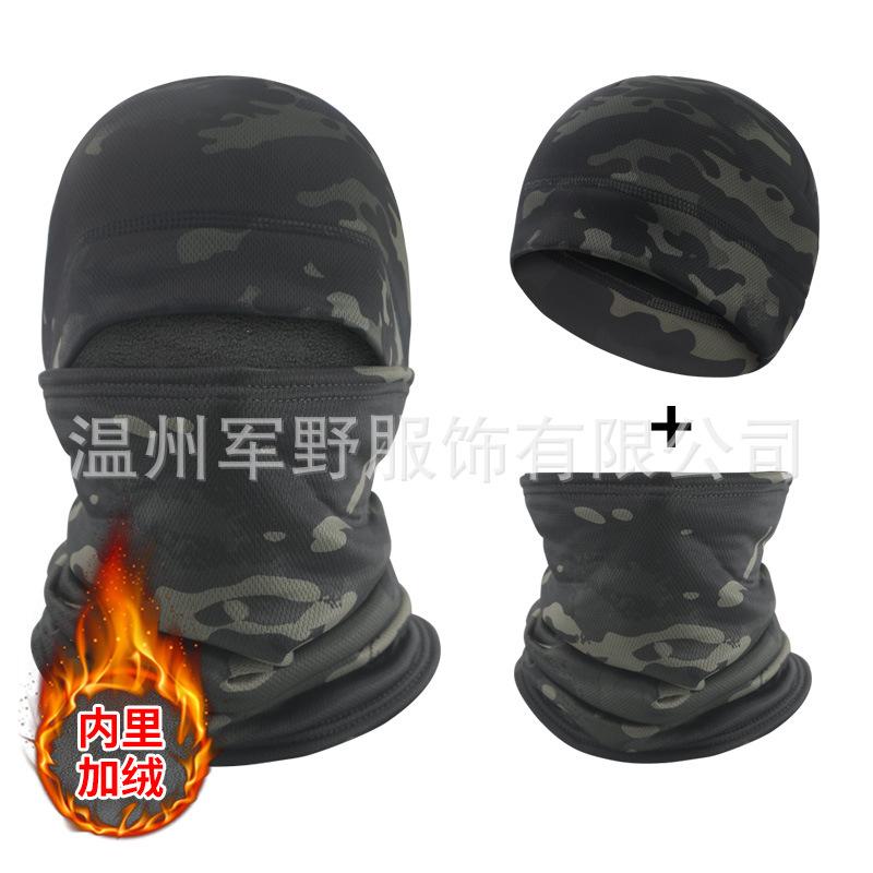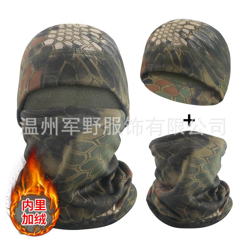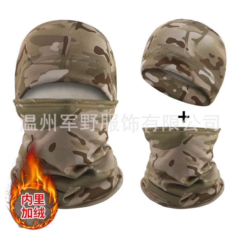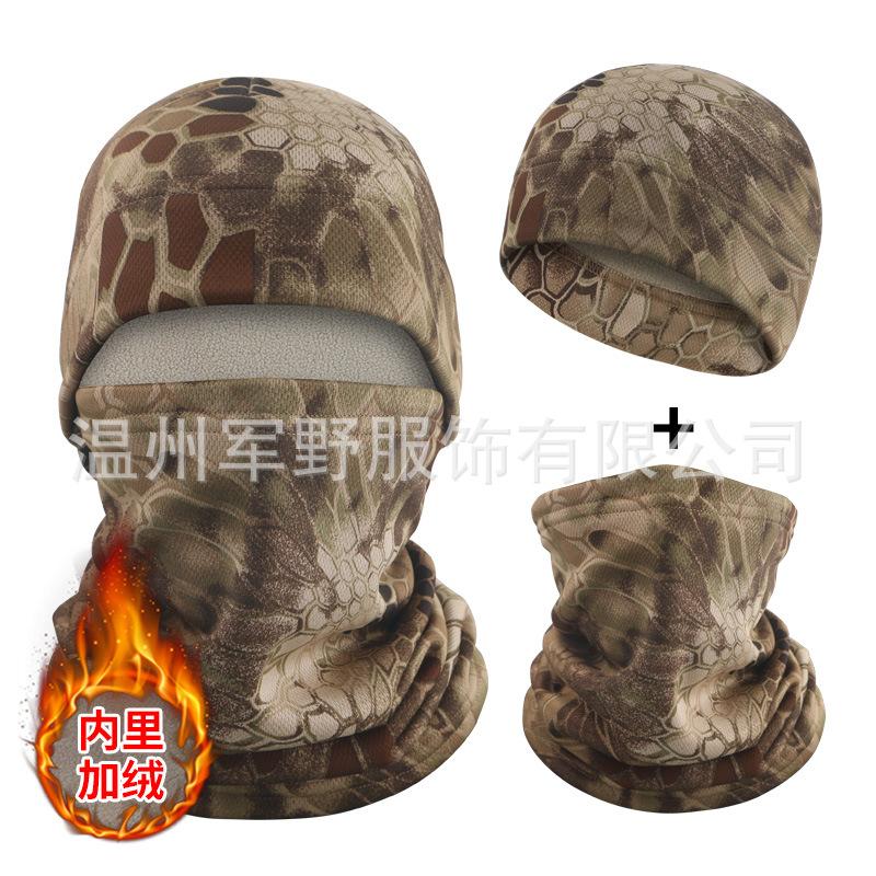 Gorro de camuflaje con terciopelo, bufanda a prueba de frío, gorro de invierno cálido y grueso con protección para los oídos, casco táctico para exteriores, máscara para montar a caballo transfronteriza