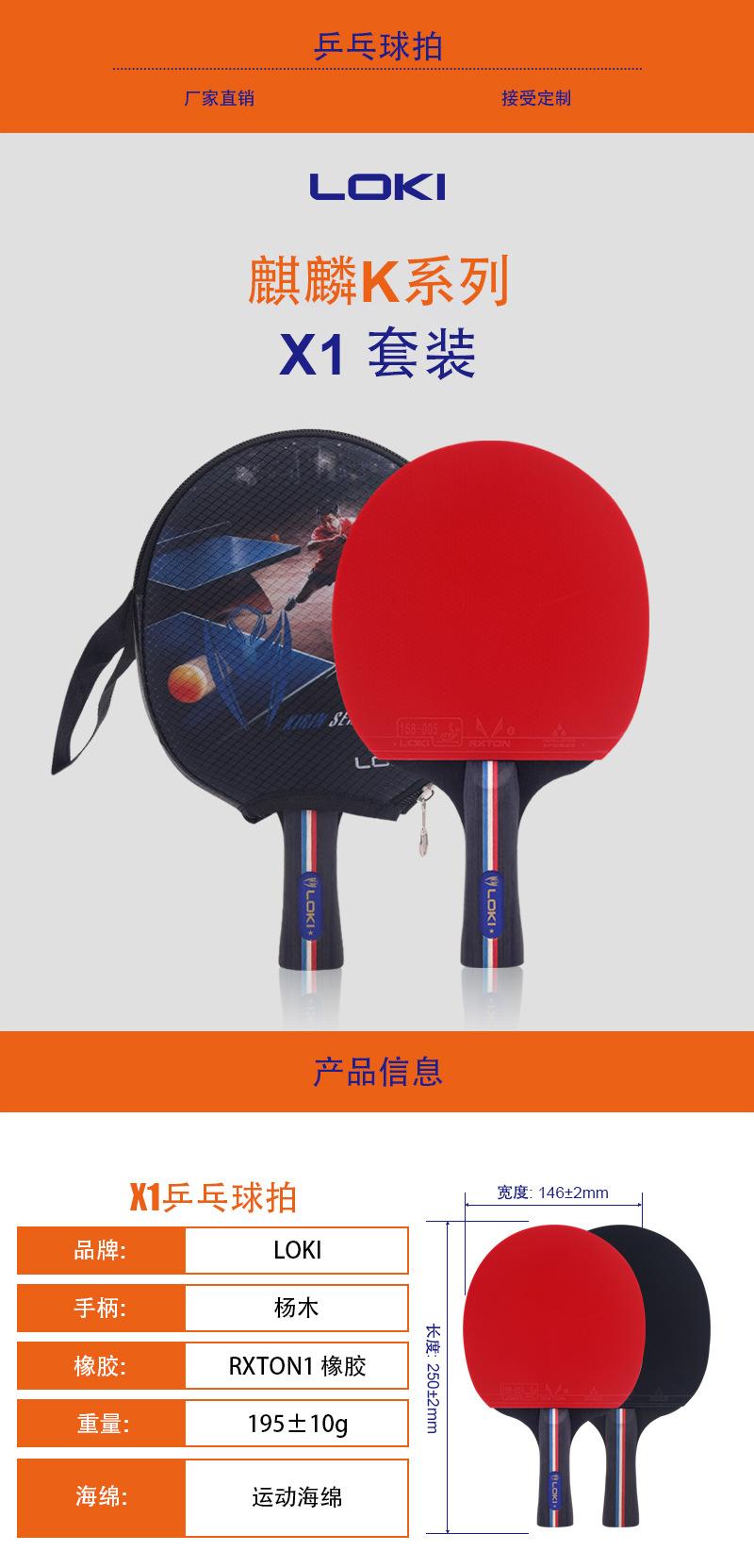 Raquetas de tenis de mesa Loki Raytheon para estudiantes, principiantes, entrenamiento horizontal, rectas, paquete individual, personalizadas, venta al por mayor, terminadas, X-1