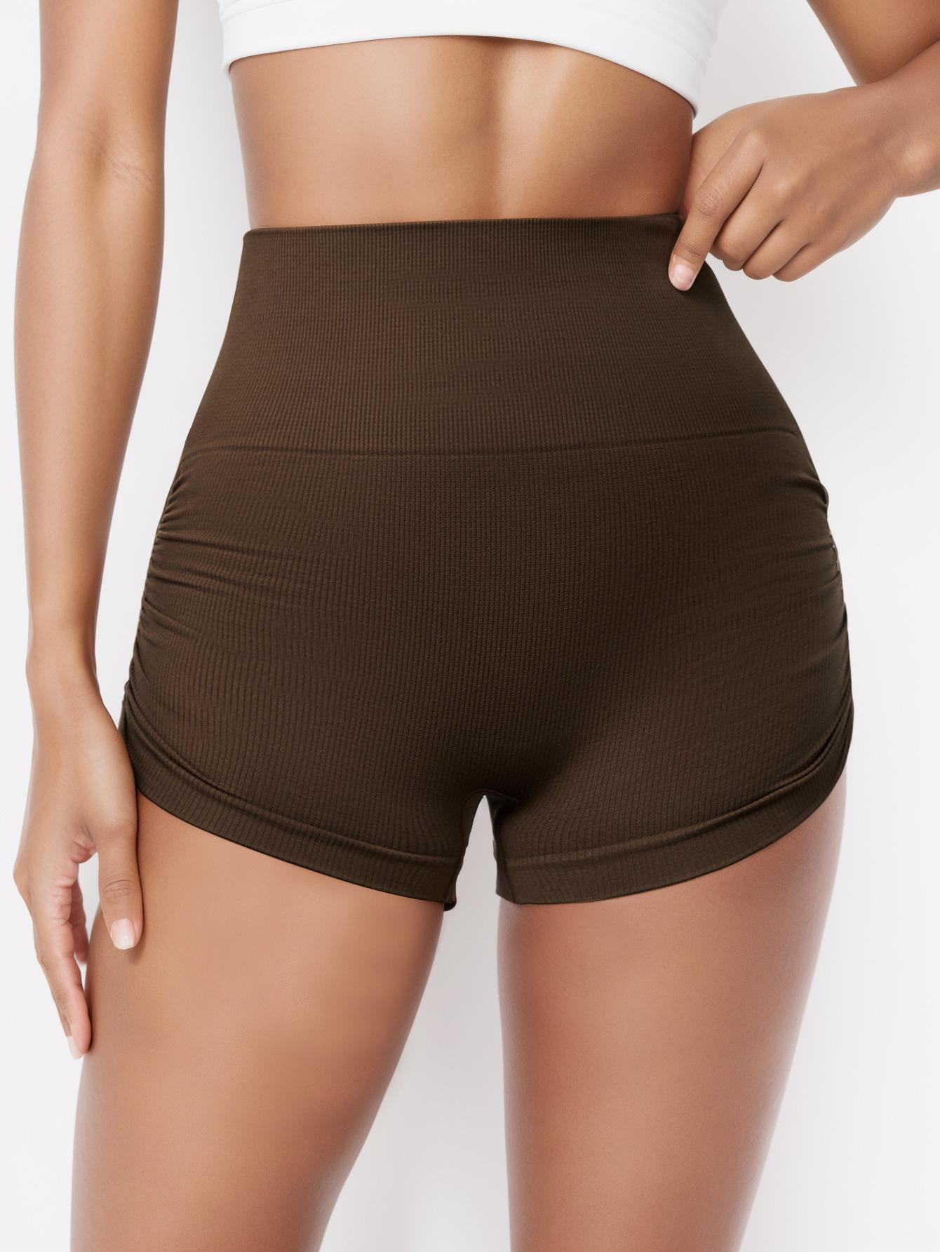 Shorts Sexy de Cintura Alta Levanta Glúteos con Pliegues Sin Líneas Embarazosas Hilo Ajustado Elástico Transpirable Ropa de Yoga Fitness Pantalones Tres Cuartos