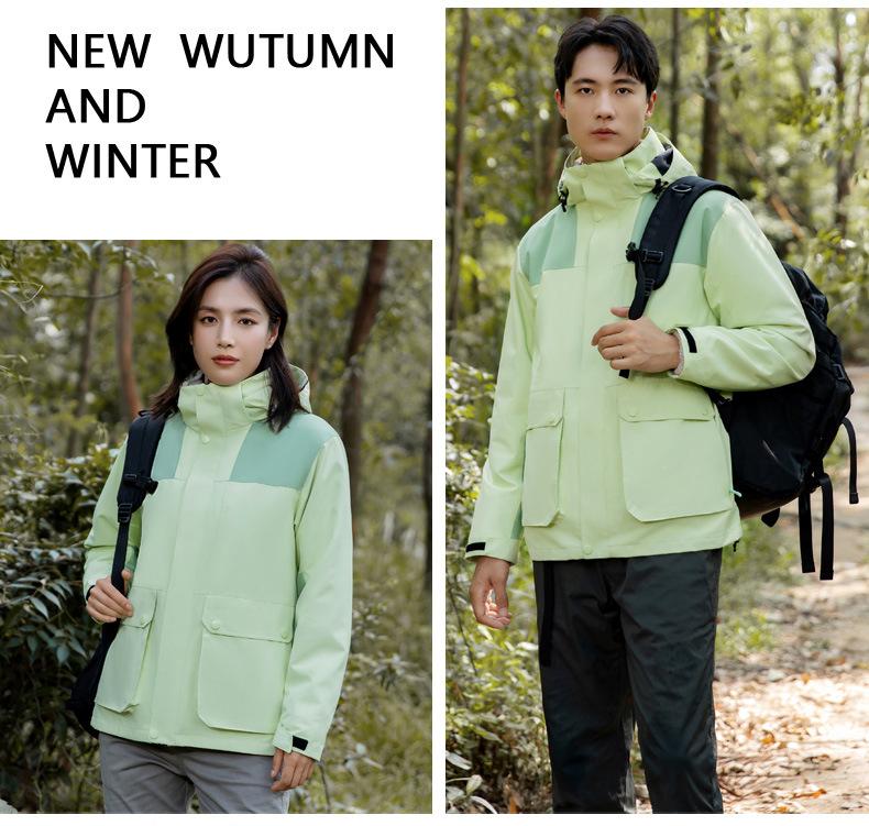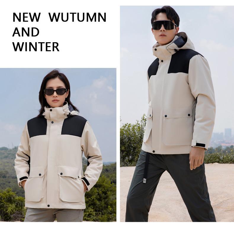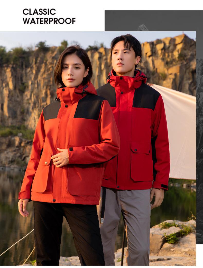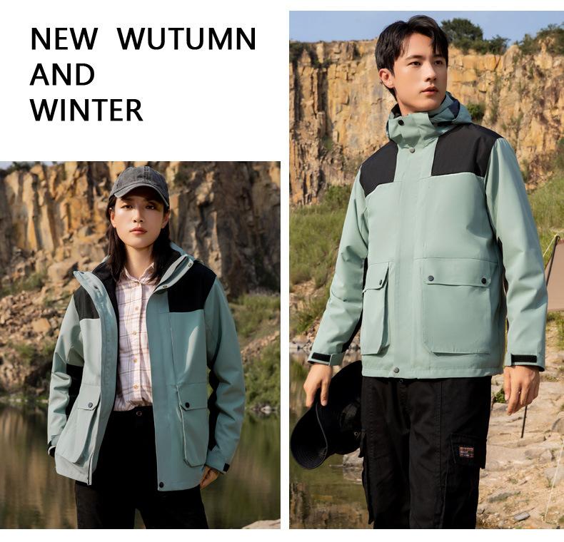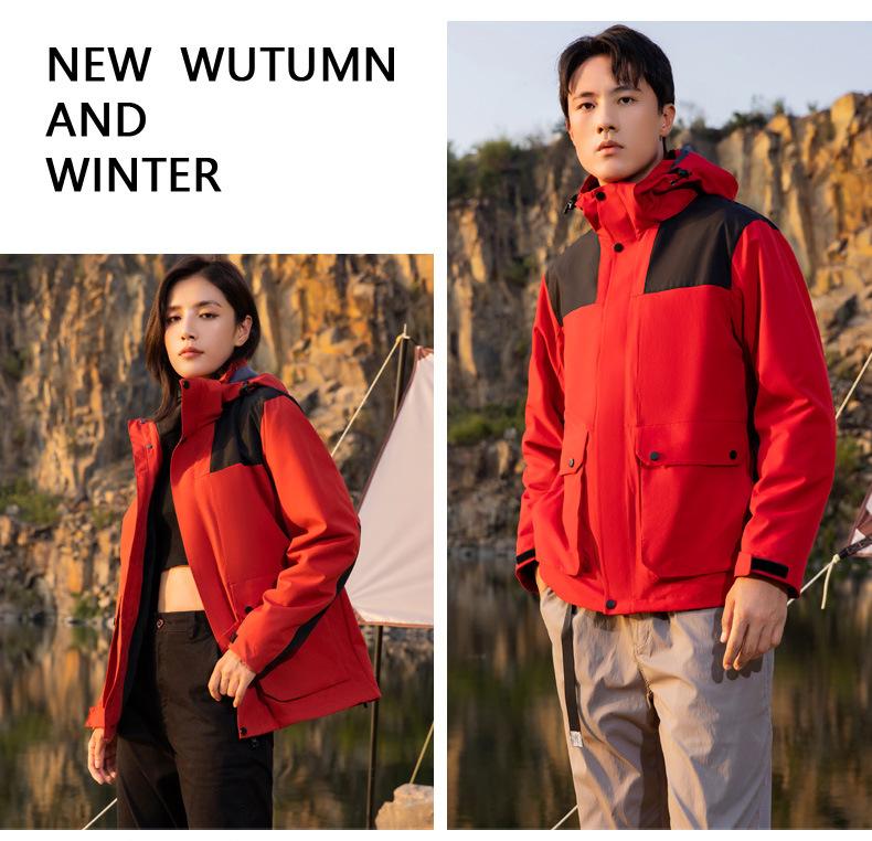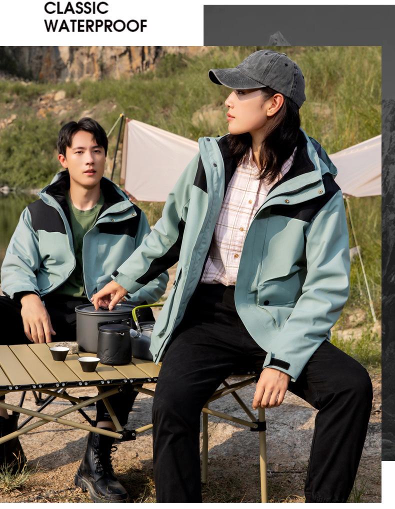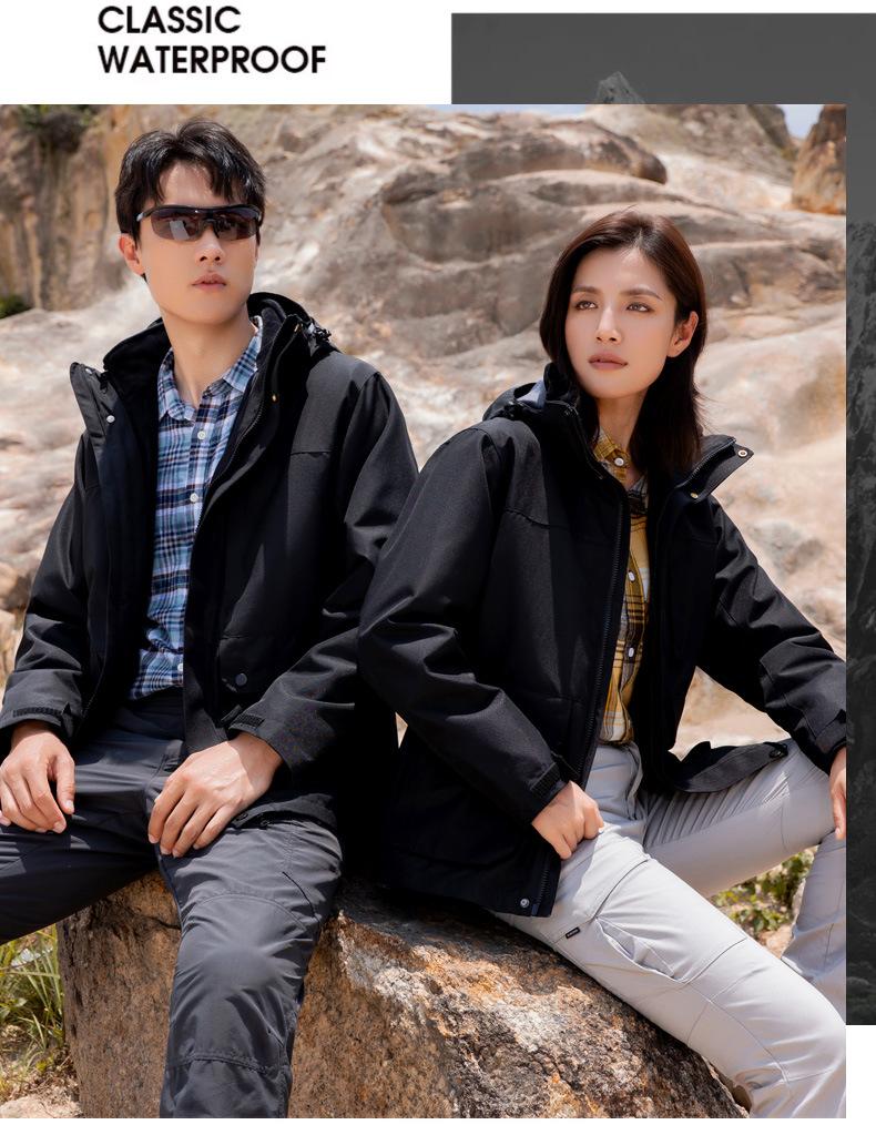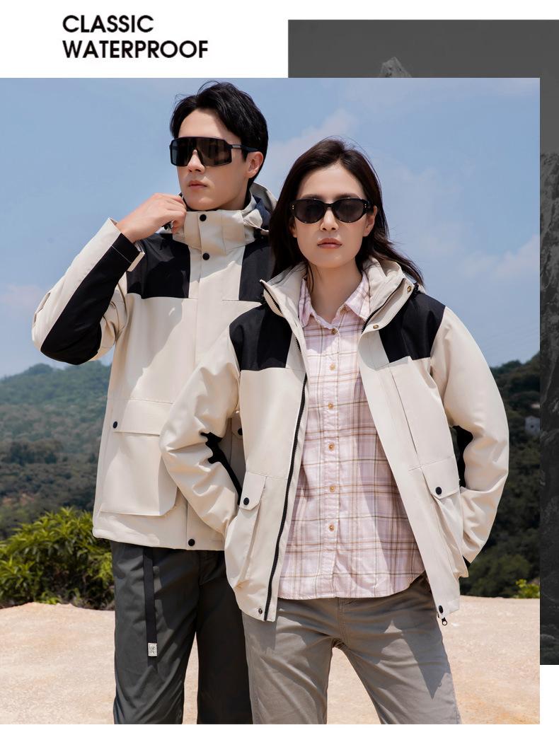 [Tienda de fábrica de origen] Chaqueta para exteriores tres en uno, resistente al viento, impermeable, con forro polar, chaqueta gruesa, traje de montañismo en stock