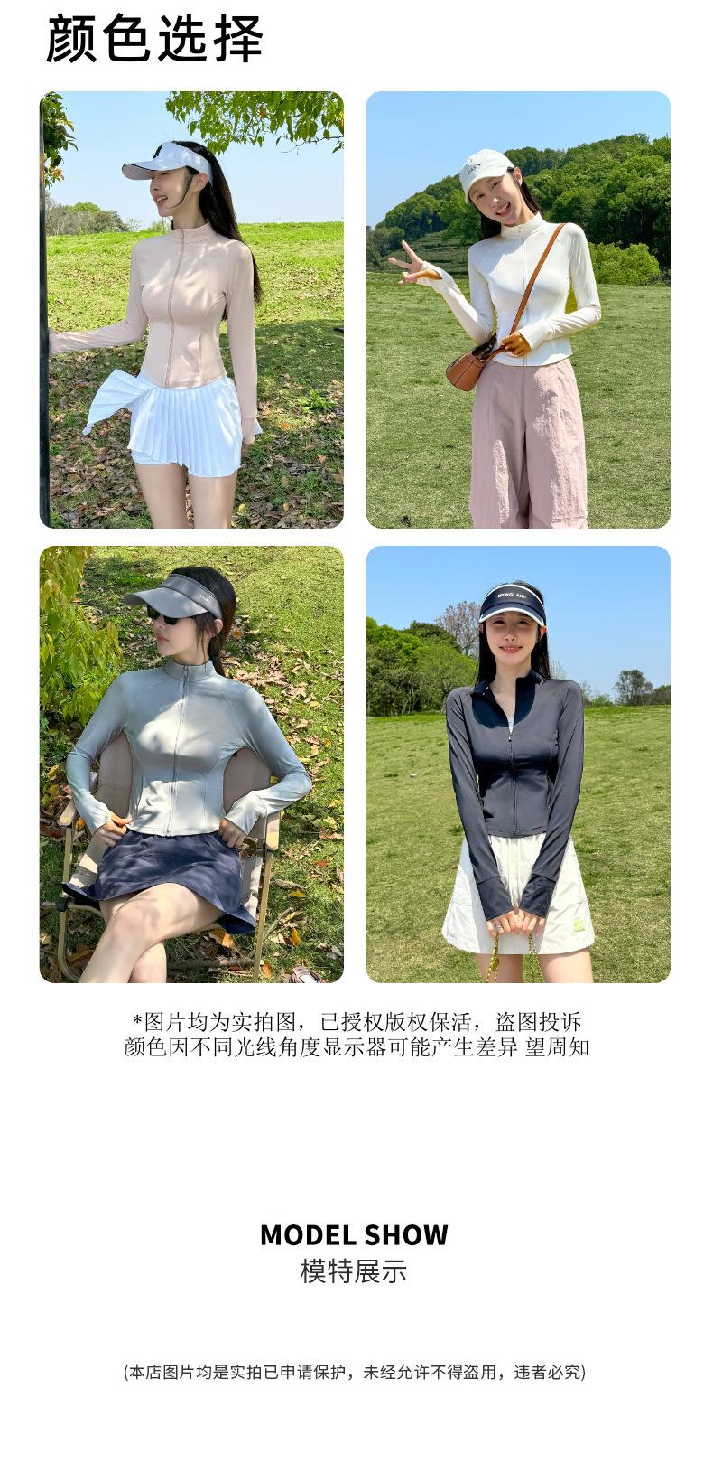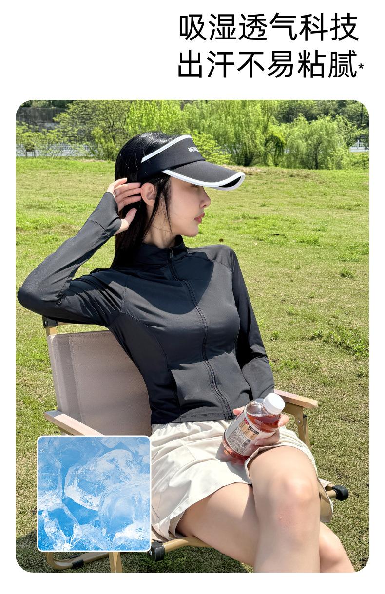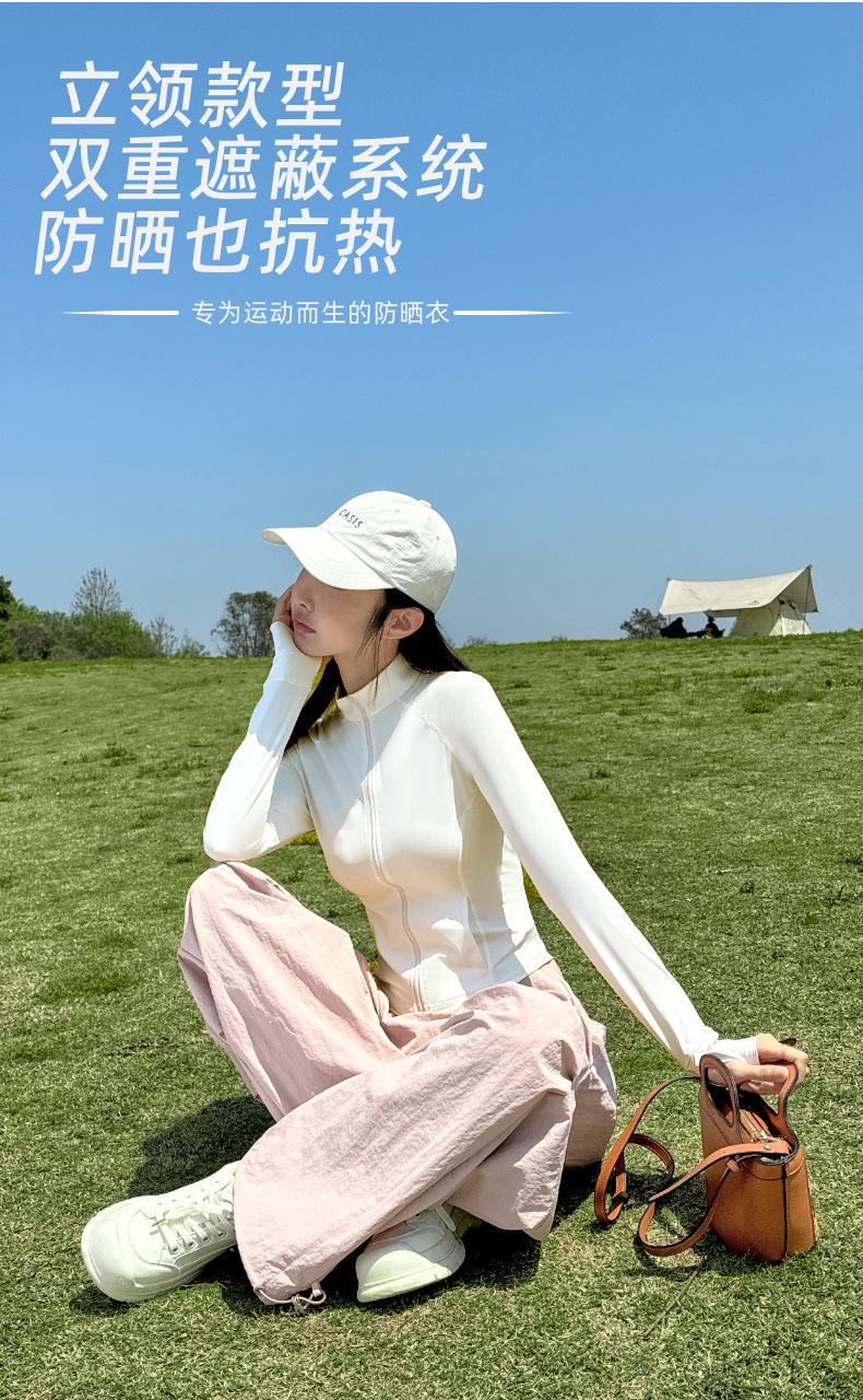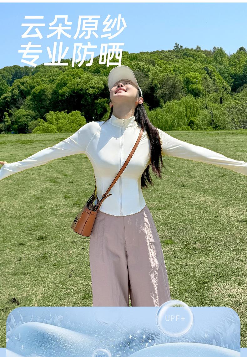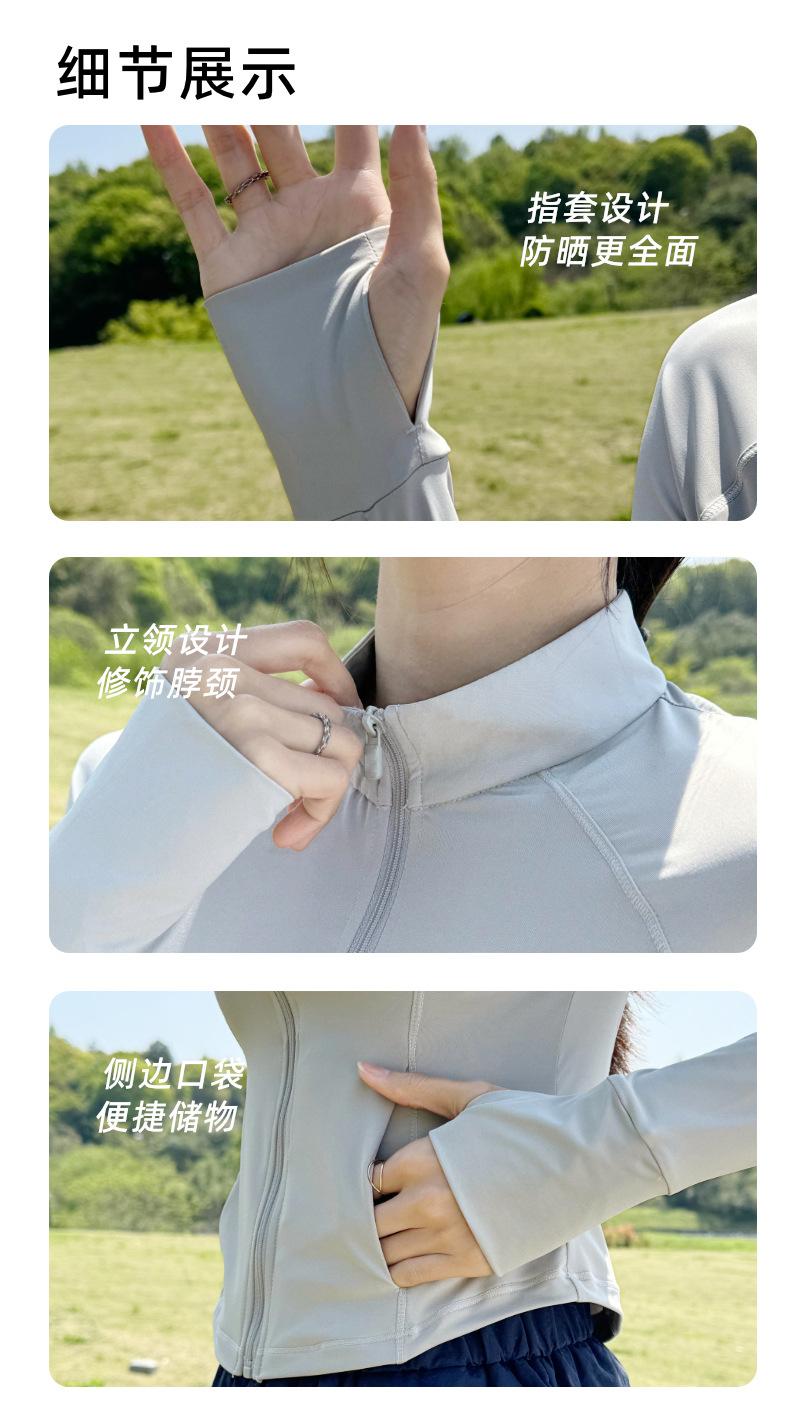 Chaqueta de yoga ajustada de nailon con hilo original, ligera, anti-UV, con protección solar, para mujer, de verano, con cuello vertical