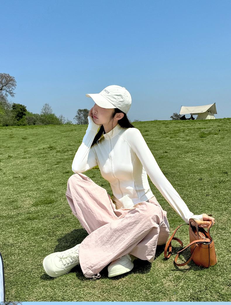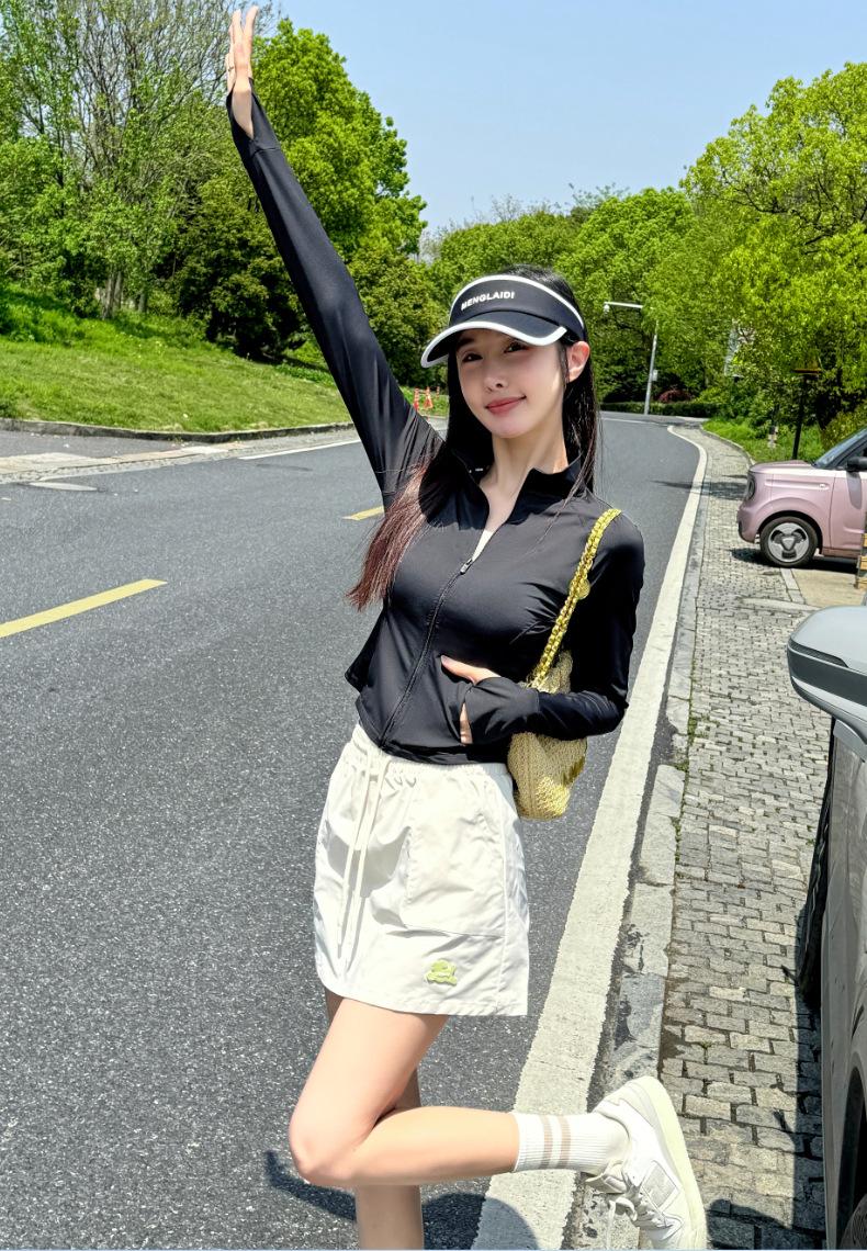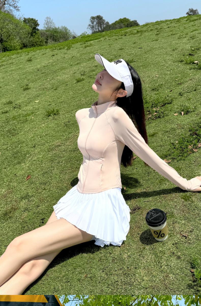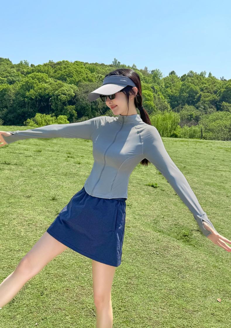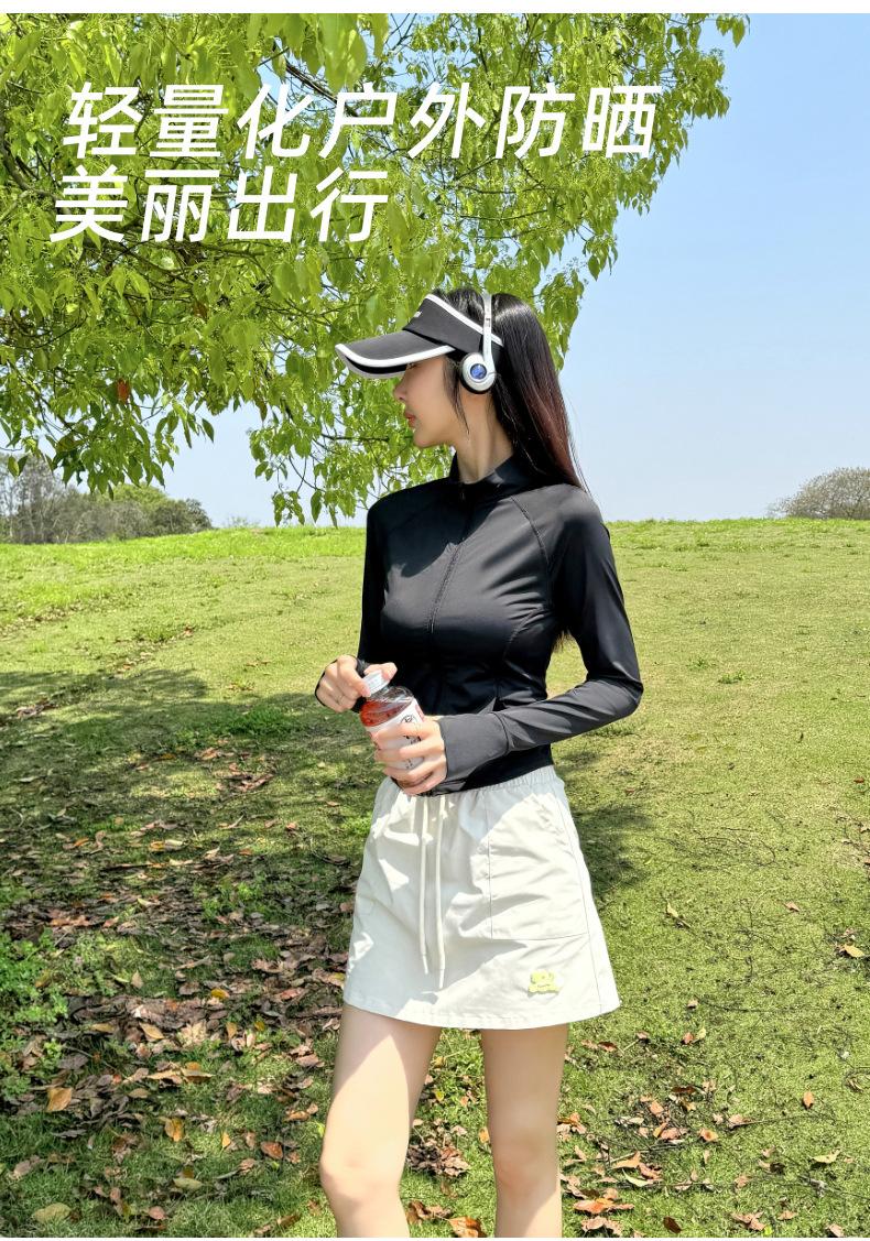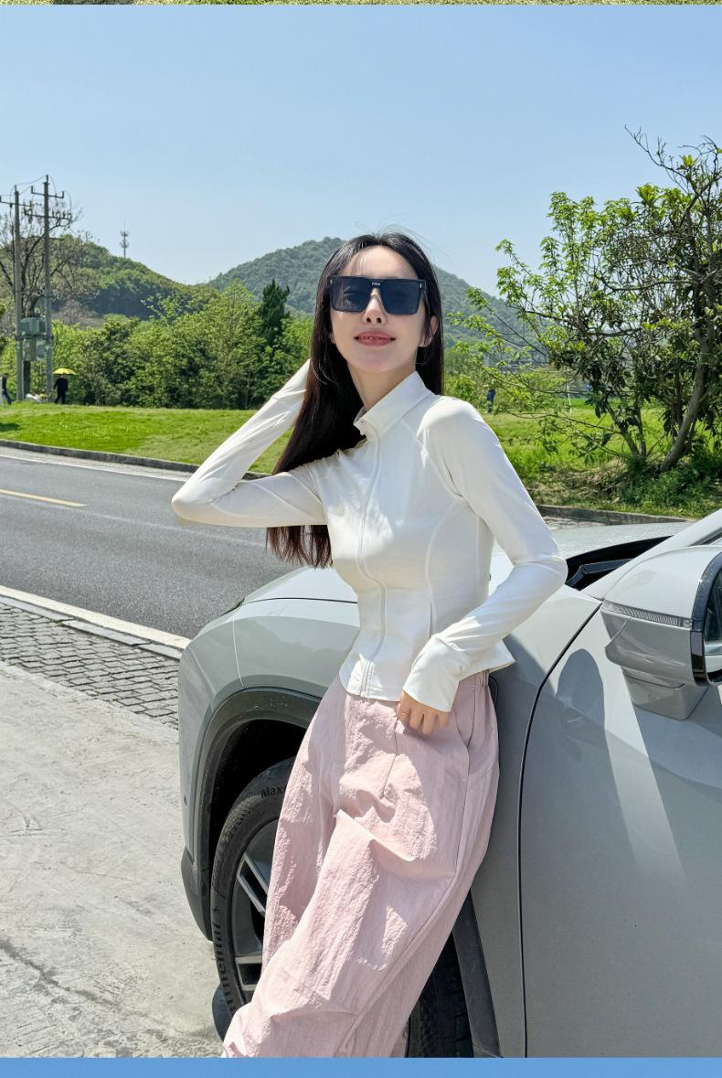 Chaqueta de yoga ajustada de nailon con hilo original, ligera, anti-UV, con protección solar, para mujer, de verano, con cuello vertical