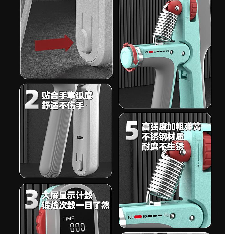 Contador electrónico recargable de 100 kg, ejercitador de fuerza de mano, ejercicio de fuerza muscular de brazo, ejercicio profesional para dedos.