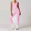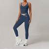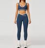 Traje deportivo de cintura alta con espalda descubierta y contraste de color para mujer, traje de yoga ajustado para correr y fitness 8843