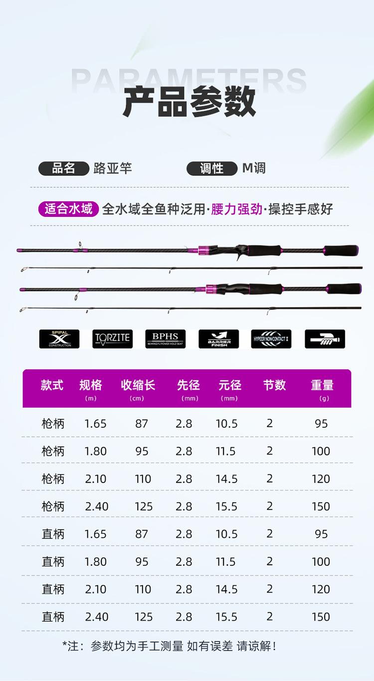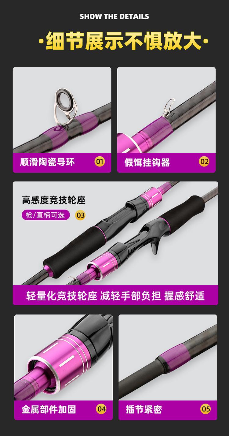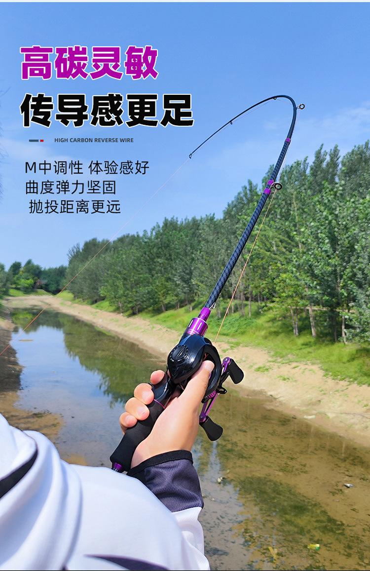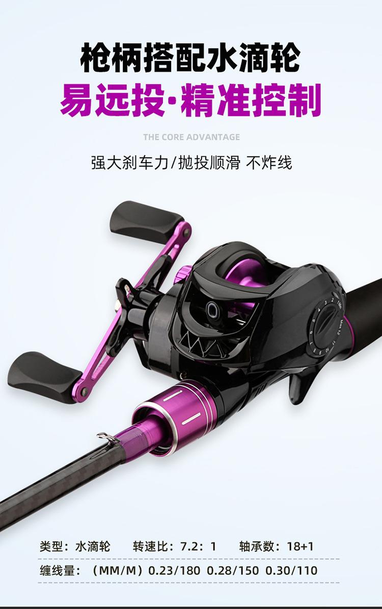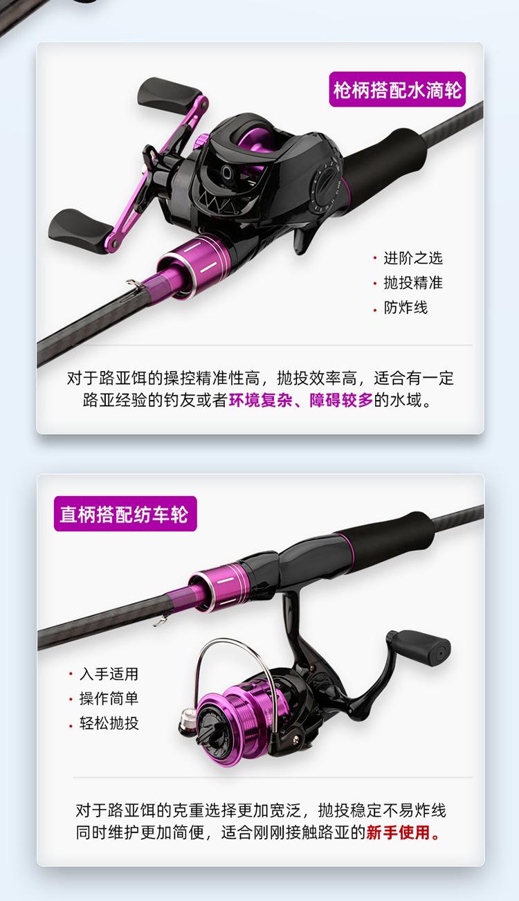 Caña de pescar Purple Luya, juego de ruedas con forma de gota de agua, productos genuinos, caña de carbono, caña para lanzamientos de larga distancia, caña negra con forma de boca de caballo, traje para principiantes