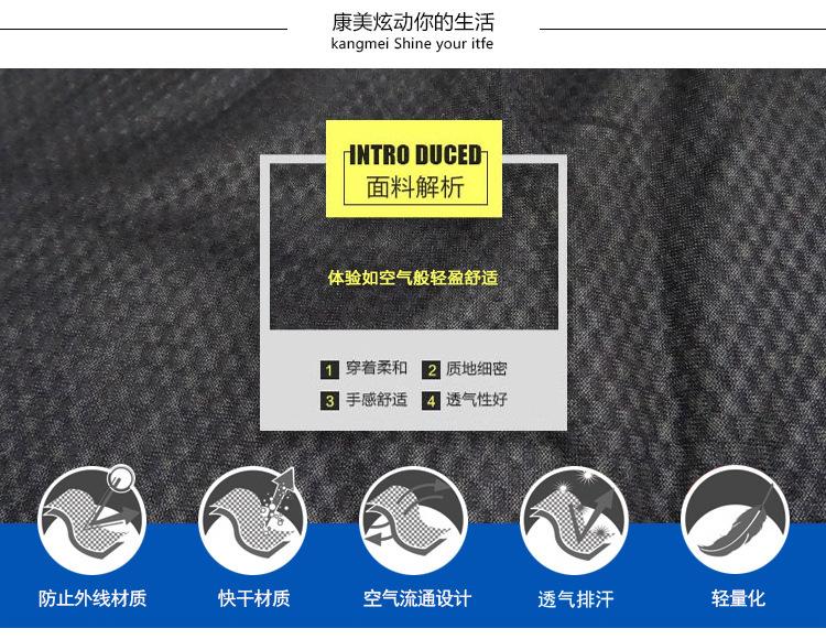 ¡Kangmei! ¡Todo es por tu salud y belleza! Nuestra filosofía profesional: ¡Entregando sueños, compartiendo felicidad! Nuestro principio de servicio: ¡Promocionar el deporte y disfrutar de una vida mejor! ¡Haz ejercicio durante una hora cada día, vive una vida saludable para siempre! ! Kangmei Ropa Deportiva es una empresa profesional de alta tecnología de I+D, producción y comercialización de ropa deportiva. Ha producido trajes de patinaje sobre ruedas, trajes de ciclismo, ropa interior deportiva, trajes de fútbol, trajes de baloncesto, triatlones, guantes, cubrepies, cubrezapatos, mangas, trajes de rugby, trajes de lucha nacional y otra ropa deportiva de moda para distribuidores de marcas globales. ¡El rendimiento del producto es respetuoso con el medio ambiente, el diseño es novedoso y la calidad es excelente! ¡La forma de la tabla es ajustada y hermosa! ¡Adecuado para necesidades de entretenimiento y competición! ¡Bienvenido a patrocinar! Podemos diseñar y confeccionar según los requisitos individuales del cliente. Y proporcionamos soluciones de personalización de múltiples niveles. Ya seas un principiante o un veterano, profesional o casual, tenemos una solución personalizada para ti.